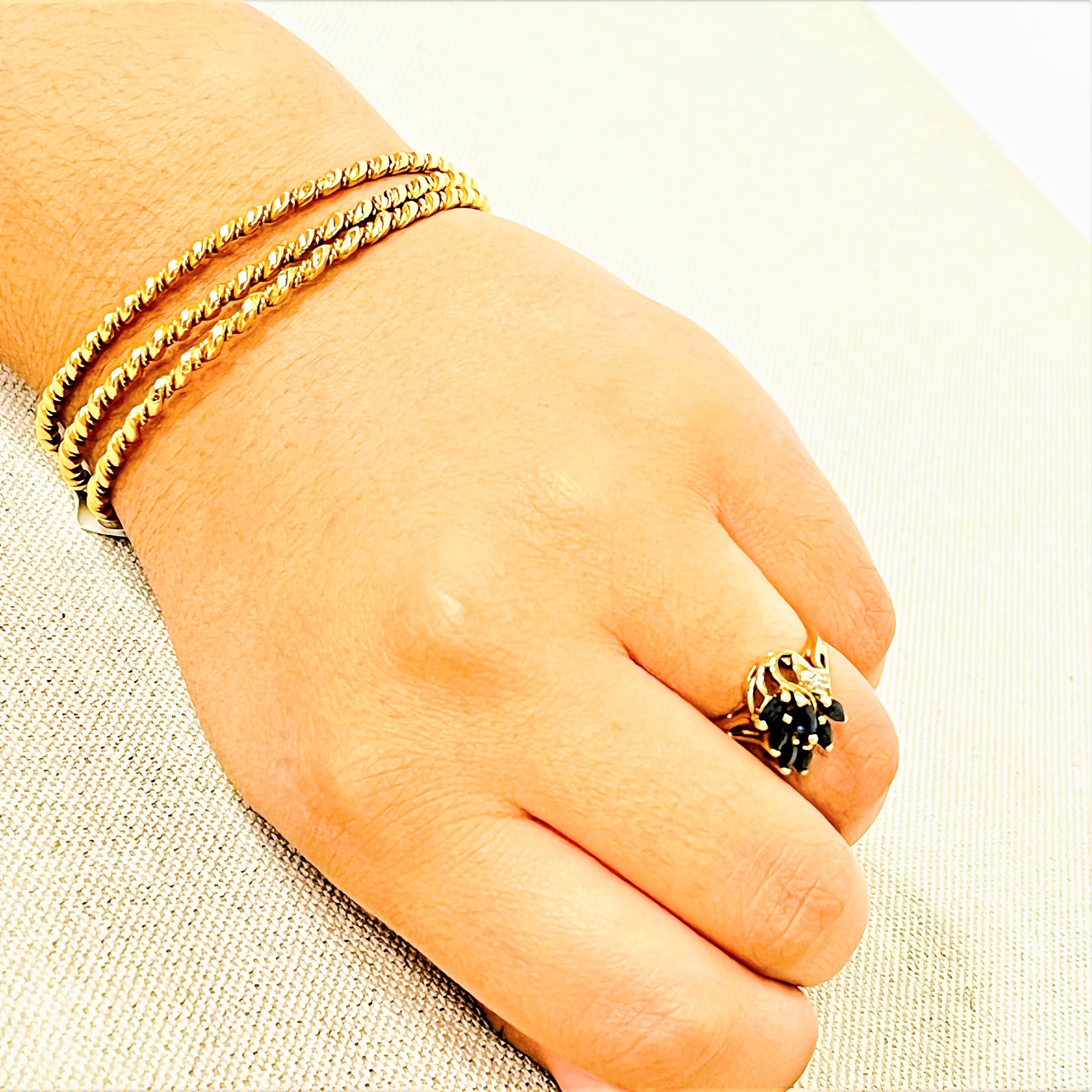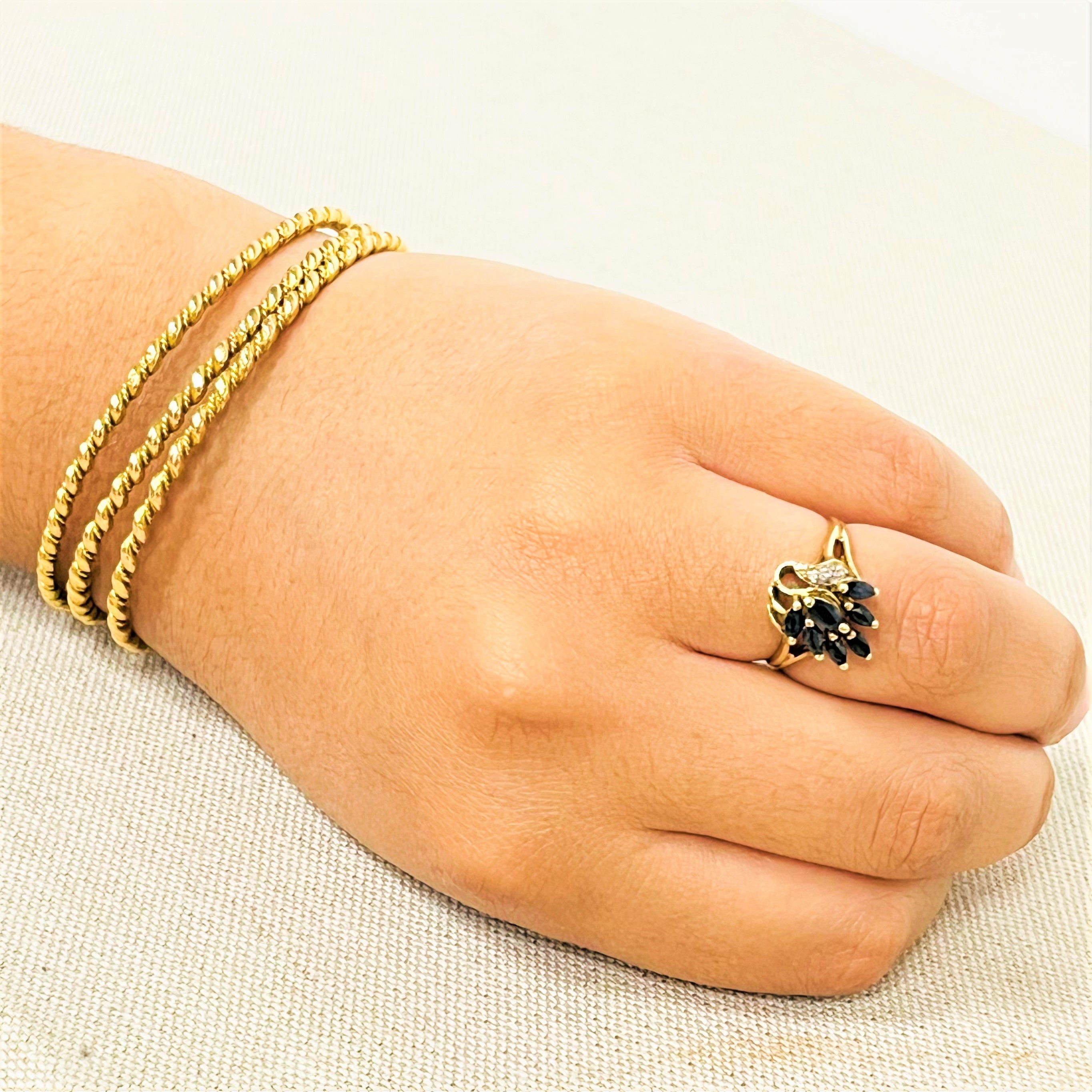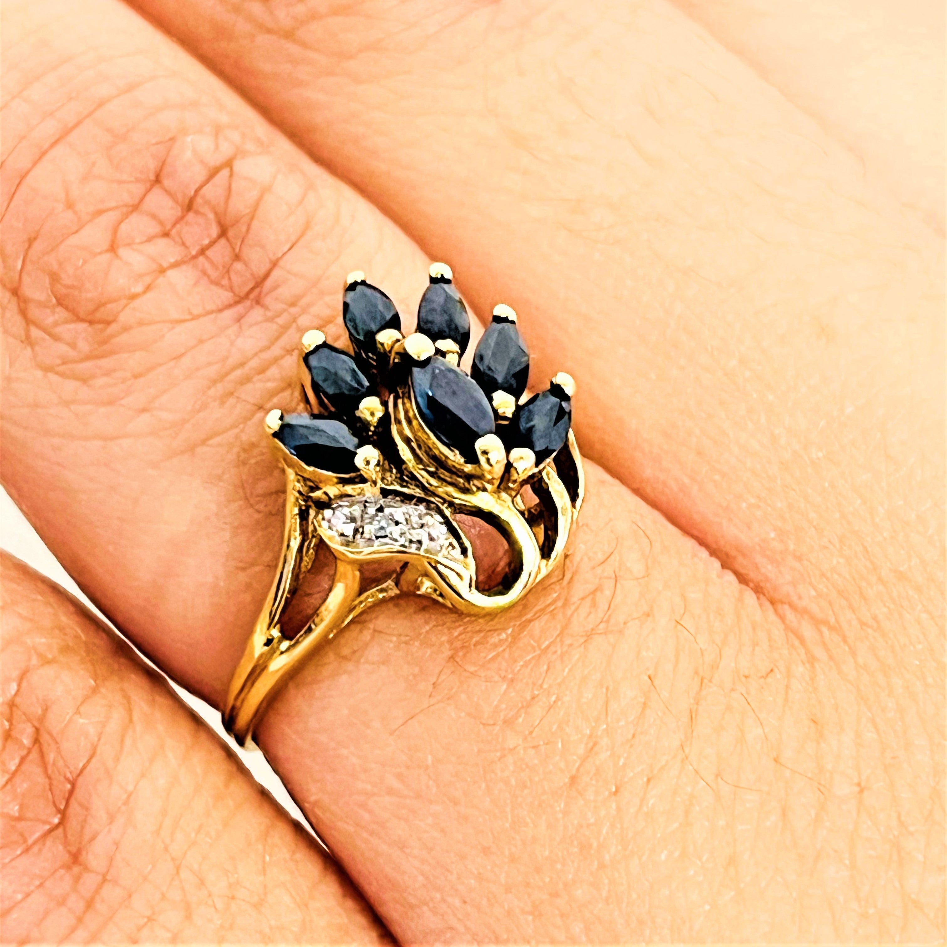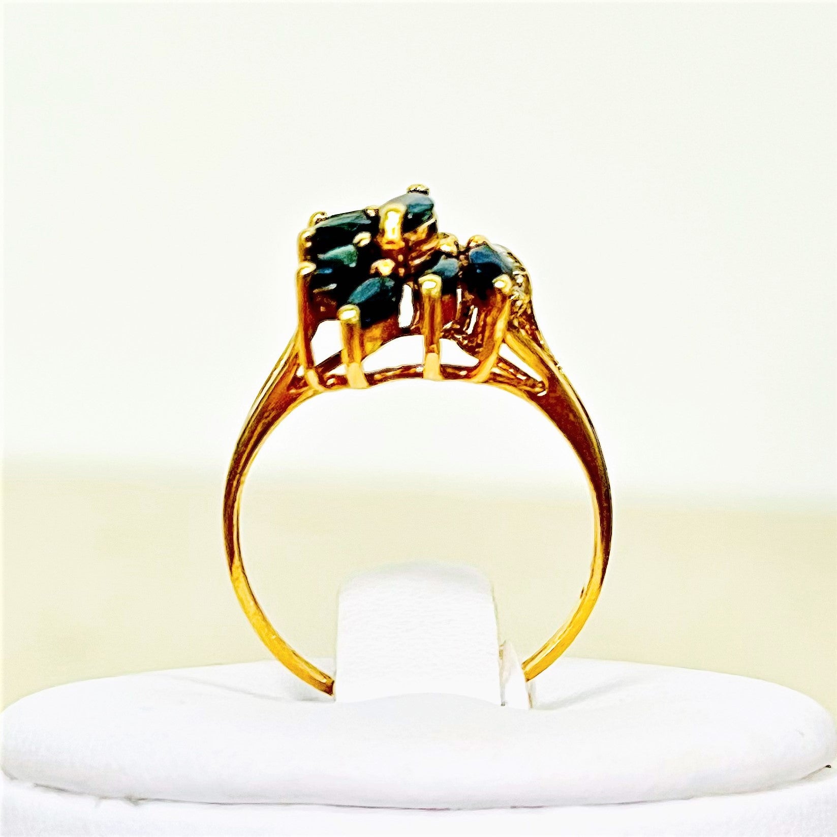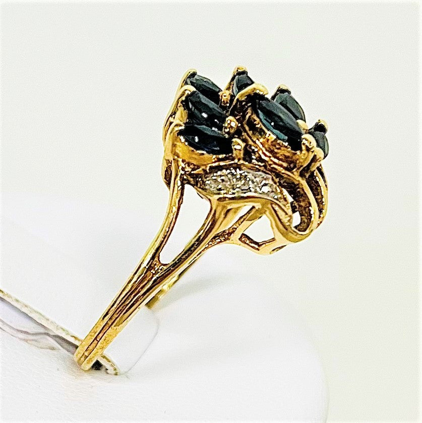 7 saphirs navette de taille 4mm x 3mm chacun et 3diamants brillant de 0,01 crt chacun