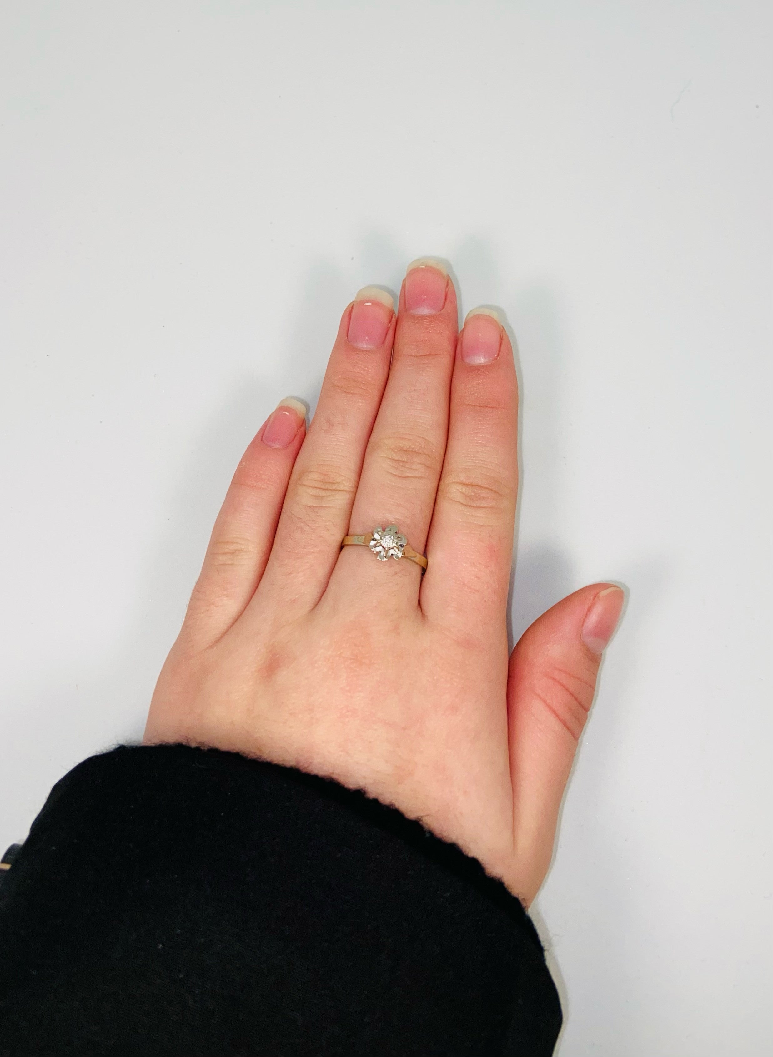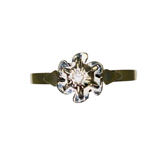 Ravissante bague en or blanc 18 carats (750/1000) en forme de fleur sertie de 6 tiges accompagnée d'un petit oxyde de zirconium.