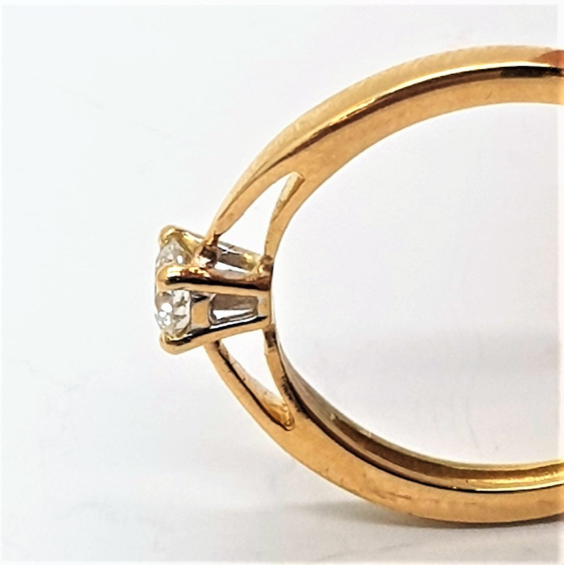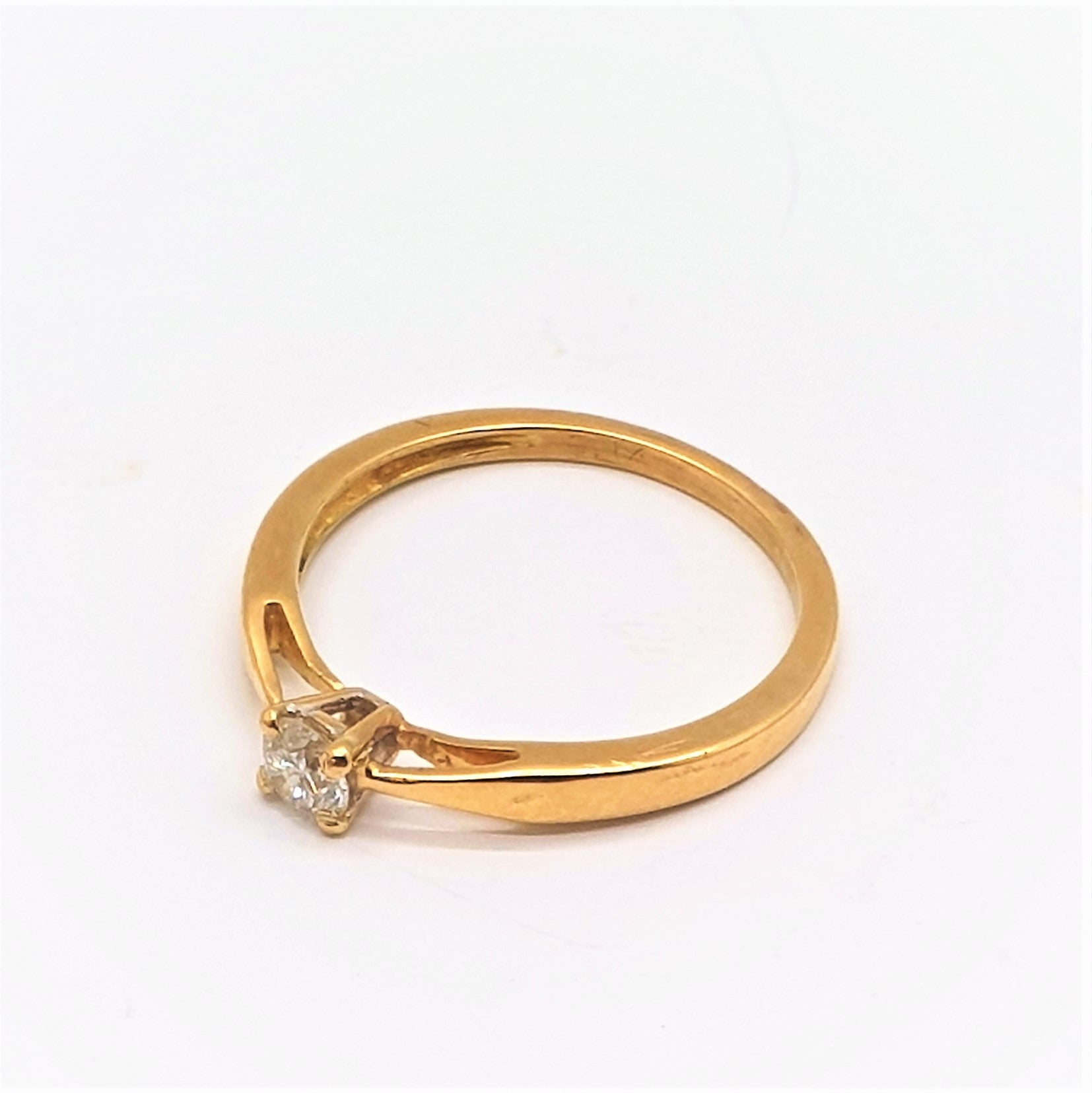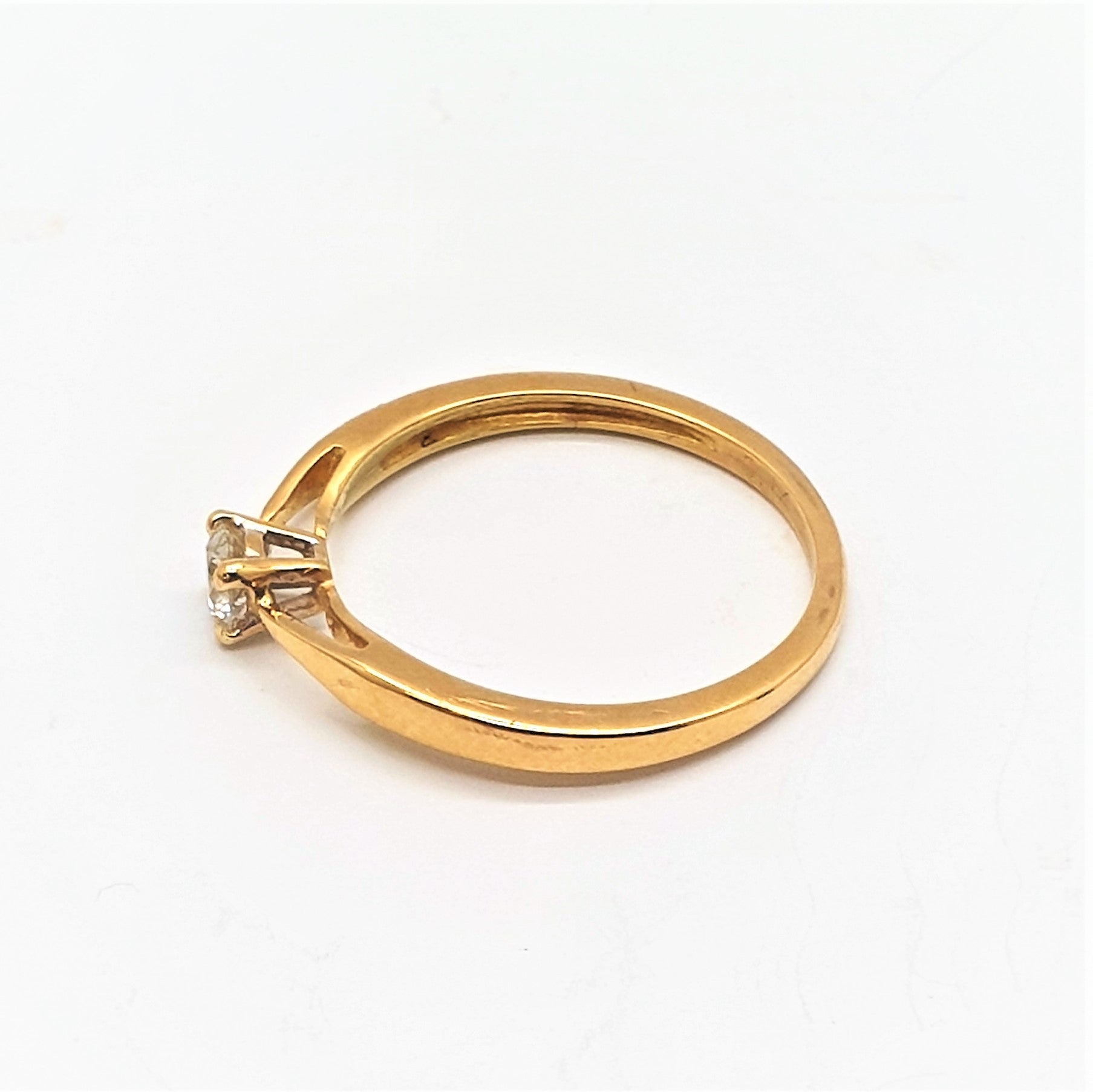 Etat : Bon Etat Très belle bague solitaire en or jaune 18 carats ornée de son scintillant diamant de 0.10 carats