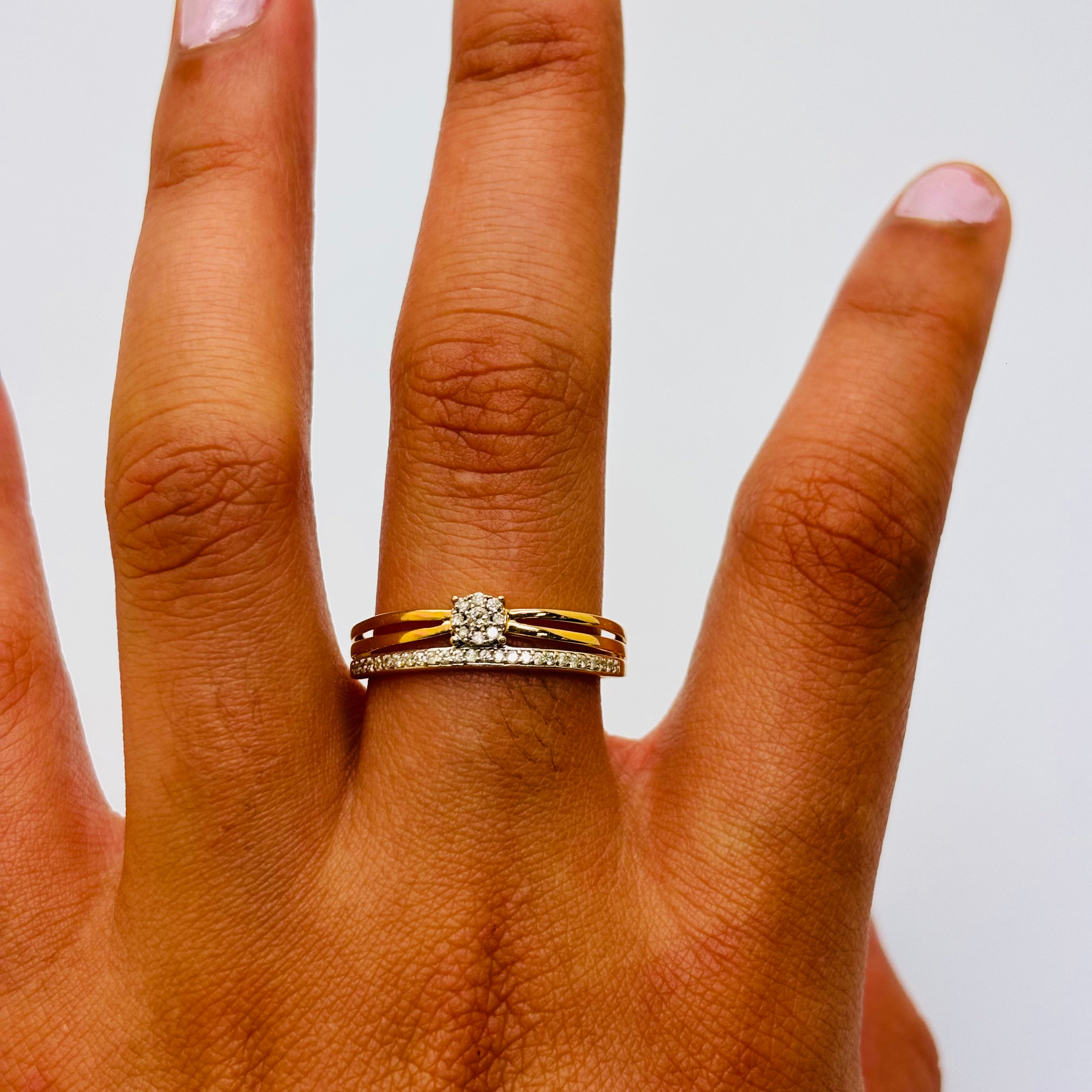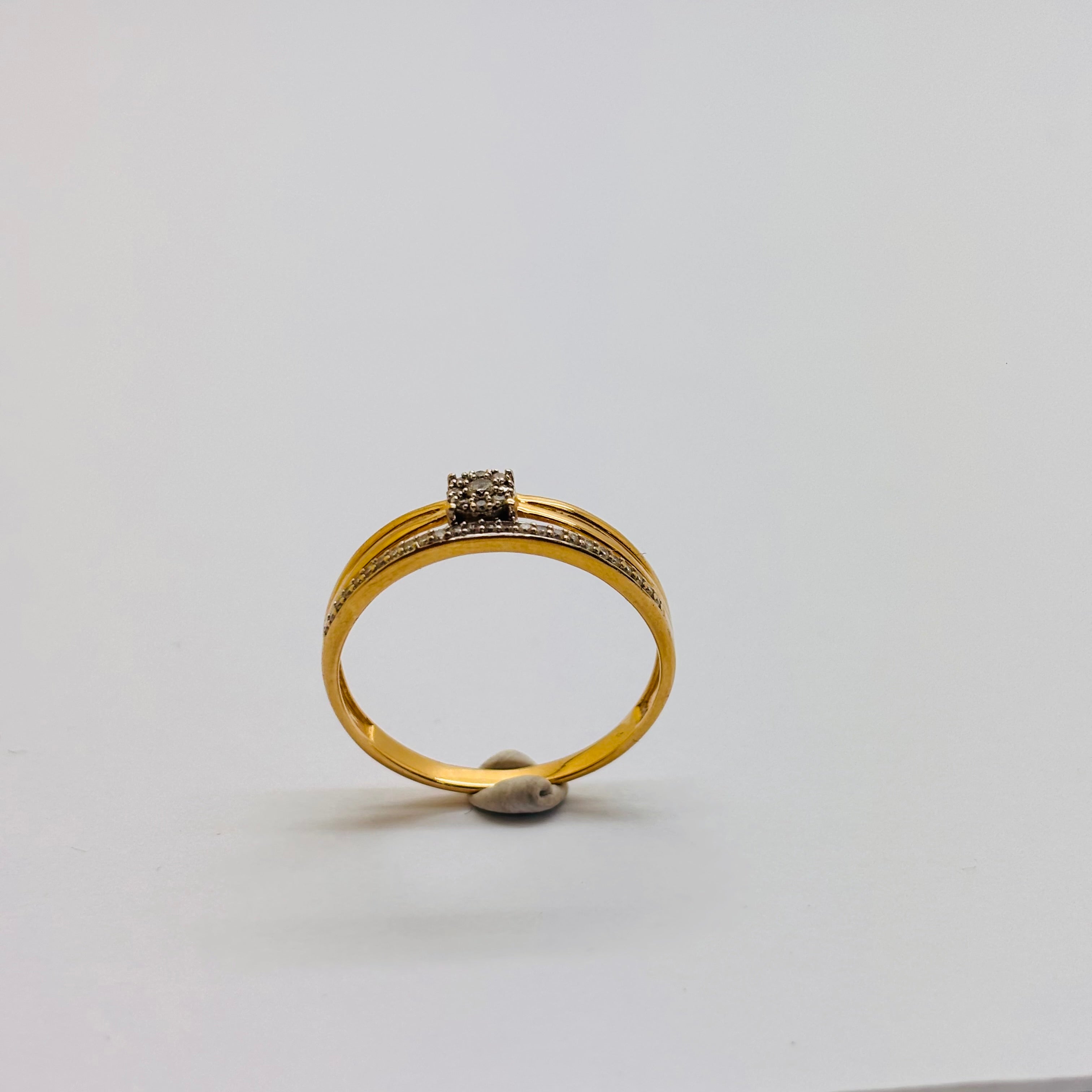 Bague solitaire en or jaune 18 carats, pavée de 35 petits diamants scintillants.