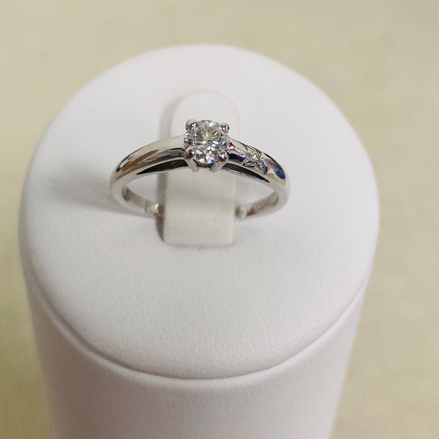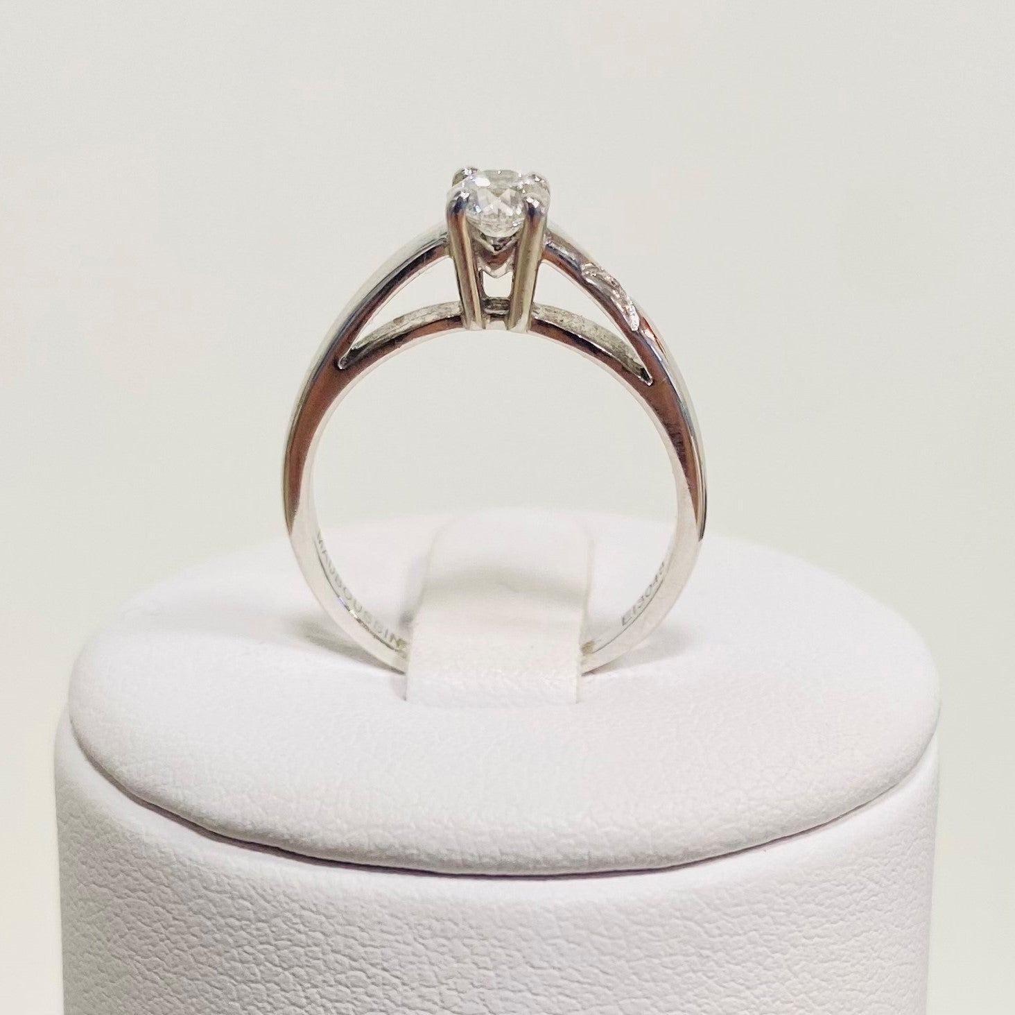 Bague solitaire signée Mauboussin sertie de 1 diamant de 0.22 crt .