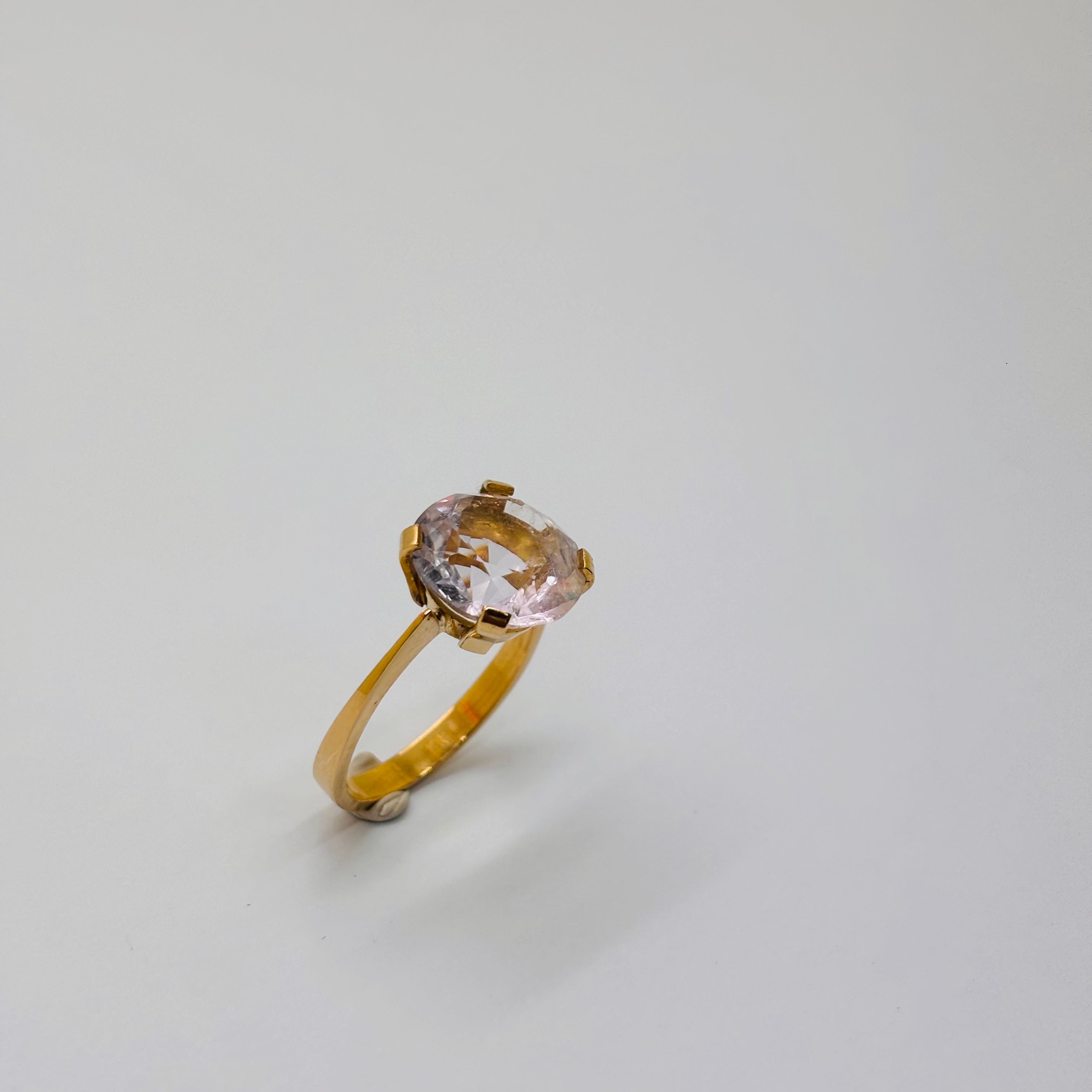 Bague solitaire en or jaune 18 carats, sertie d’une topaze brillante.