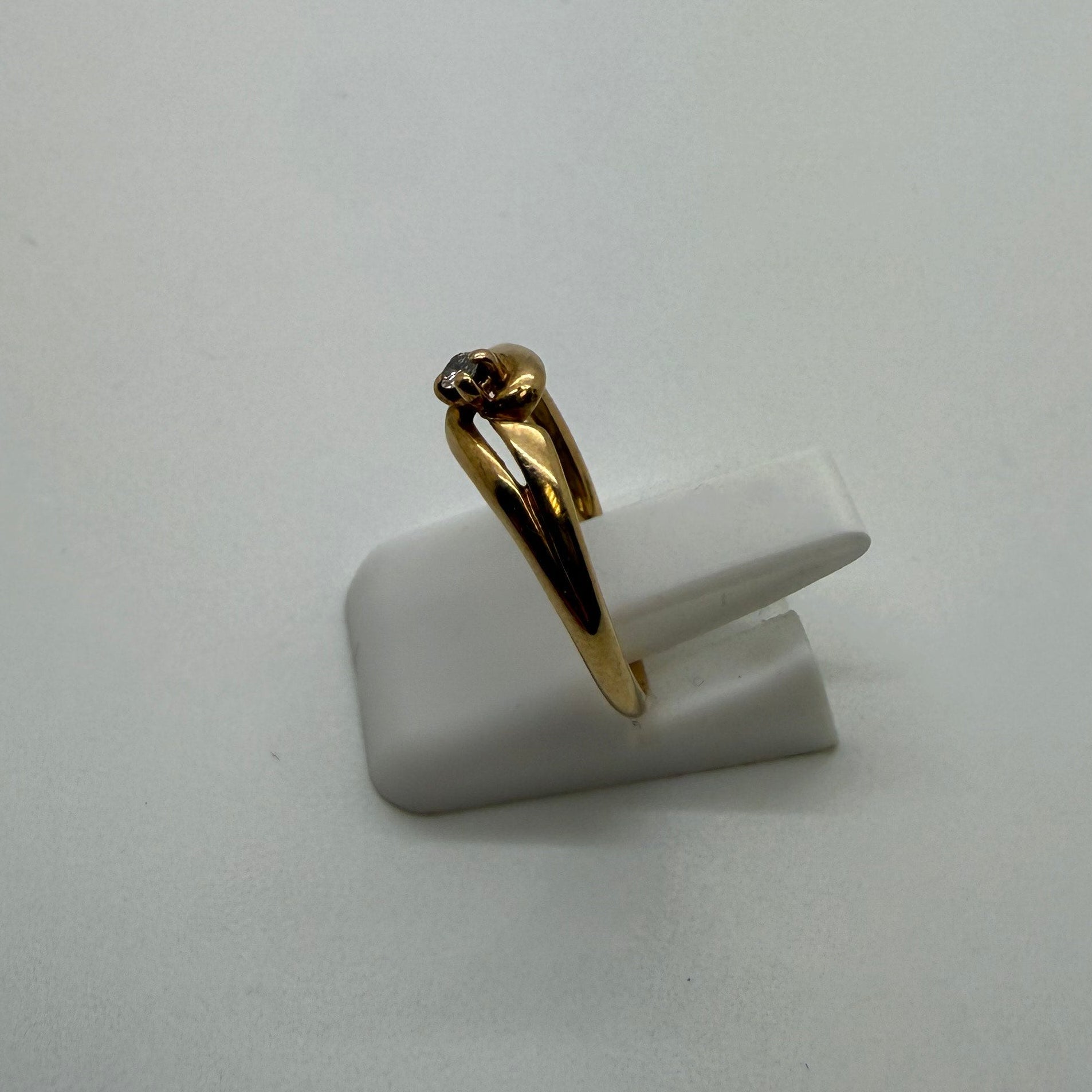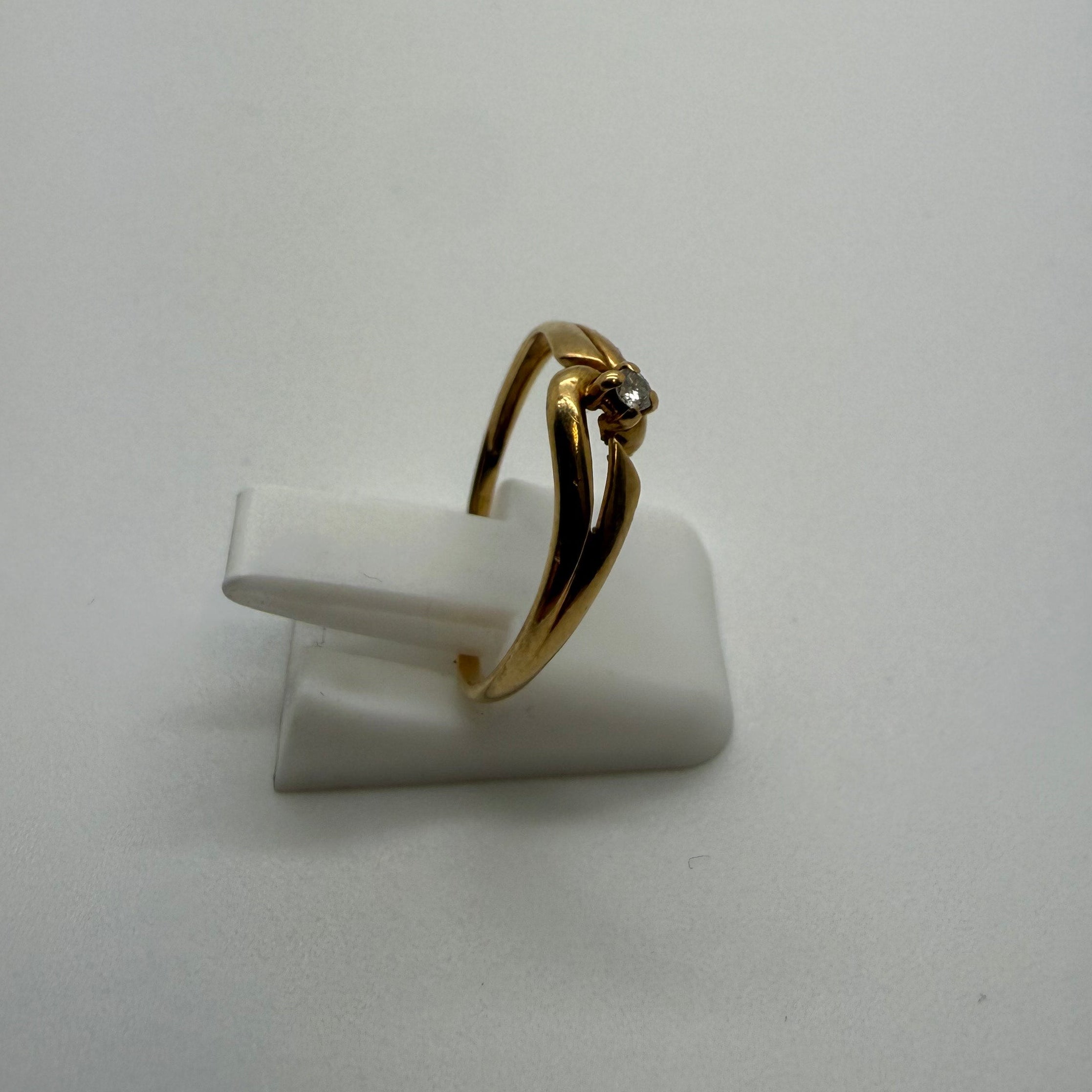 Bague solitaire en or jaune 750 (18 carats), taille 52, sertie d’une petite topaze. Poids : 1,04 g. Modèle fin, élégant, en très bon état.