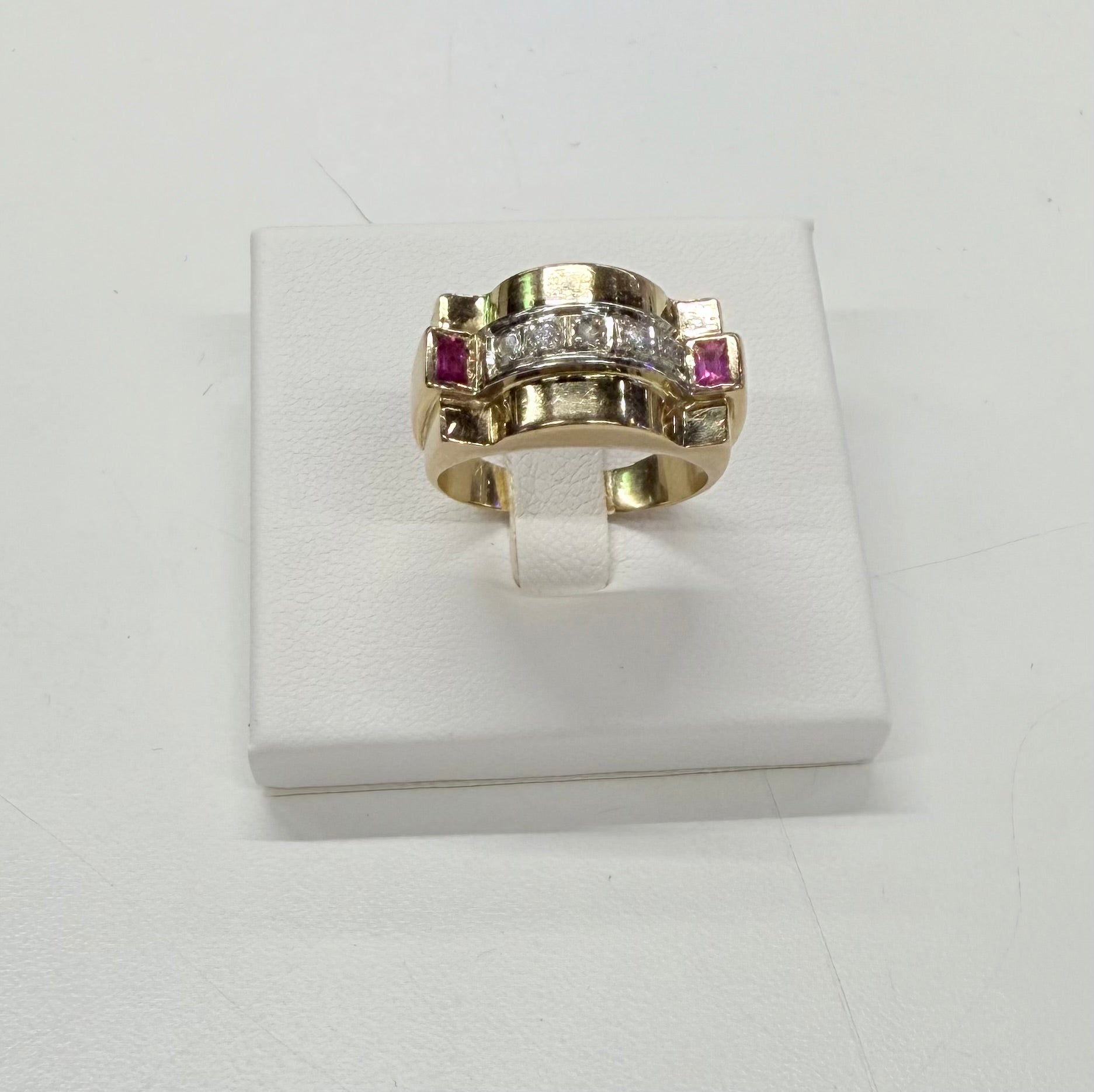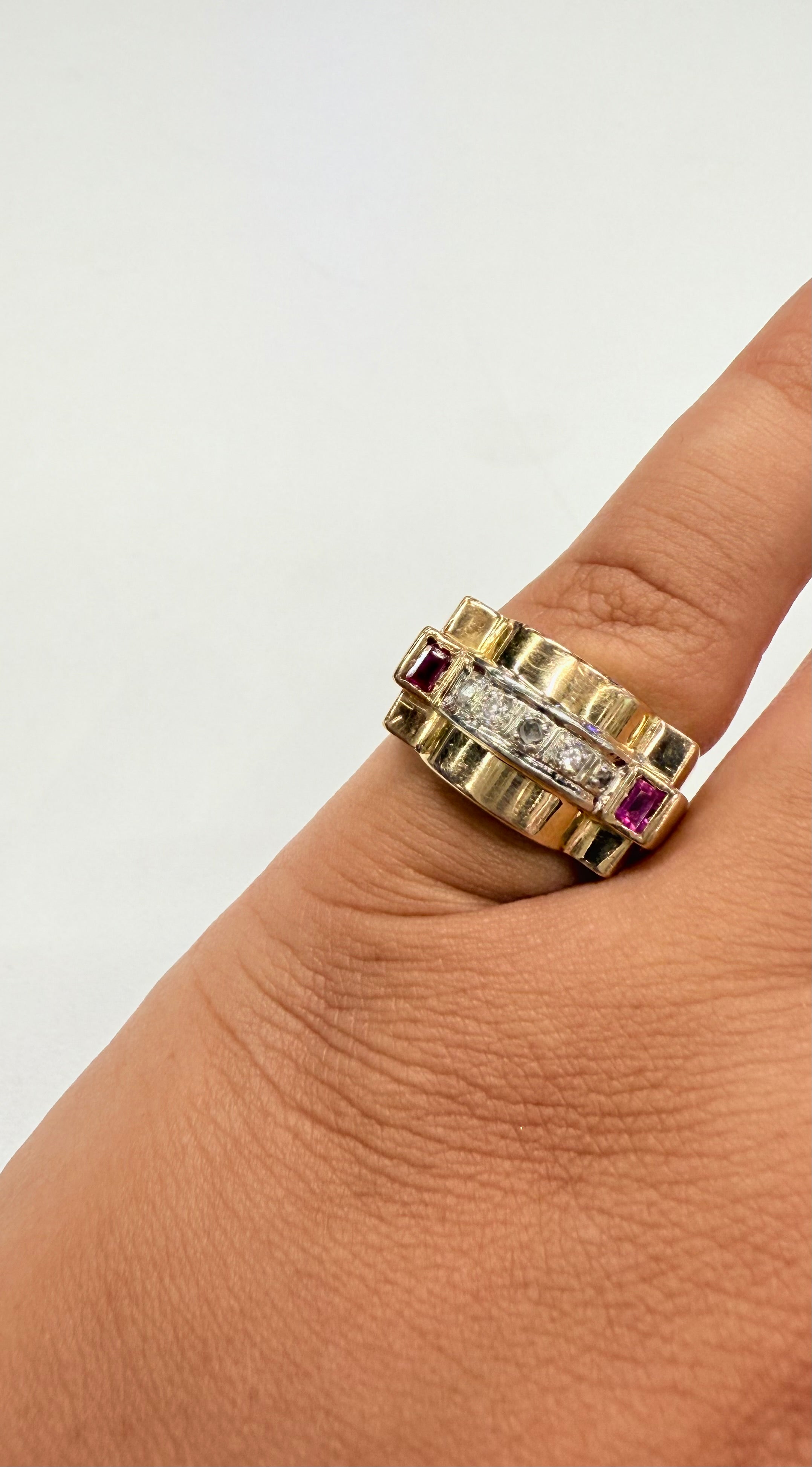 Bague Tank Or Jaune et Blanc Diamants et Rubis