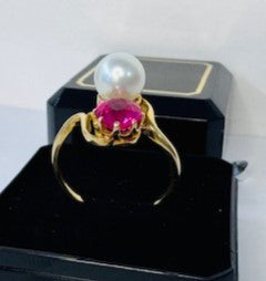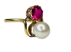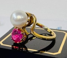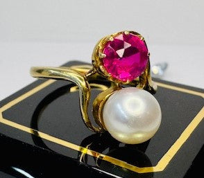 Bague Toi et Moi avec Perle et Tourmaline en or jaune 750/1000