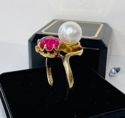 Bague Toi et Moi avec Perle et Tourmaline