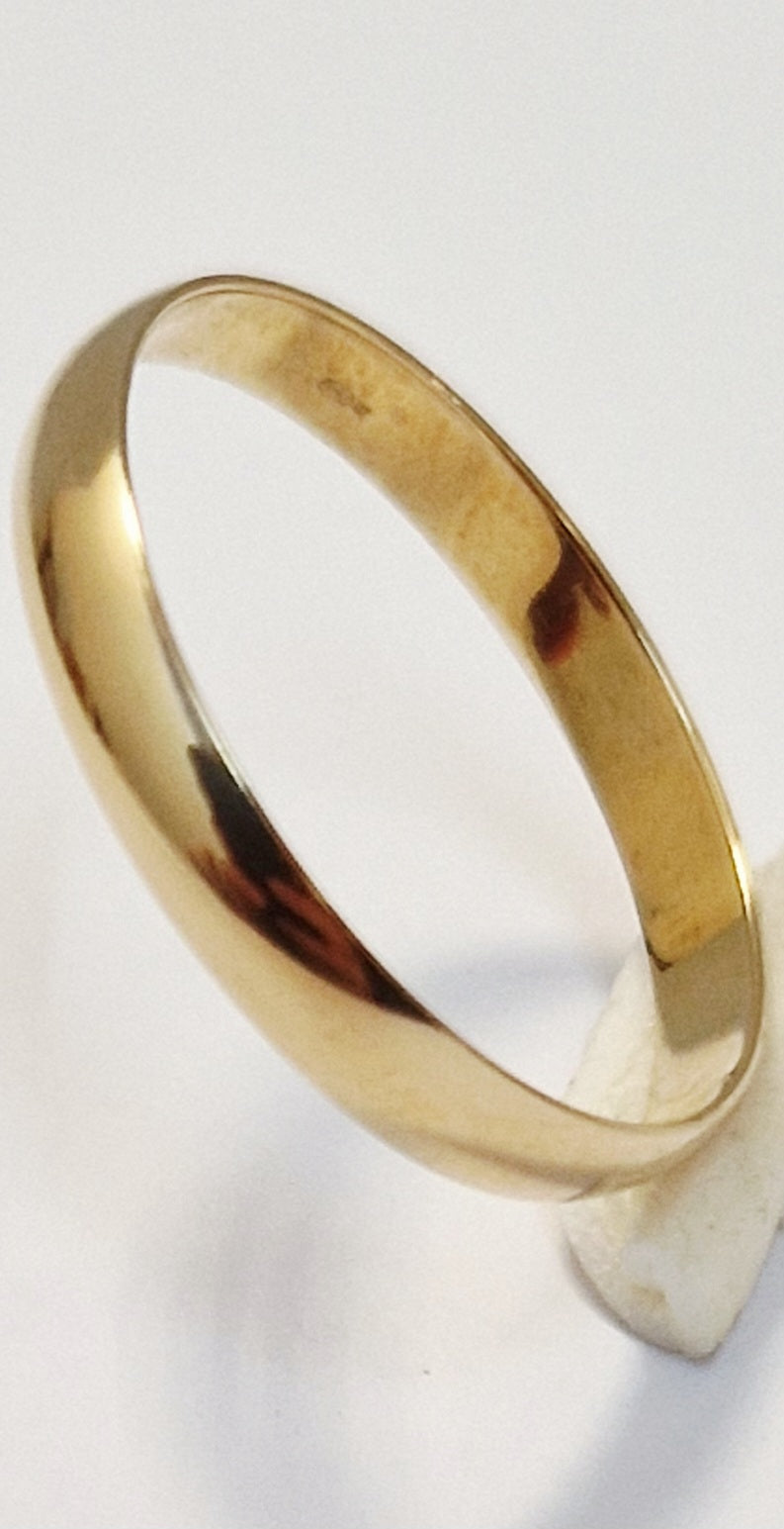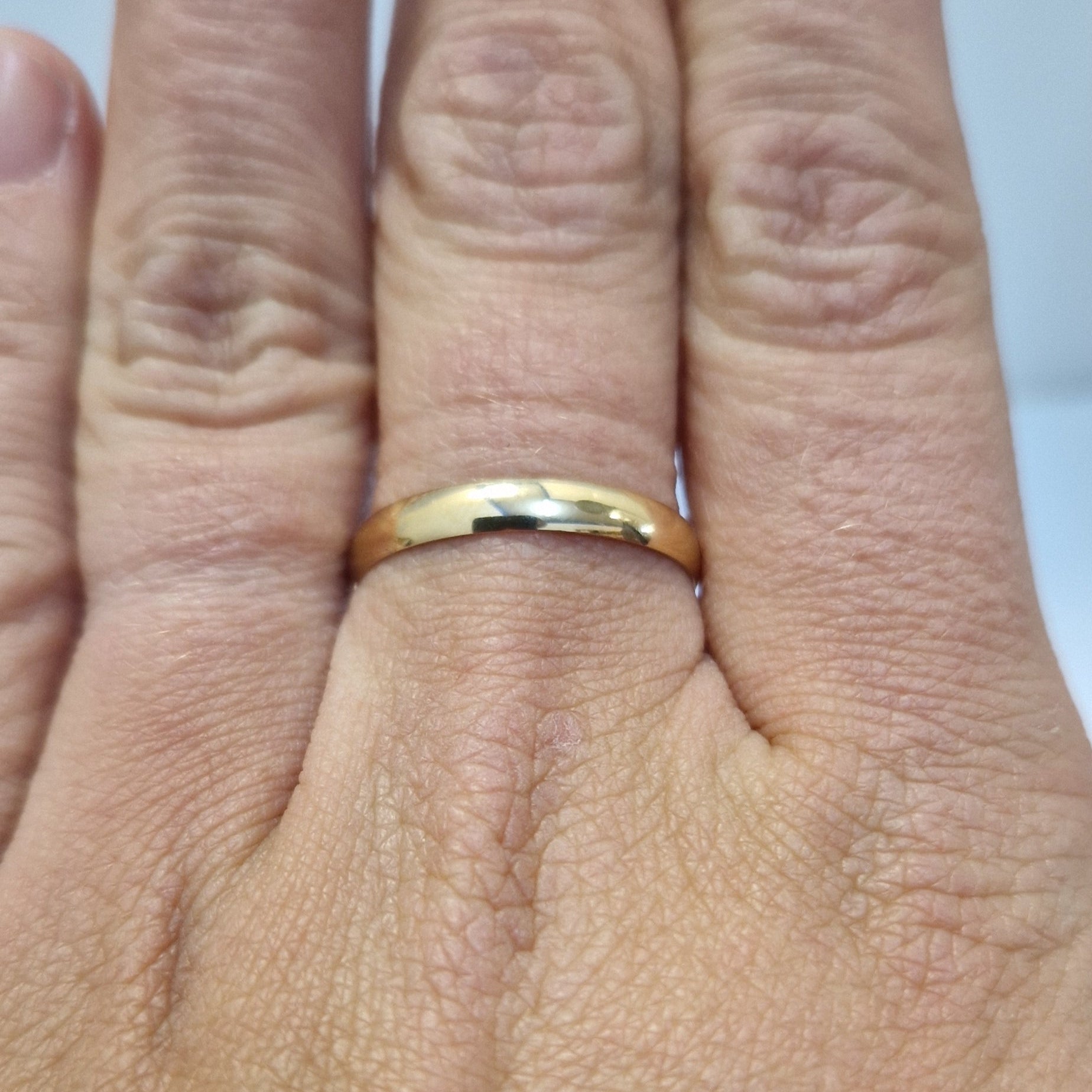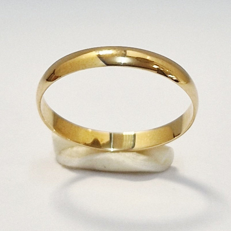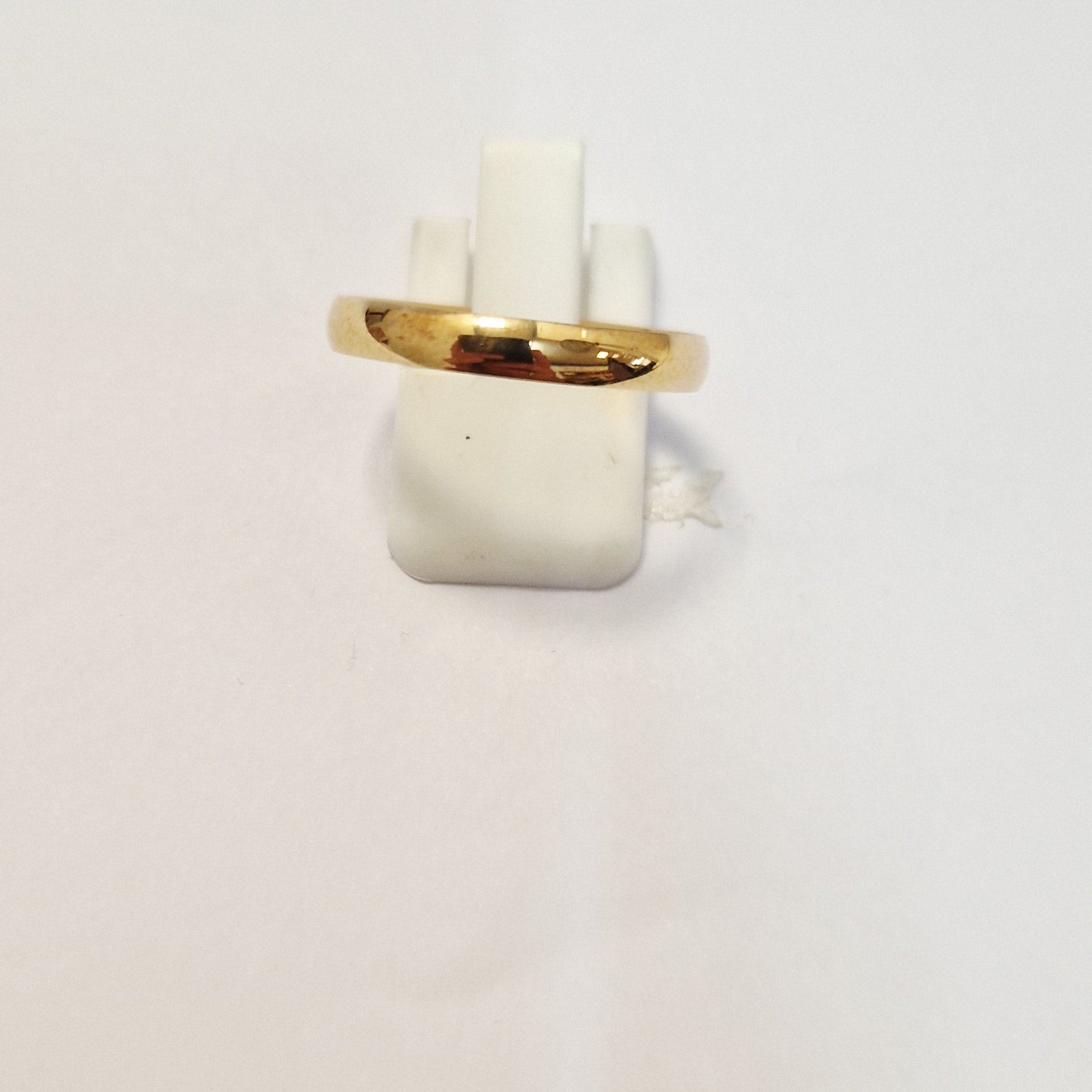 Alliance classique en or jaune 750/1000 (18 carats), au design épuré et sans pierre. Un modèle intemporel, symbole d’engagement et de sobriété, idéal pour un mariage ou comme bijou de tous les jours.