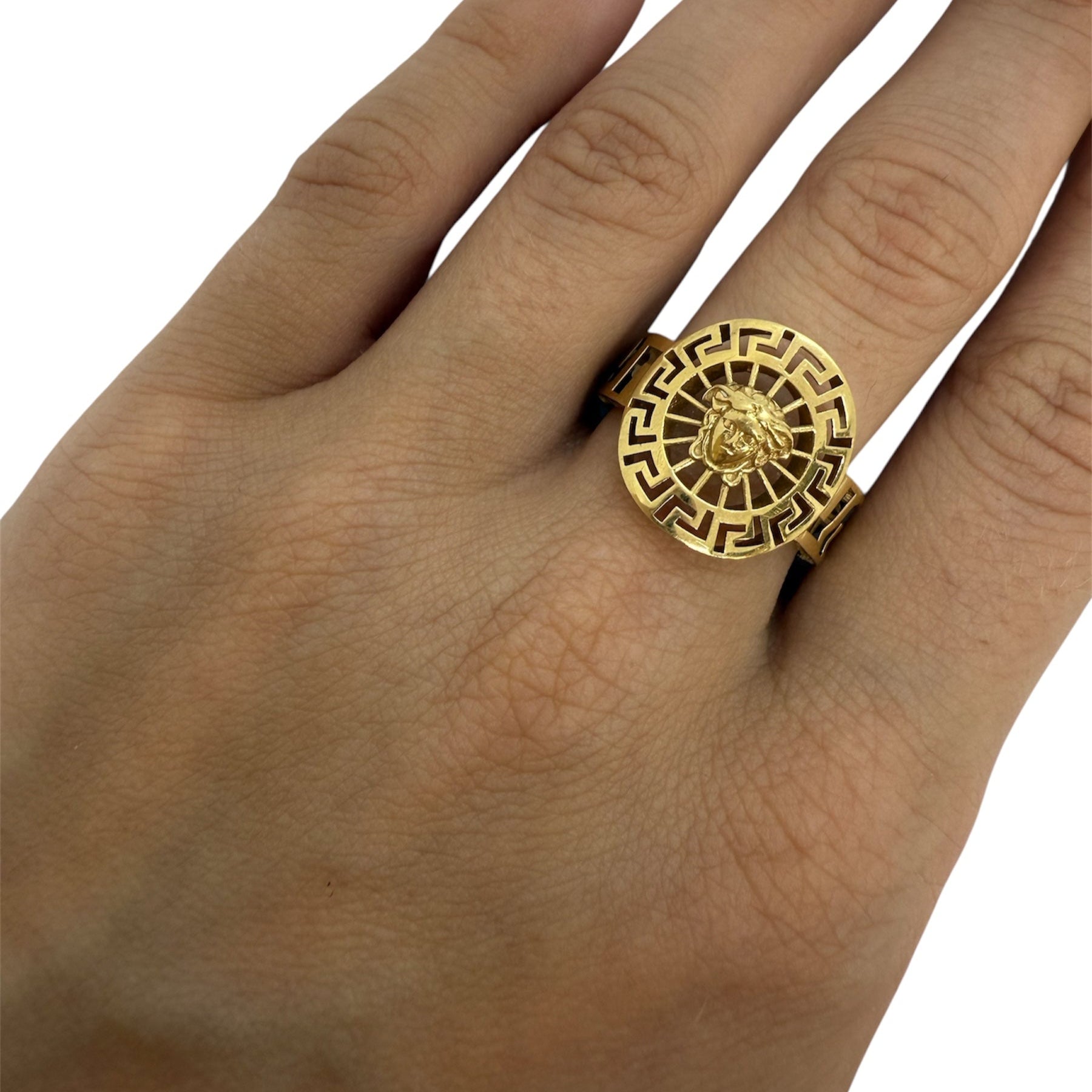 Bague ancienne en or jaune 18 carats (750/1000), sans poinçon, d’un poids de 4,62 grammes et en taille 57. Sans pierres, elle séduit par son style intemporel et son élégance sobre. Le bijou est en très bon état.