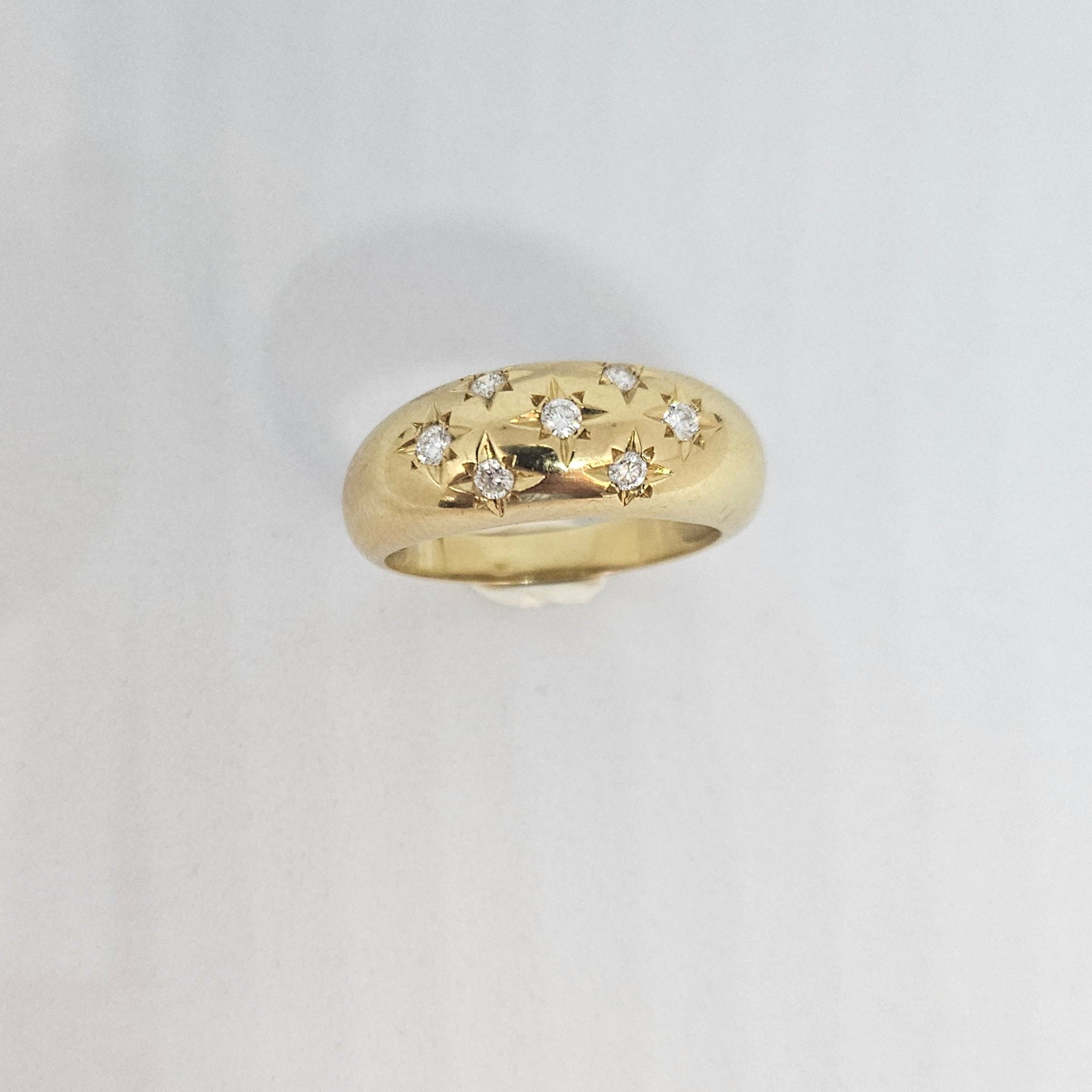 Bague ornementée de 7 diamants, chacun de 0,07 carats, pour un éclat raffiné.