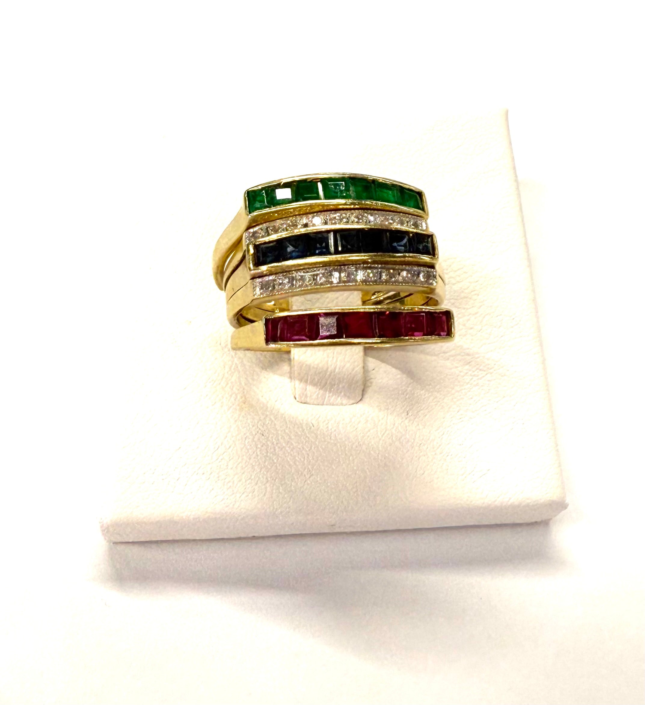 Bagues interchangeables diamants, émeraude, saphir, rubis en Or 18K