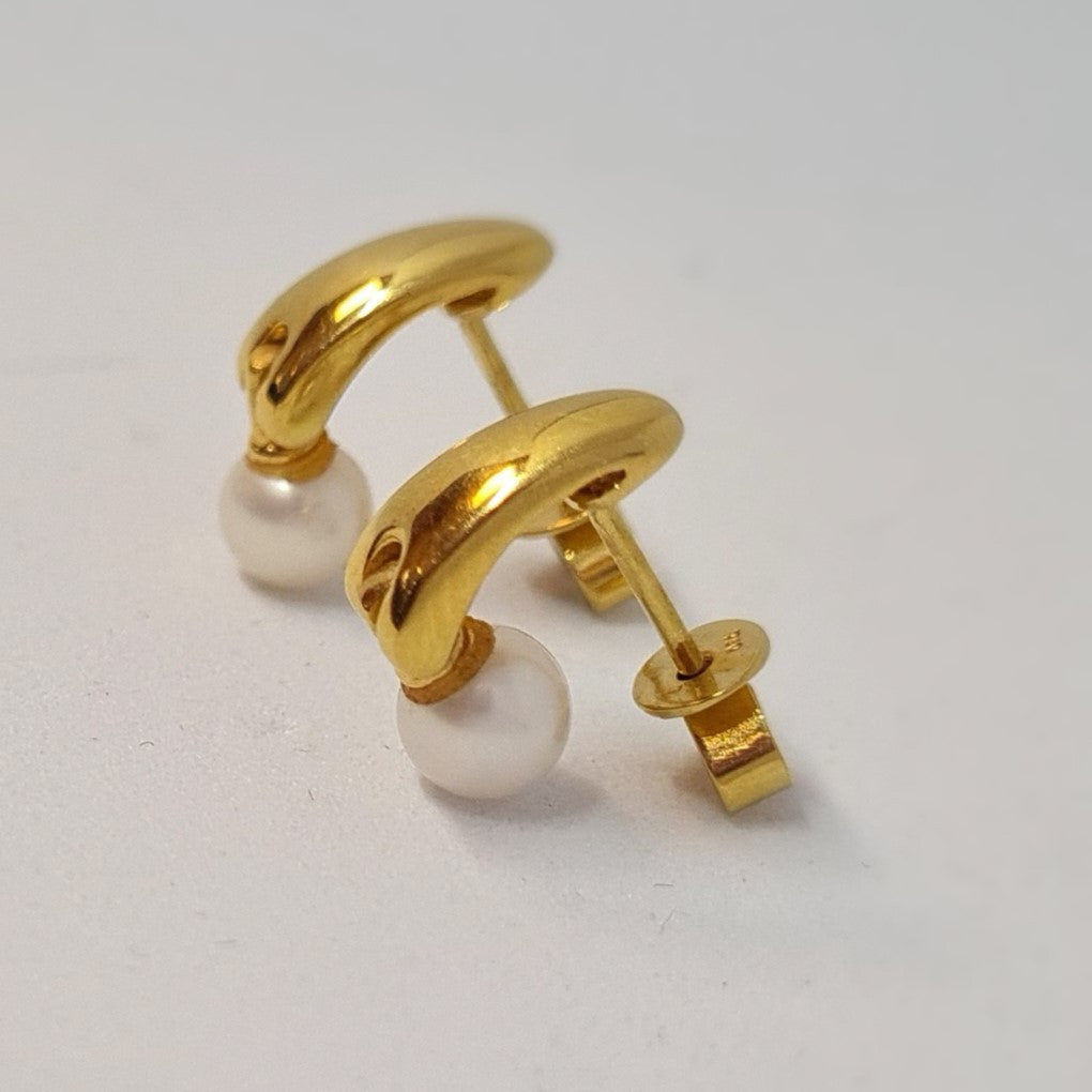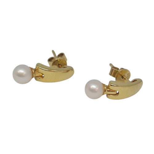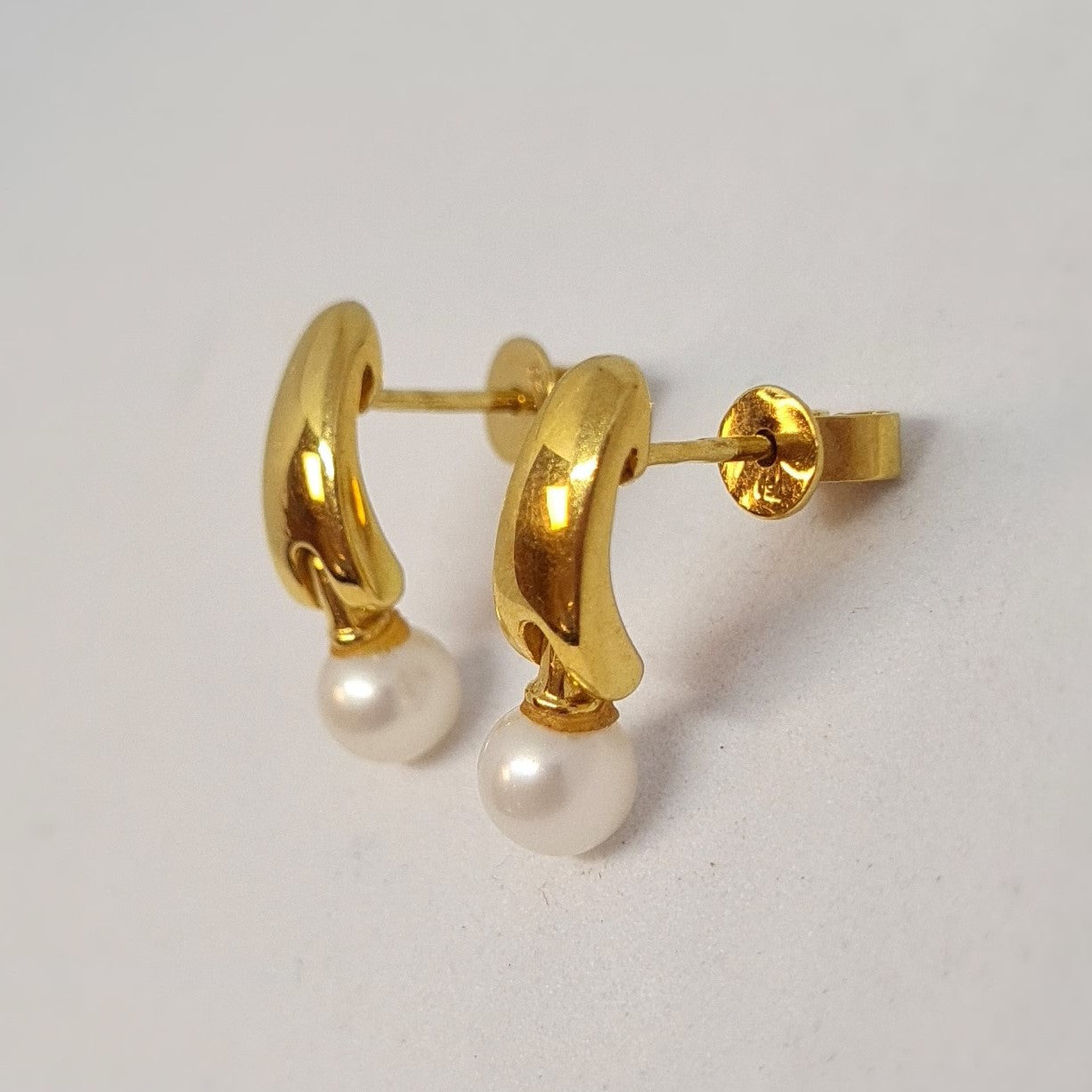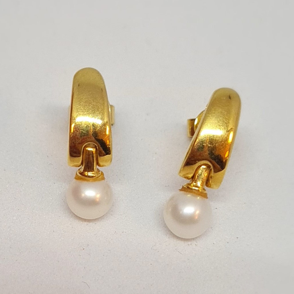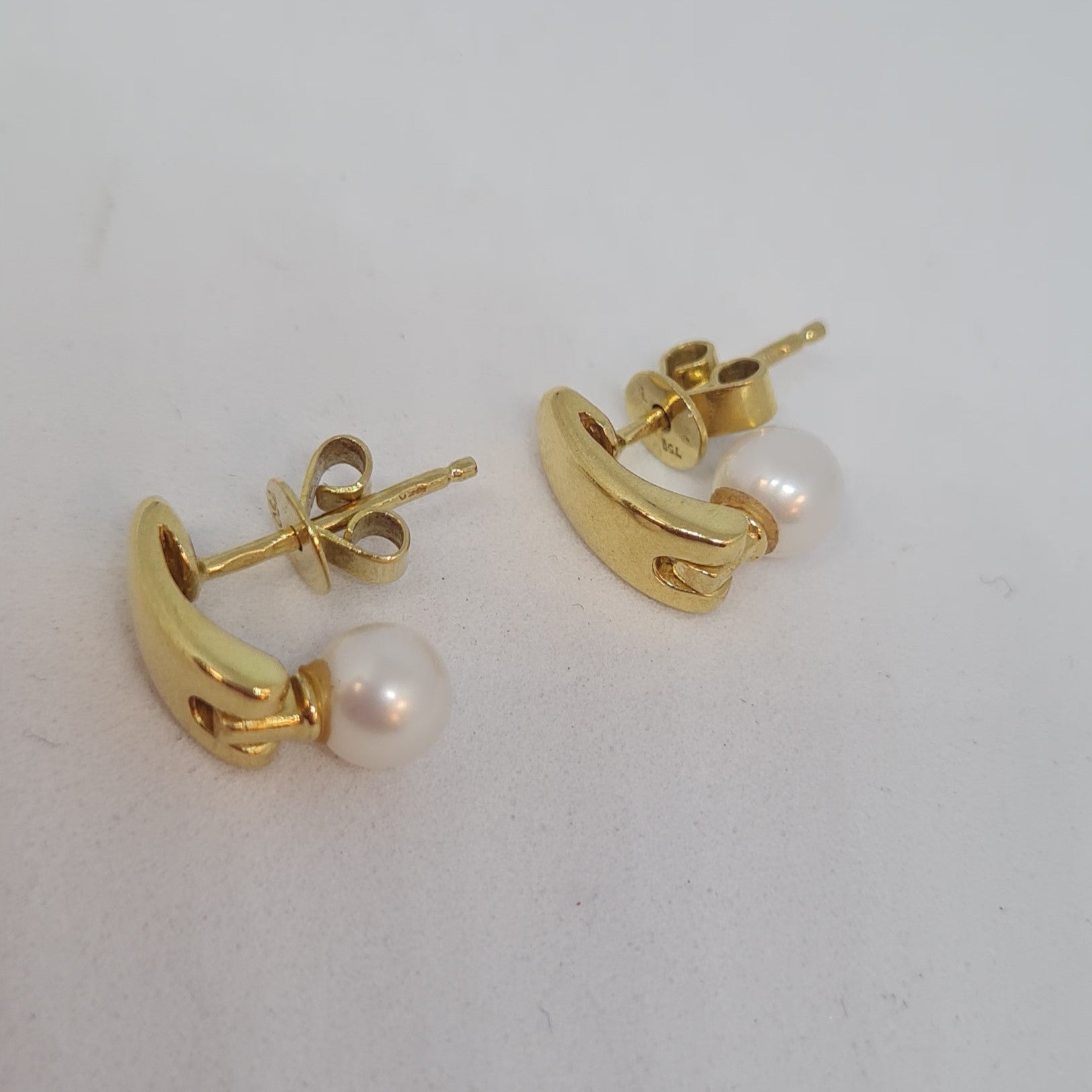 Très jolie paire de boucles d'oreilles en jaune 18 k et perles de culture pouvant s'incliner