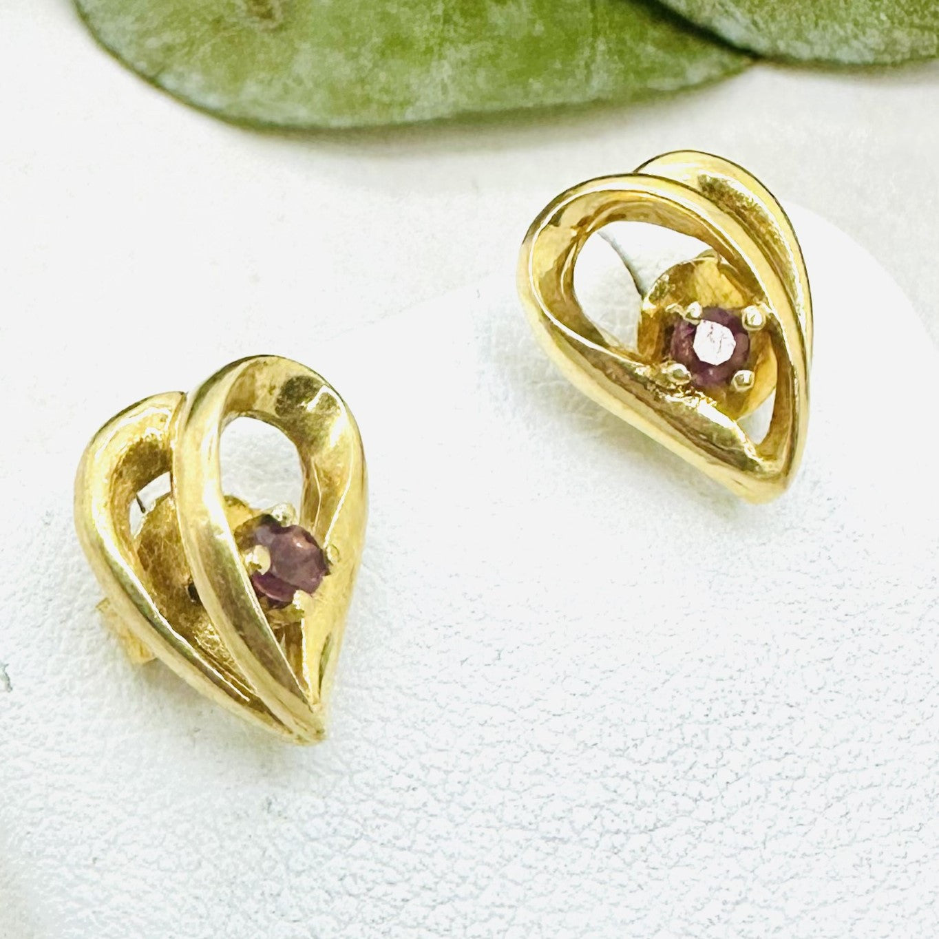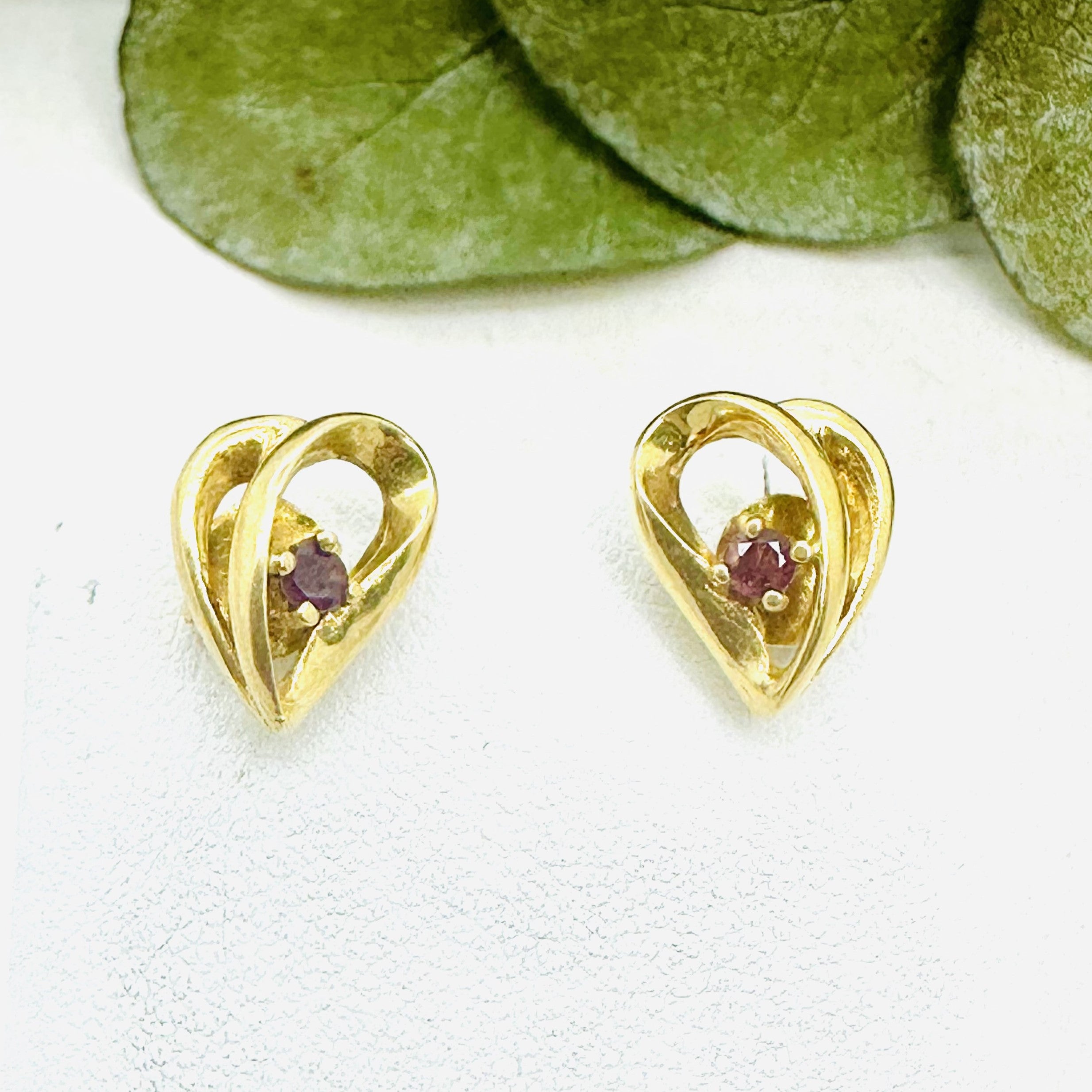 Boucles d’oreilles clou Cœur avec une pierre rose