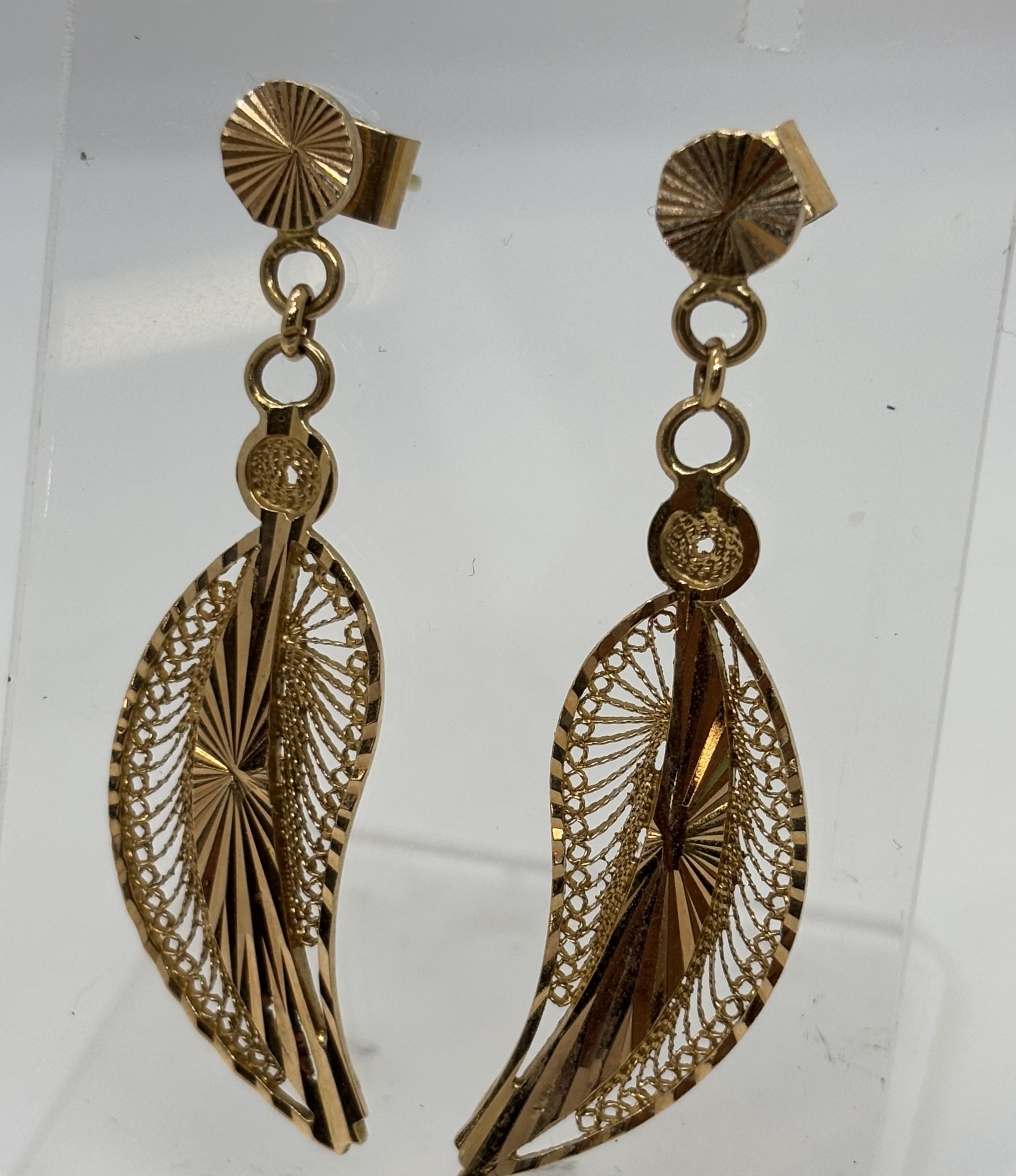 Etat : Bon Etat Sublime boucle d'oreille pendante forme de feuille