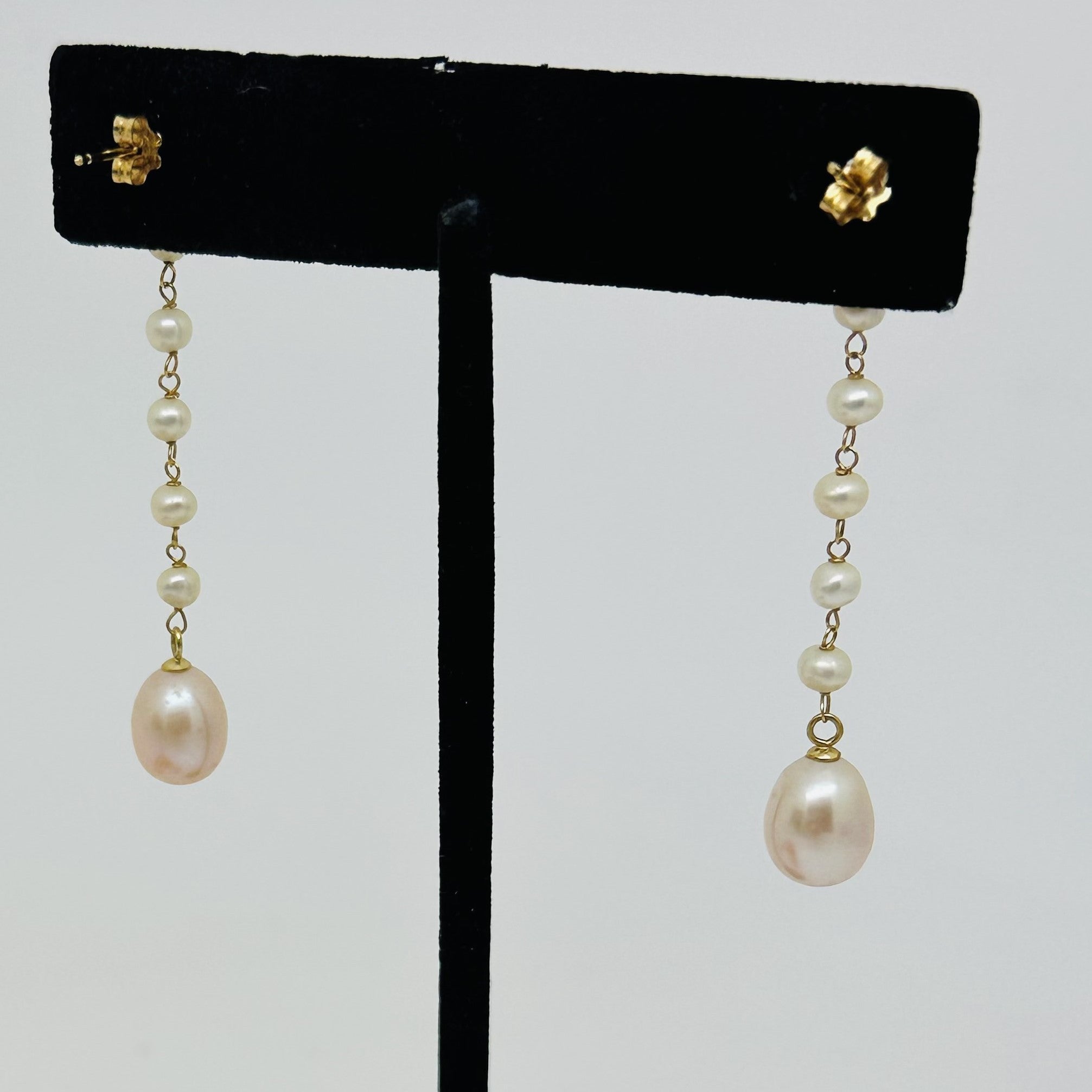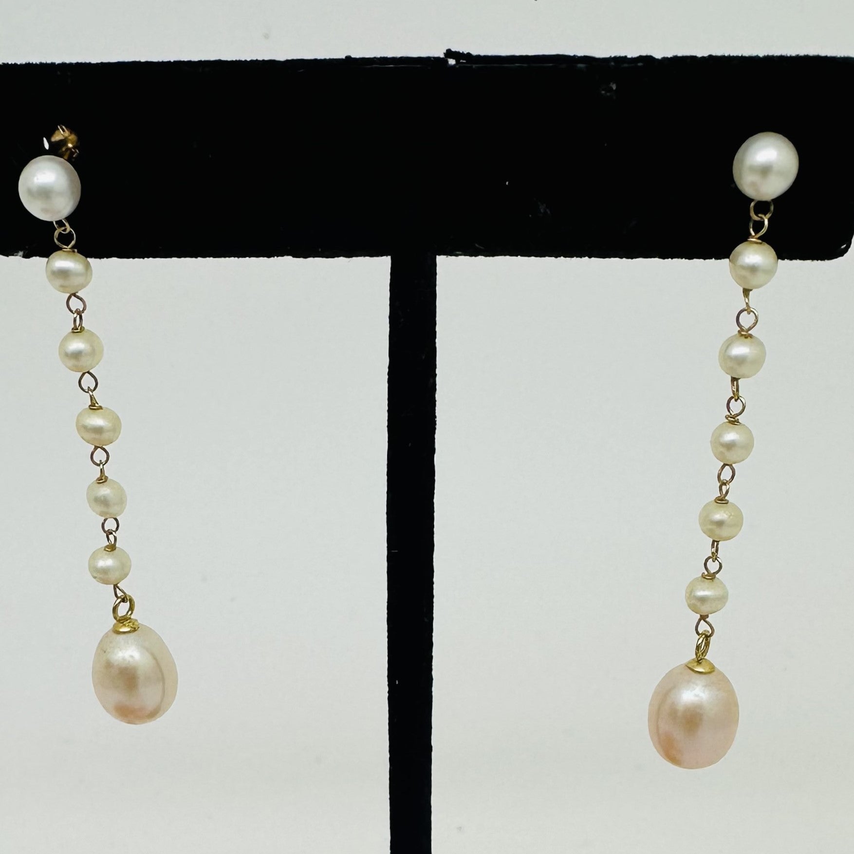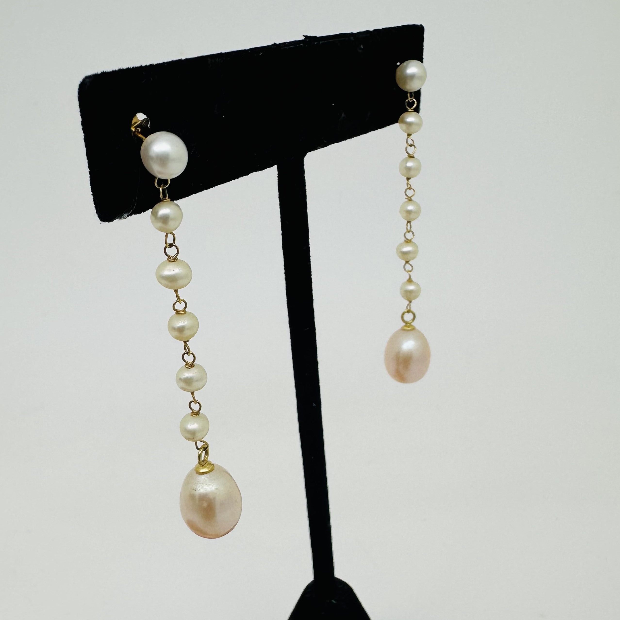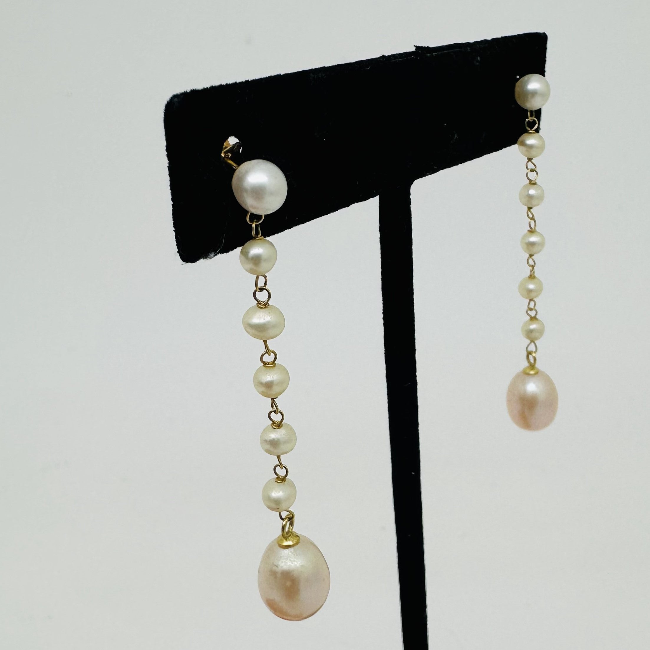 Jolie paire de boucles d'oreille pendante en or 750/1000 avec perle de culture