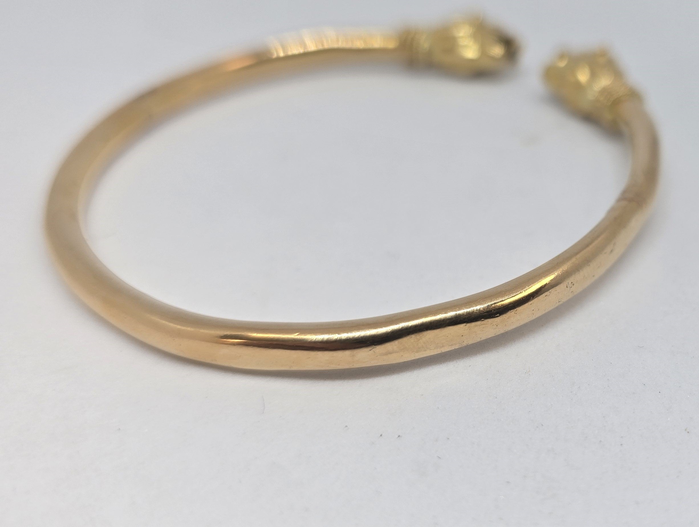 Beau bracelet jonc tête de lion en or jaune 18 carats.Pour apprivoiser la bête qui dors en vous.