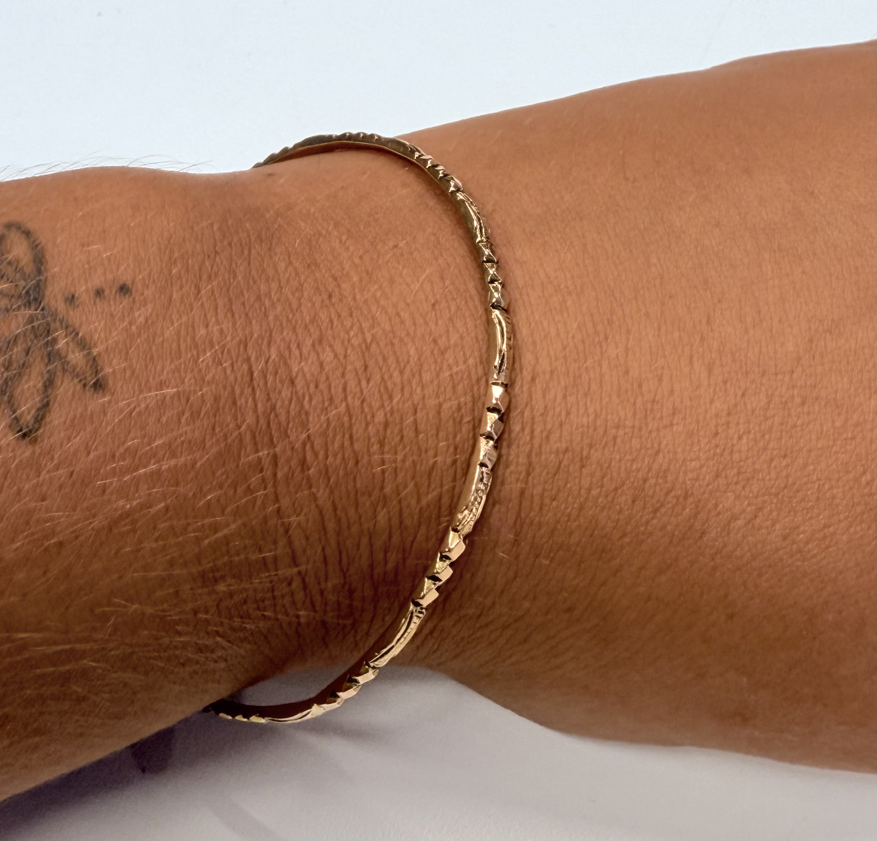 Joli jonc travaillé or jaune 18k