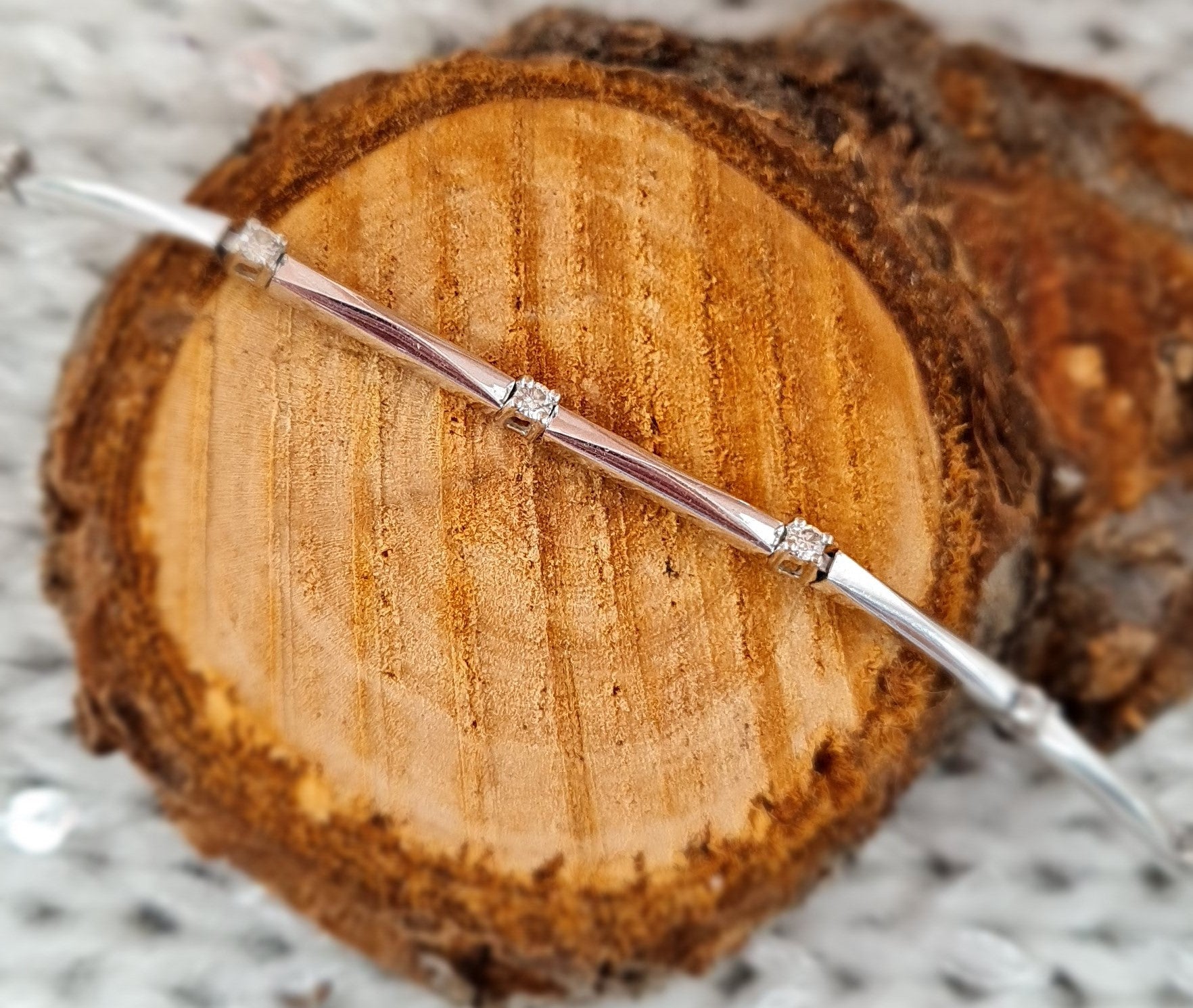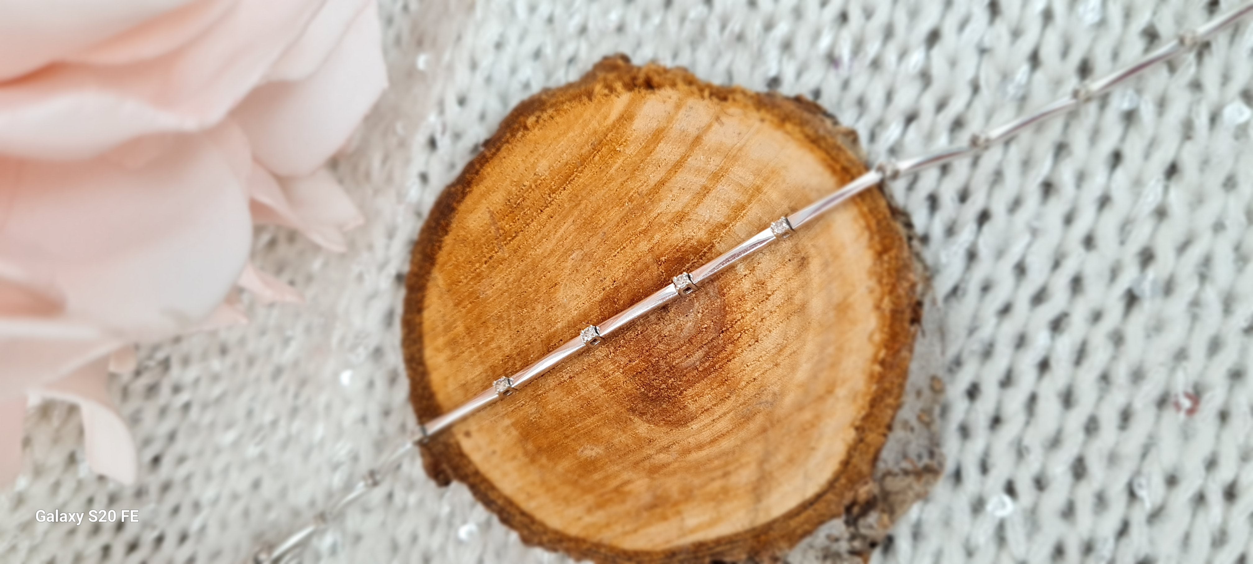 Très joli bracelet fin et élégant en or blanc 18k et diamants