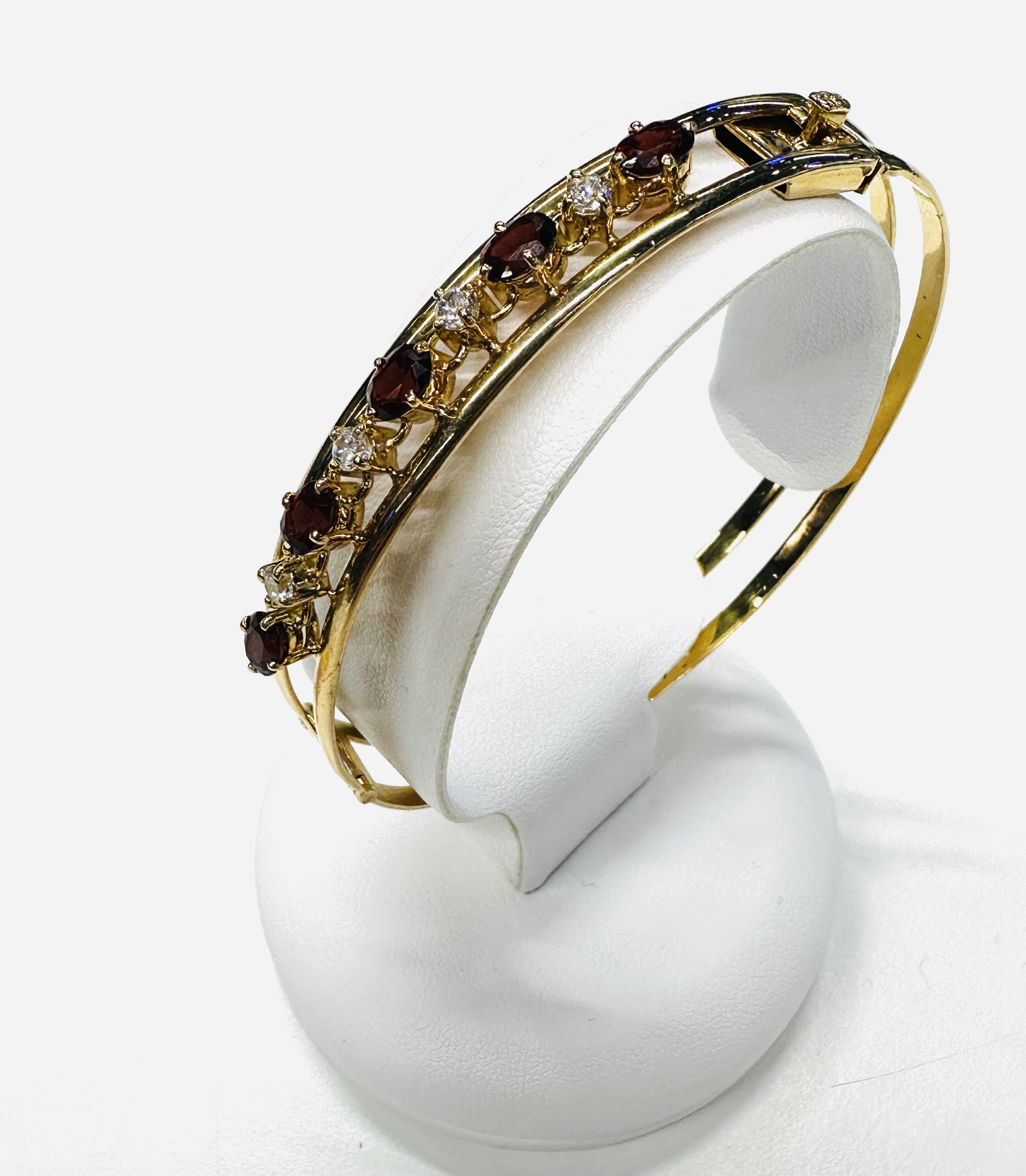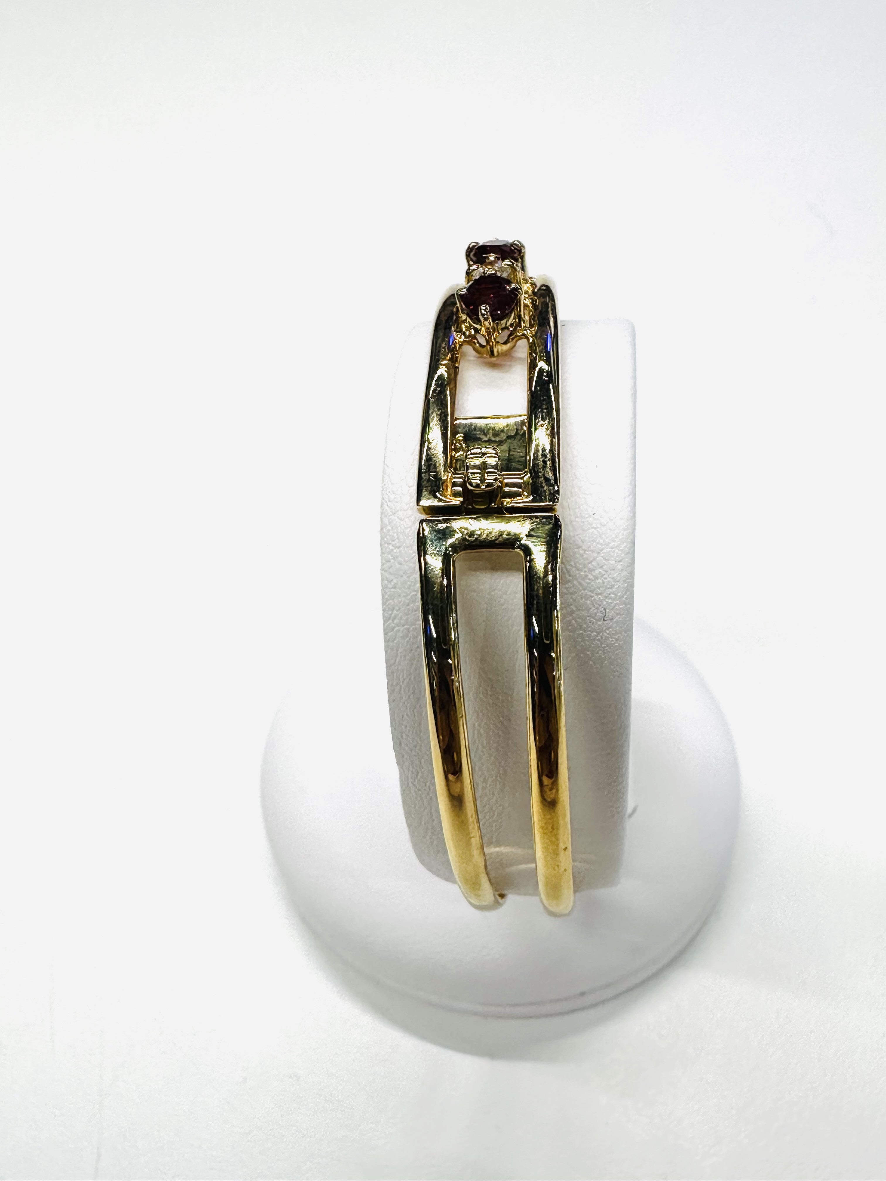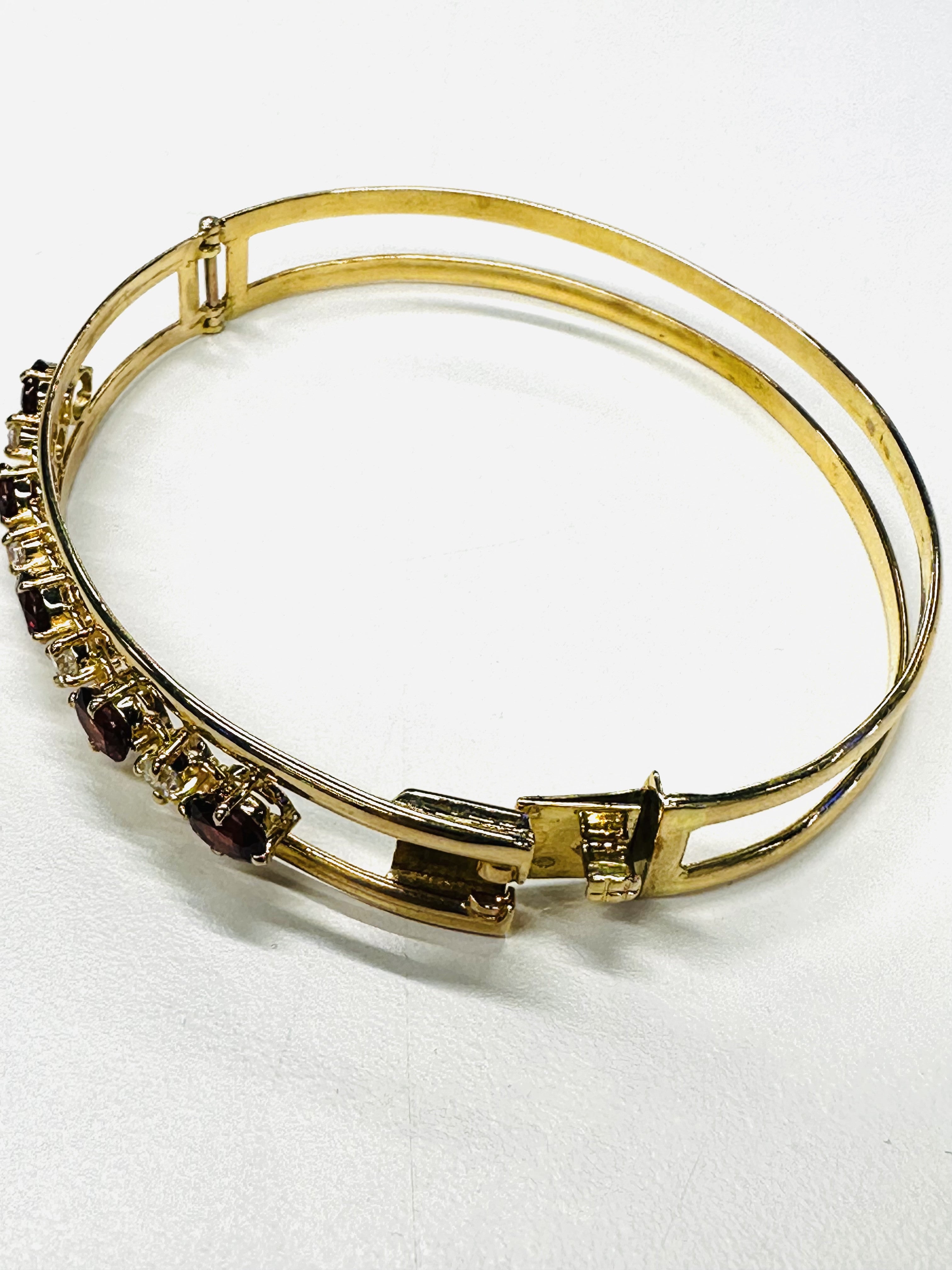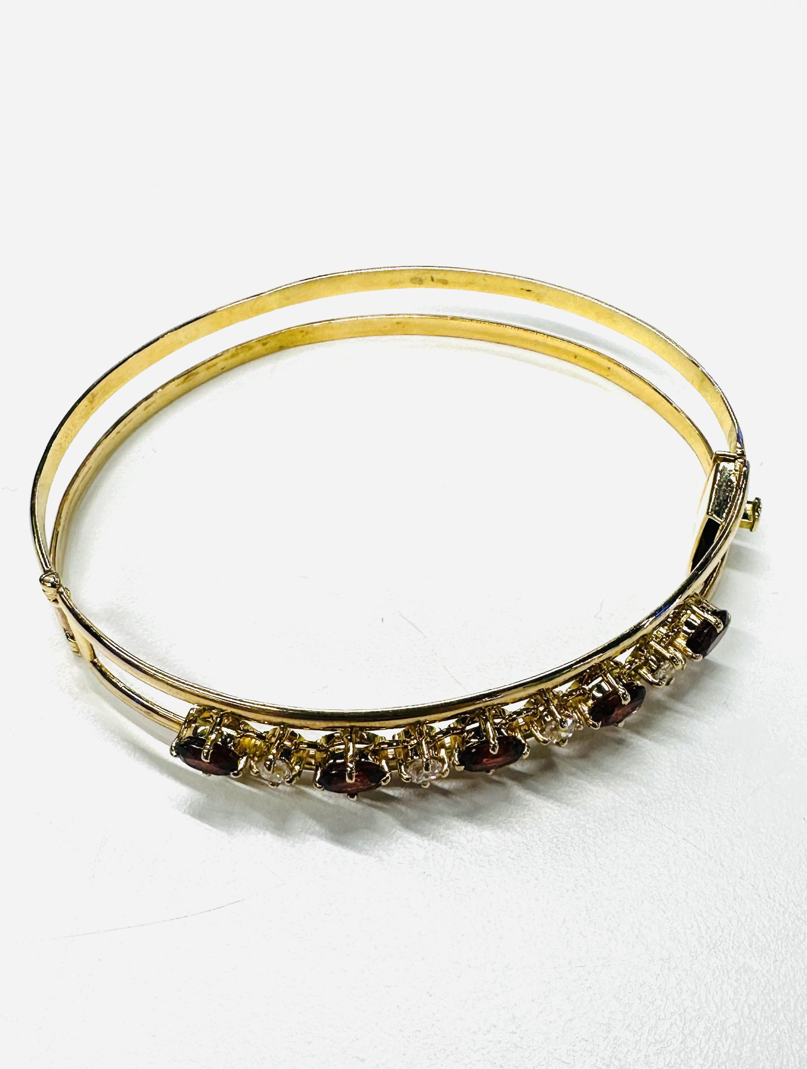 Magnifique bracelet jonc en or jaune 18k zirconiums et grenats