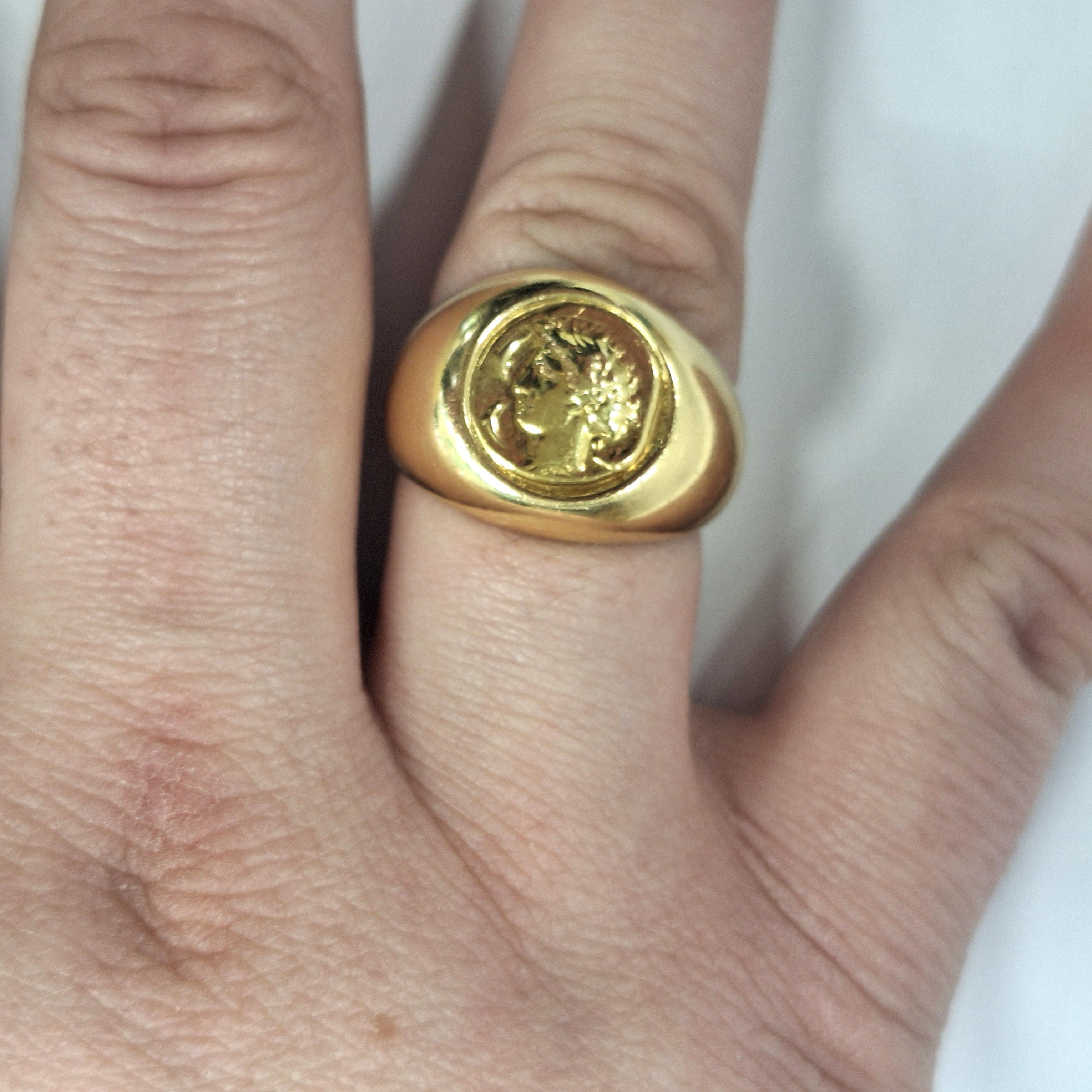 Magnifique chevalière en or jaune 18 carats.