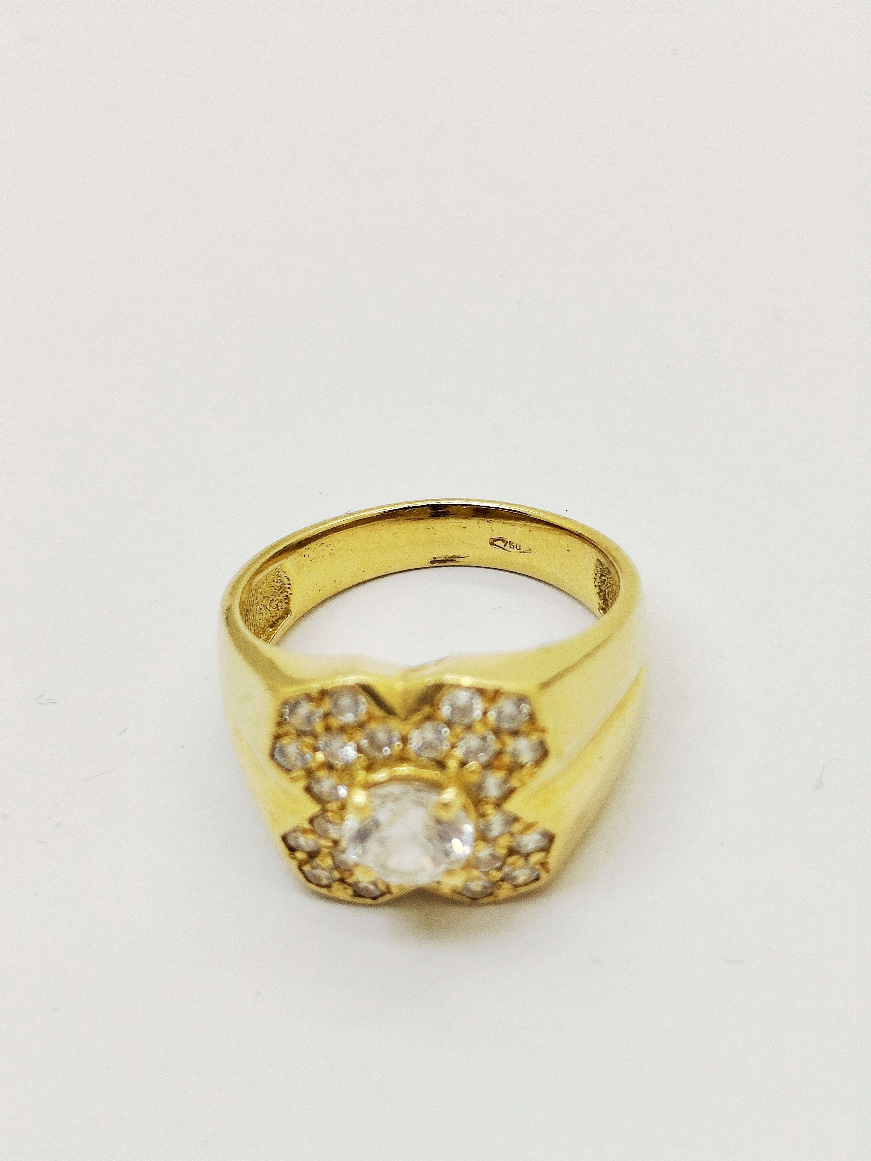 Magnifique bague chevalière en or jaune 18 carats (750/1000). Ornée de diamants . Avec un zirconium au centre. Pesant 8.97 grammes.Taille 60.