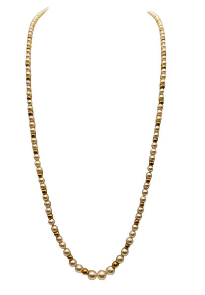 Ravissant collier de perles de culture et perles d’or en chute , avec un fermoir en or et rose de diamant