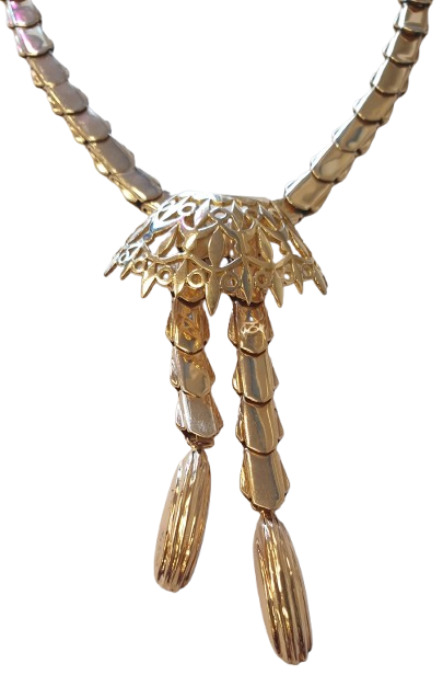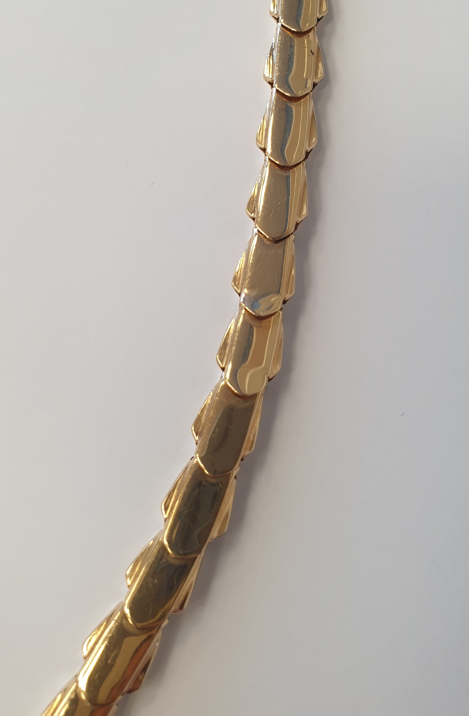 Collier matinée en or jaune 18 carats (750/1000). Pesant 37,15 grammes et mesurant 42 cm de longueur, ce bijou est conçu avec une maille serpent délicate, d’une largeur de 0,5 cm, pour un design fluide et raffiné. Son pendentif de 3,5 cm de largeur et 2 cm de hauteur ajoute une touche remarquable à l’ensemble. Doté d’un fermoir à cliquet pratique, ce collier incarne l’harmonie entre créativité et élégance. En bon état, il est idéal pour les amateurs de bijoux au design original et distinctif.