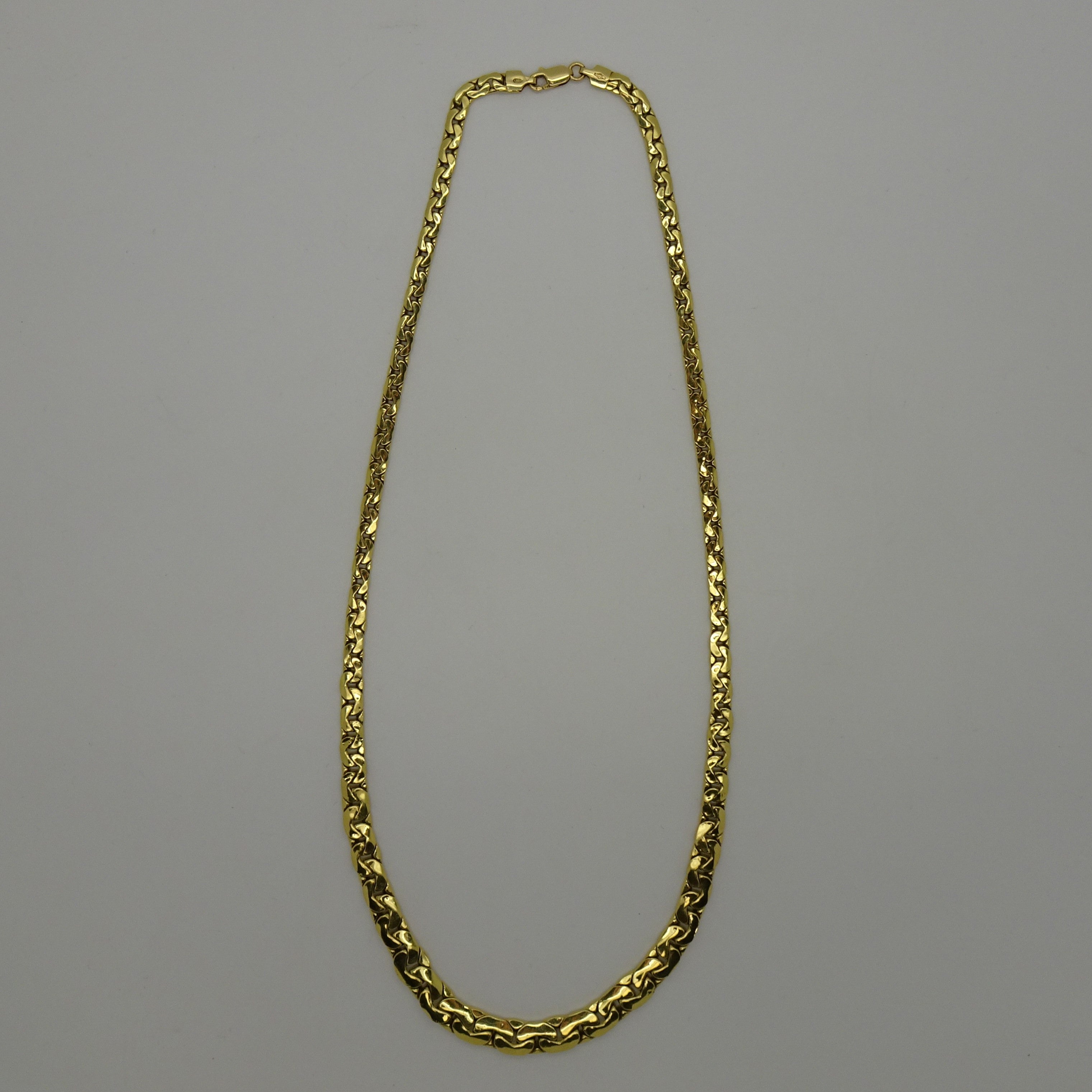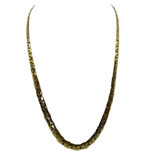 Plongez dans l’histoire et le raffinement avec ce somptueux collier en or jaune 18 carats (750/1000), inspiré par l’élégance intemporelle de la maille anglaise. Ce tissage emblématique, apprécié depuis des siècles pour sa solidité et sa souplesse, a traversé les époques en parant les plus grands nobles et aristocrates.
