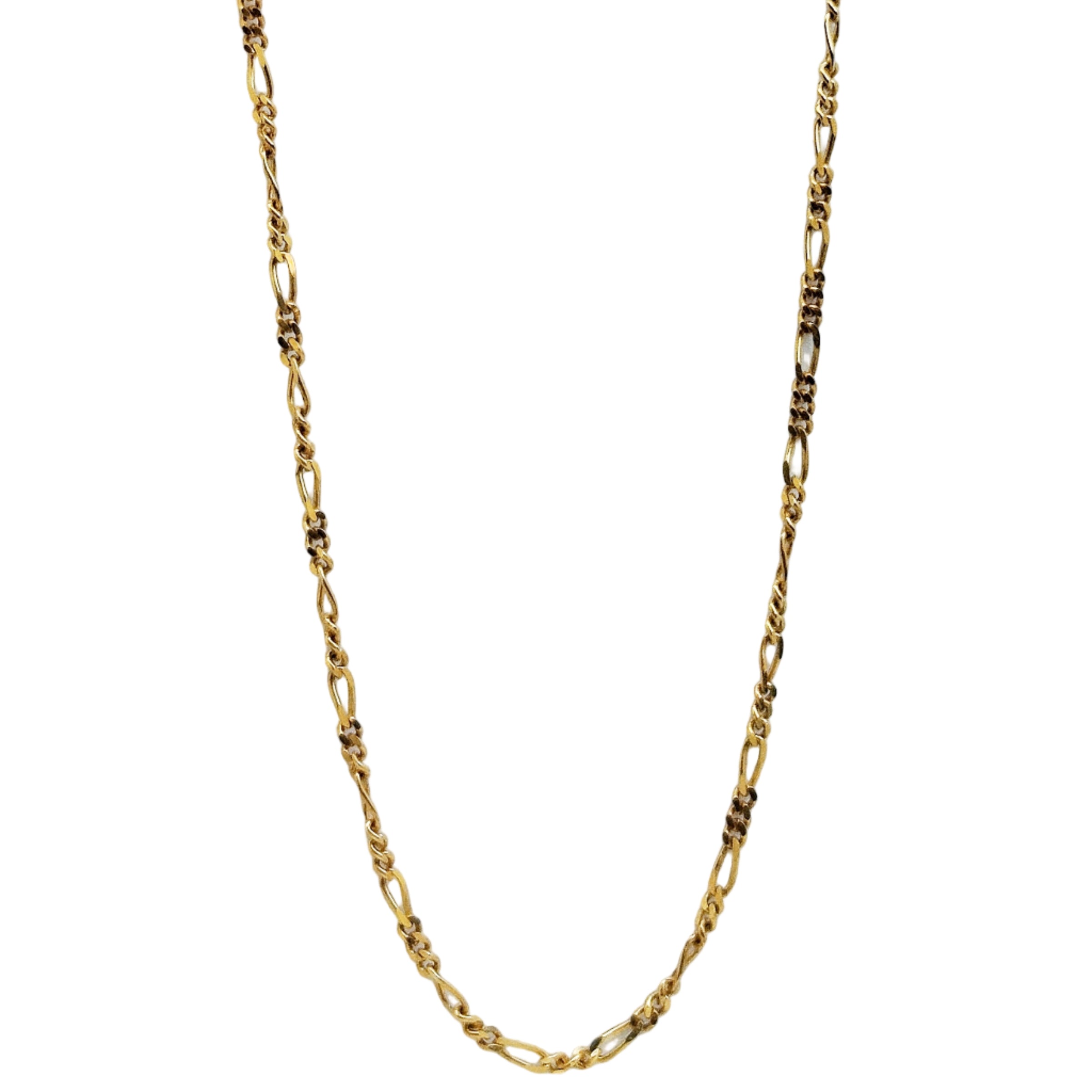 Collier princesse en or jaune 750/1000 (18 carats), maille Figaro, avec fermoir mousqueton. Longueur 44,5 cm, largeur 2 mm, poids 7,11 g. Poinçonné. Très bon état.