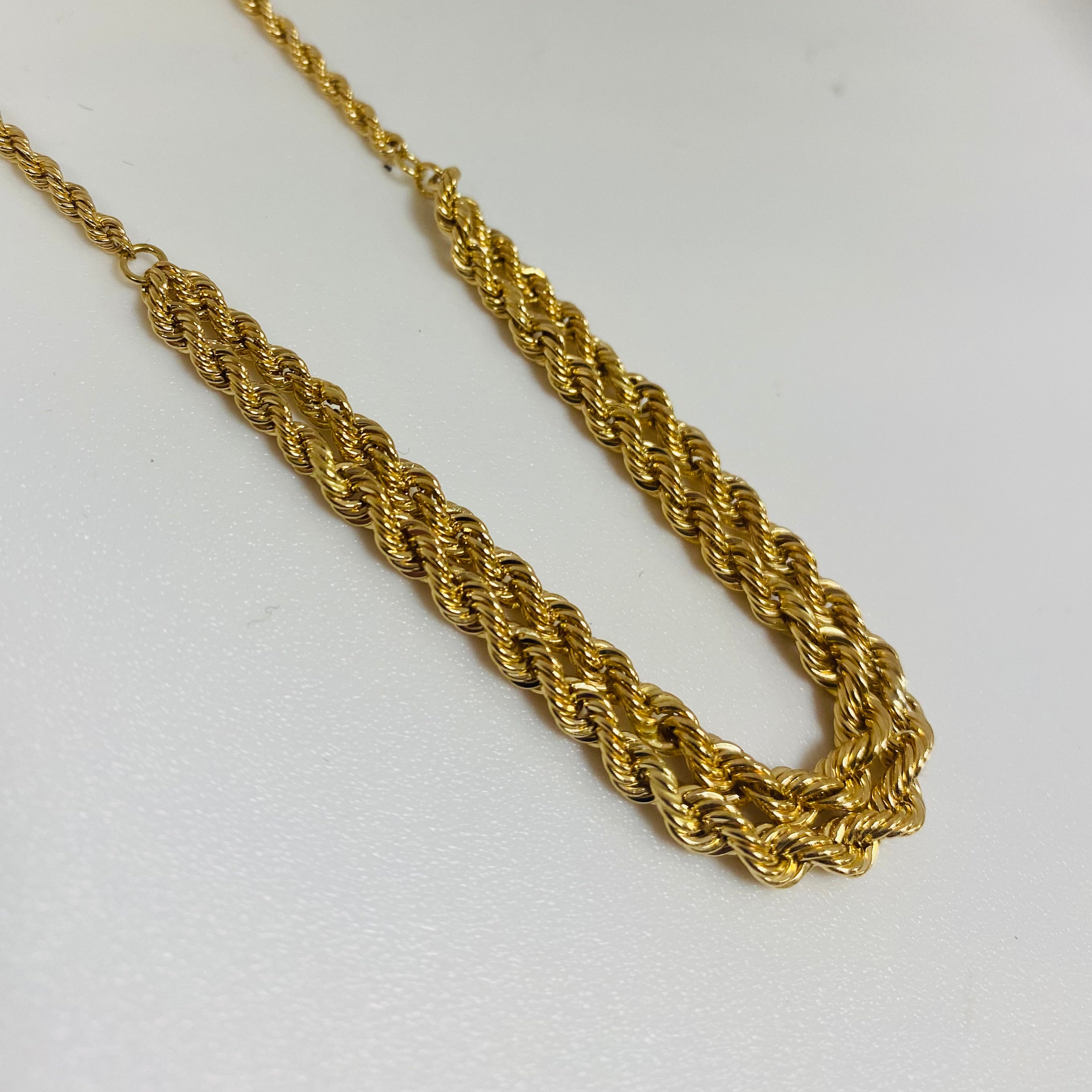 Ce collier princesse en or jaune 18 carats (750/1000), poinçonné 750, se distingue par sa maille torsadée élégante et sa doublure centrale qui lui confère un aspect raffiné. Avec un poids de 4,65 grammes et une longueur de 44 cm, il offre un équilibre parfait entre confort et style. Sa largeur et son épaisseur de 5 mm lui apportent une belle présence autour du cou.