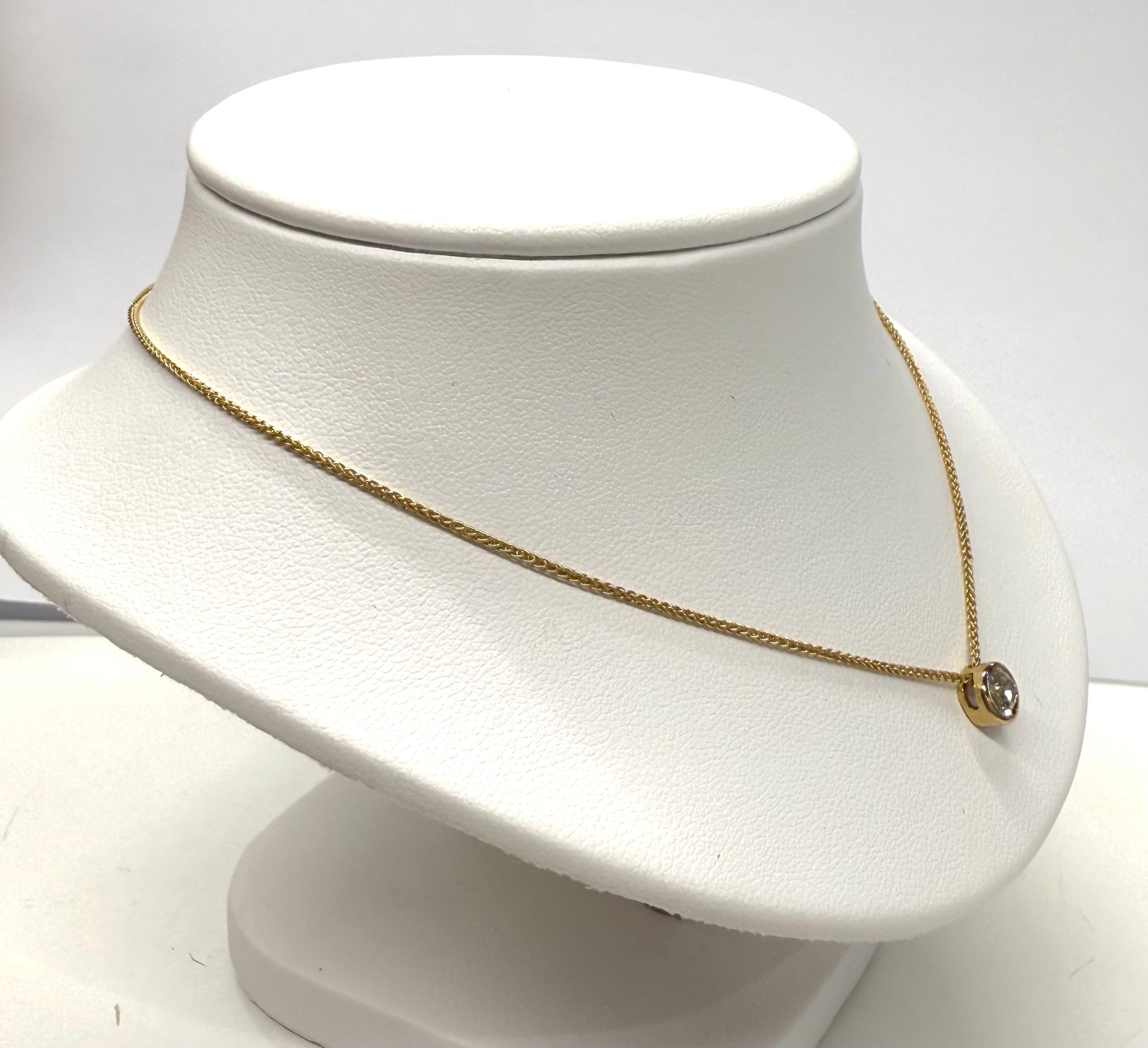Sublimez votre décolleté avec ce somptueux collier Princesse en or jaune 18K (750/1000), sublimé par un éclatant diamant de 0.40 carats. Sa chaîne maille forçat fine et délicate met en valeur le pendentif scintillant, offrant une touche de luxe et de raffinement à toutes vos tenues.