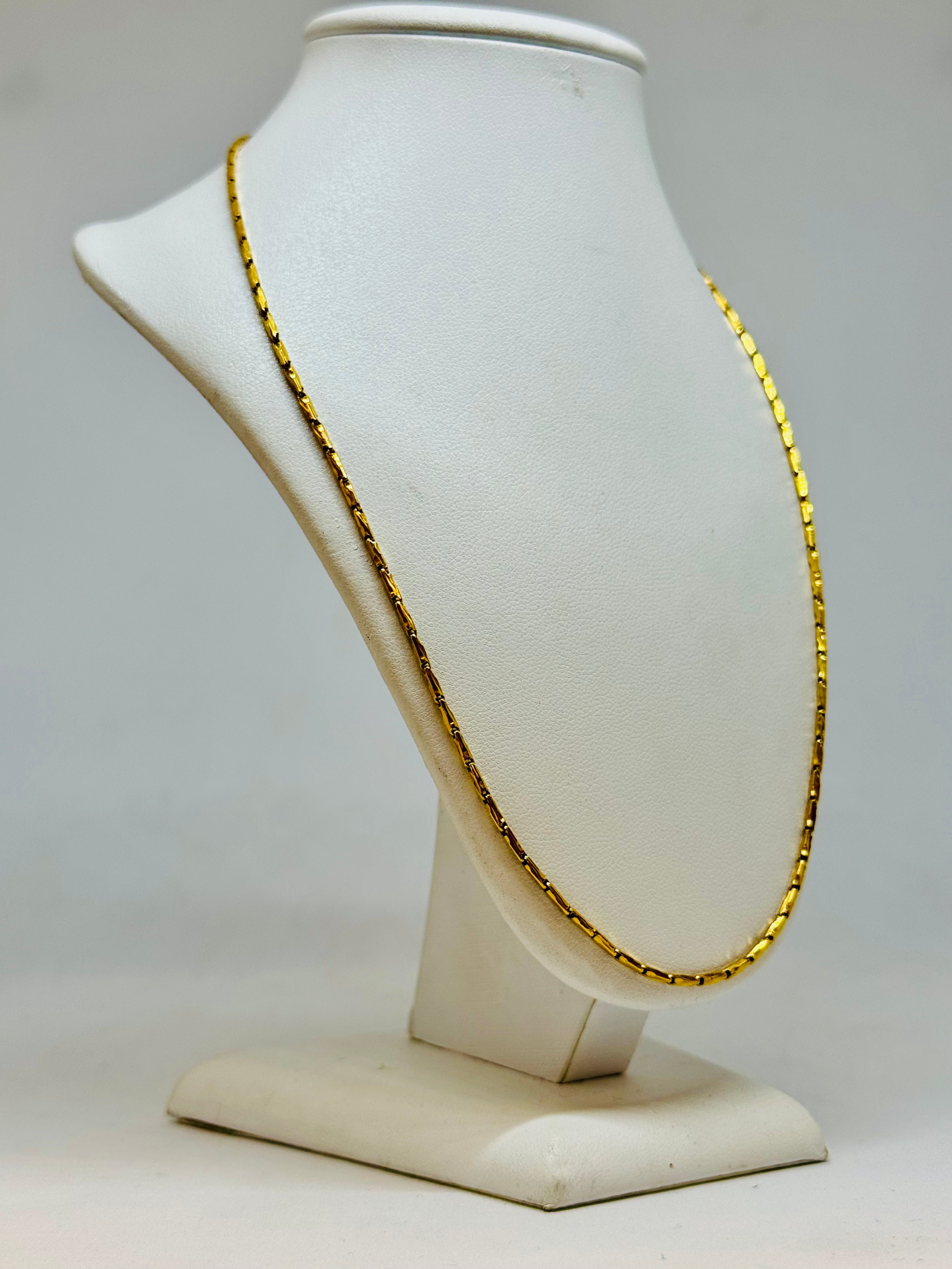 Offrez-vous un bijou d’exception avec ce collier Princesse en or jaune 22 carats (916/1000). Son éclat incomparable et sa finesse de 3 mm en font un accessoire raffiné, parfait pour sublimer toutes vos tenues. D’une longueur idéale de 48 cm, il se ferme avec un crochet en S, assurant une tenue sécurisée et élégante. Un bijou intemporel, symbole de luxe et de sophistication.
