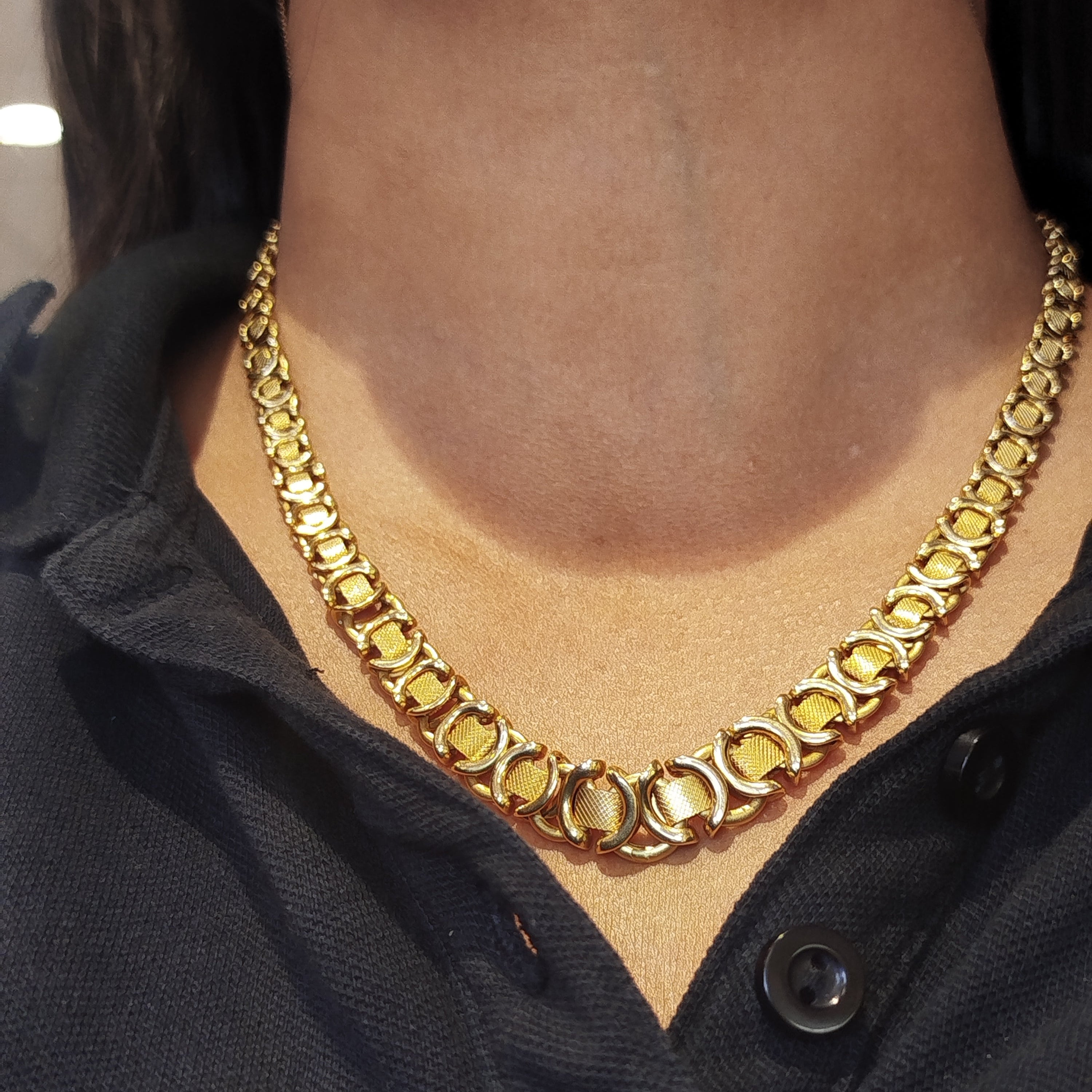 Magnifique collier en or jaune 18 carats (750/1000). Pesant 23, 67 grammes . Il mesure 47 cm de long.