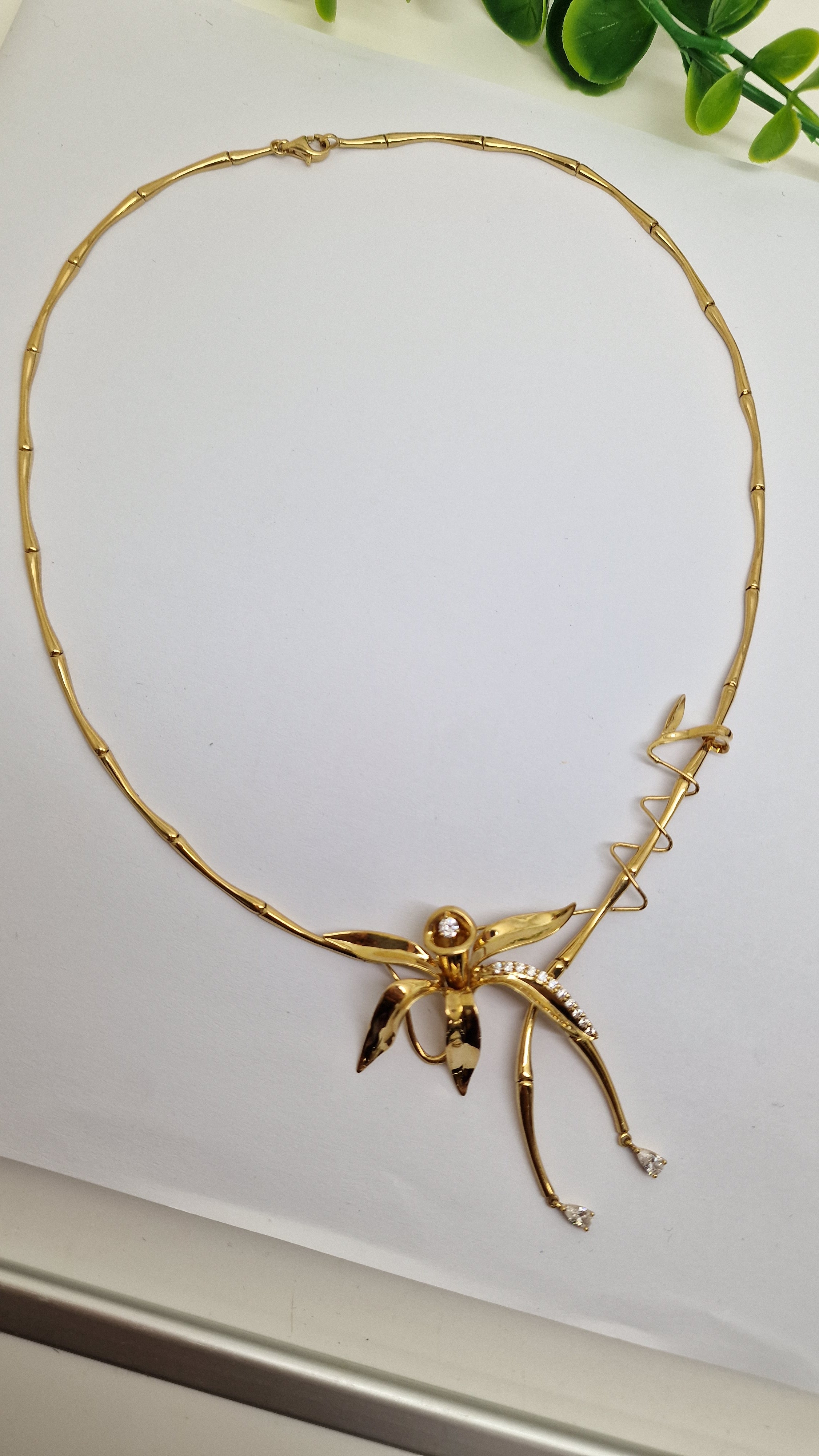 • Collier Princesse en Or Jaune 18 Carats avec Oxyde de Zirconium - 19.54 Grs