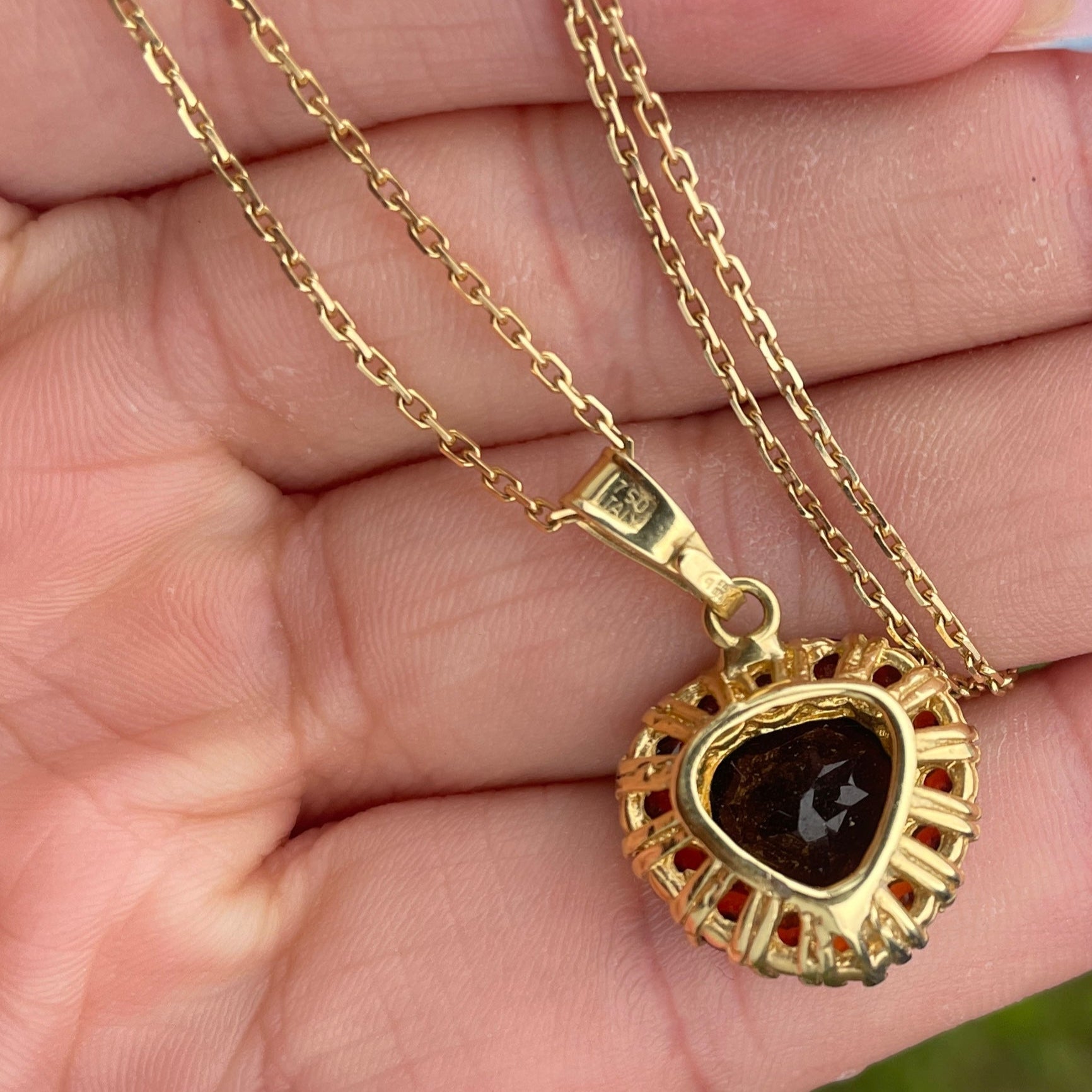 Collier de type princesse en or jaune 18 carats (750/1000), poinçonné 750, avec maille forçat et fermoir à anneau ressort. Il mesure 46 cm de long pour un poids de 6,97 g. Le collier comporte une pierre non certifiée. Bon état.