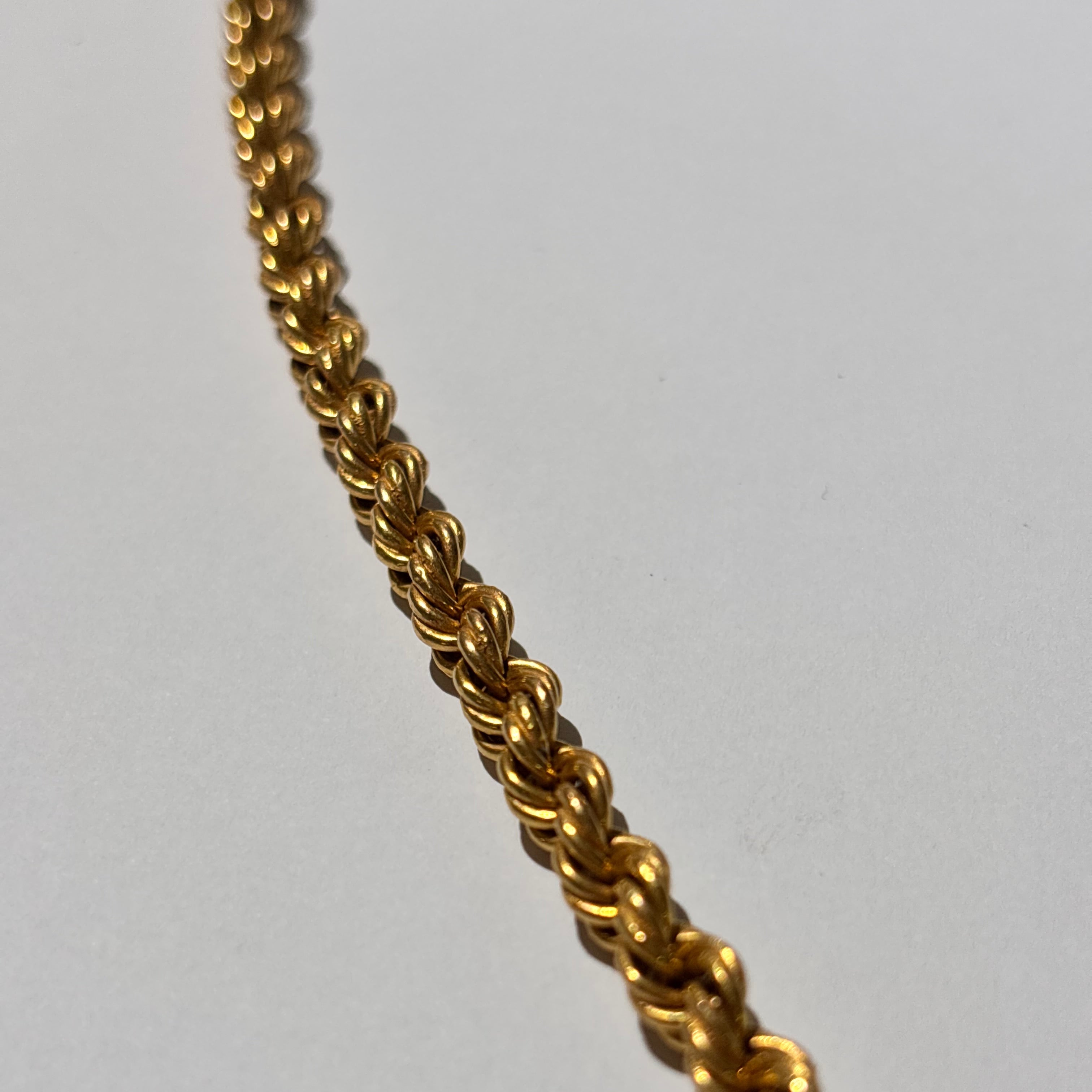 Collier sautoir torsadé en or jaune 18 carats (750/1000), sans pierres. Longueur 61 cm, poids 14,15 g, fermoir anneau ressort. Poinçonné 750 et tête d’aigle. En très bon état, élégant et intemporel.