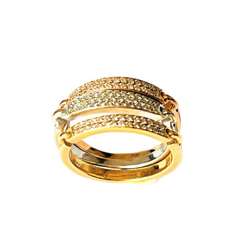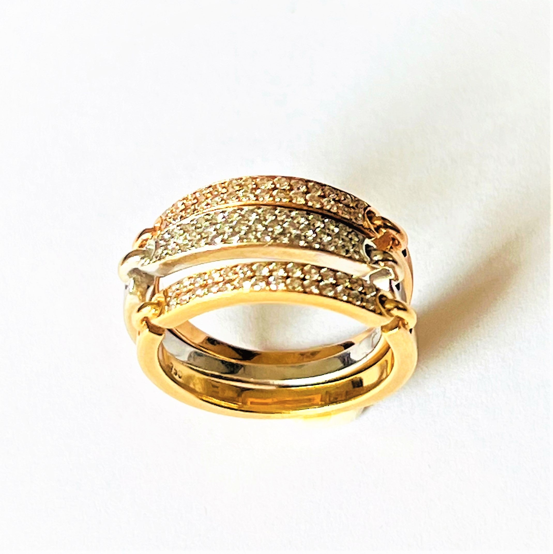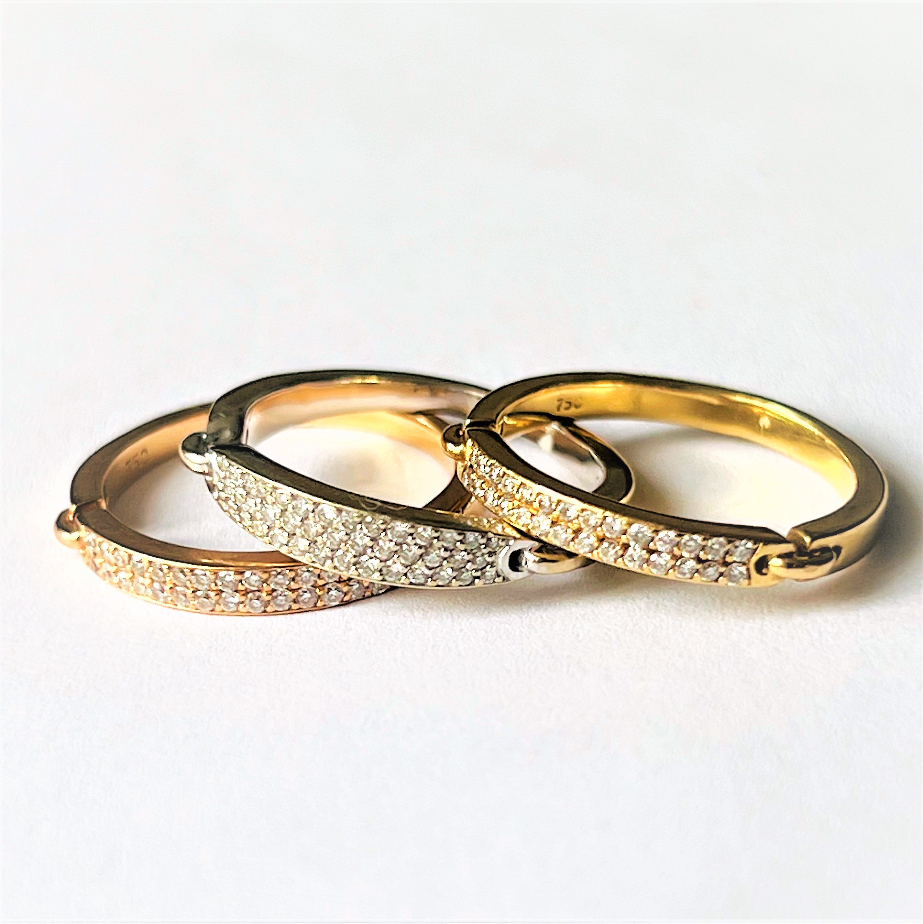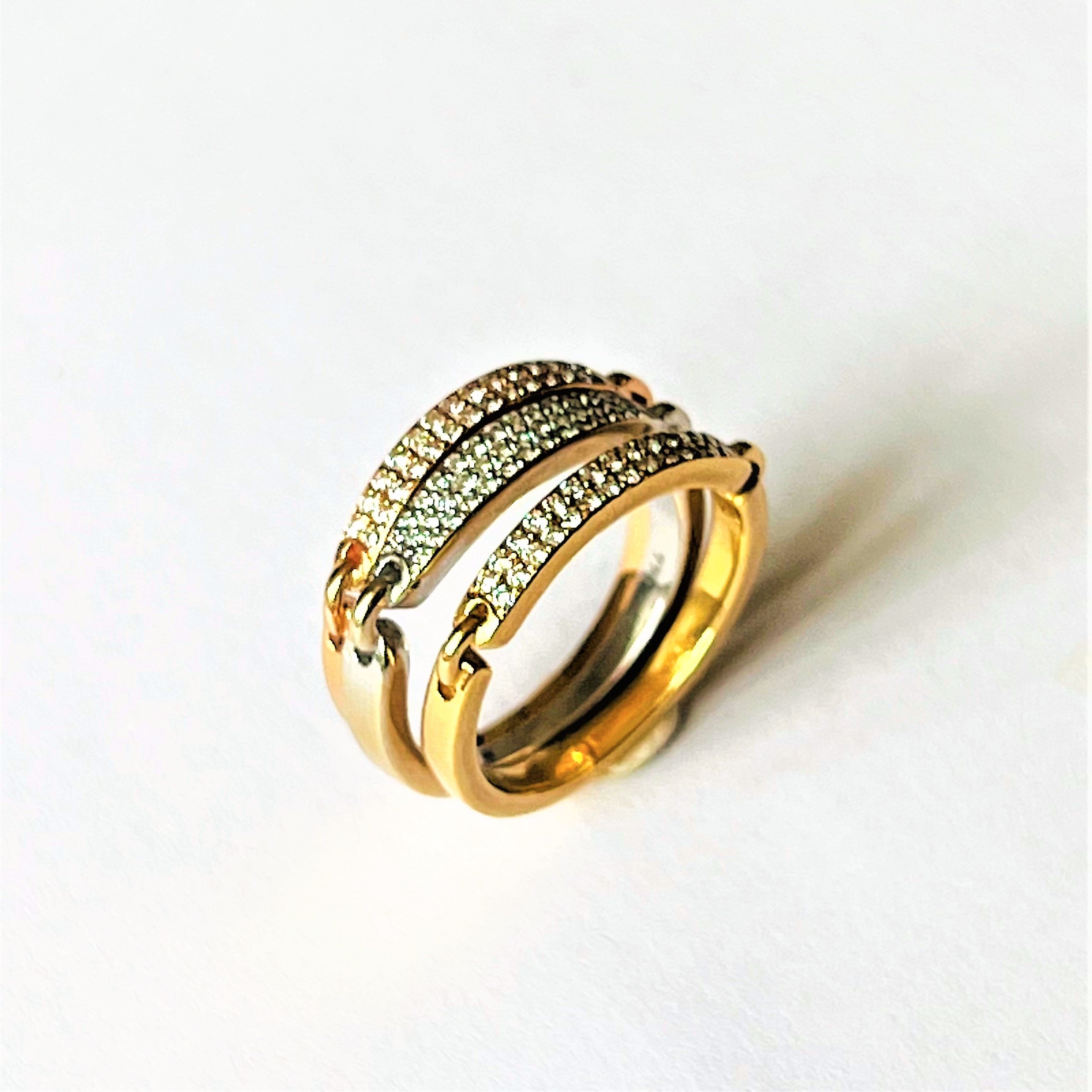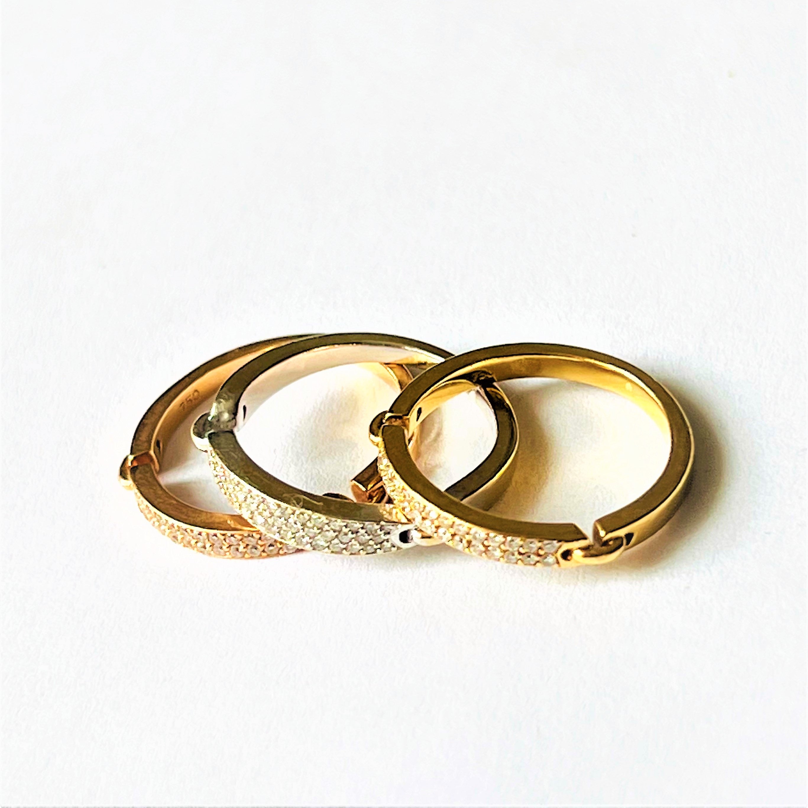 Chic et élégante, craquez pour cet ensemble de 3 bagues 3 ors 18 carats ornées de diamants