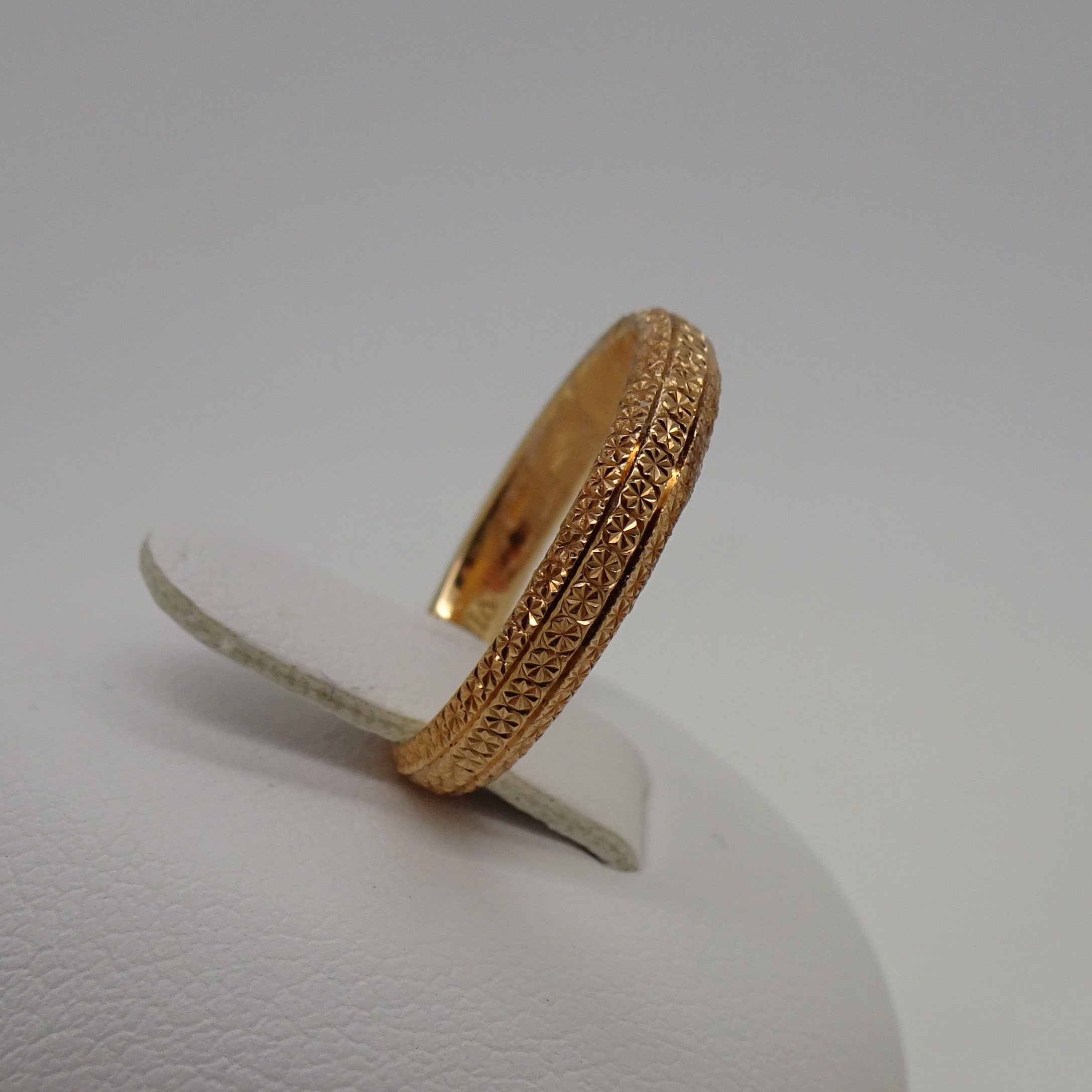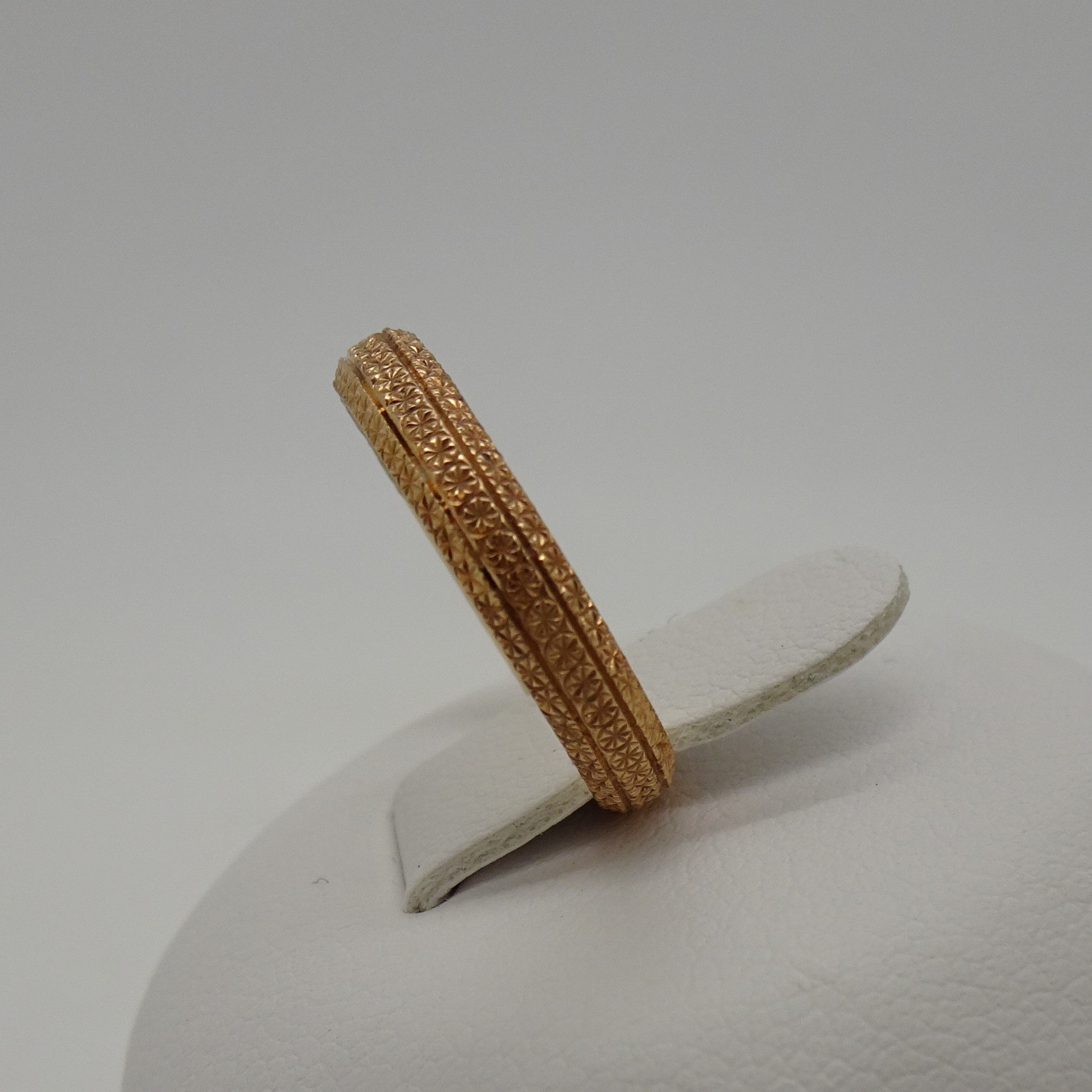 Découvrez une bague d’exception, où l’art joaillier atteint son apogée. Cette alliance en or 750/1000 arbore un design finement travaillé, jouant avec la lumière pour donner l’illusion d’un pavage de pierres précieuses… sans en contenir une seule. Son secret réside dans la précision des gravures et des facettes minutieusement sculptées, qui captent chaque rayon pour un éclat saisissant.Pensée pour symboliser l’amour éternel, cette alliance est un chef-d’œuvre de finesse et de sophistication. Son design raffiné et intemporel en fait un bijou unique, aussi lumineux qu’un pavage de diamants, mais avec la noblesse et la pureté d’un travail d’orfèvrerie exceptionnel.