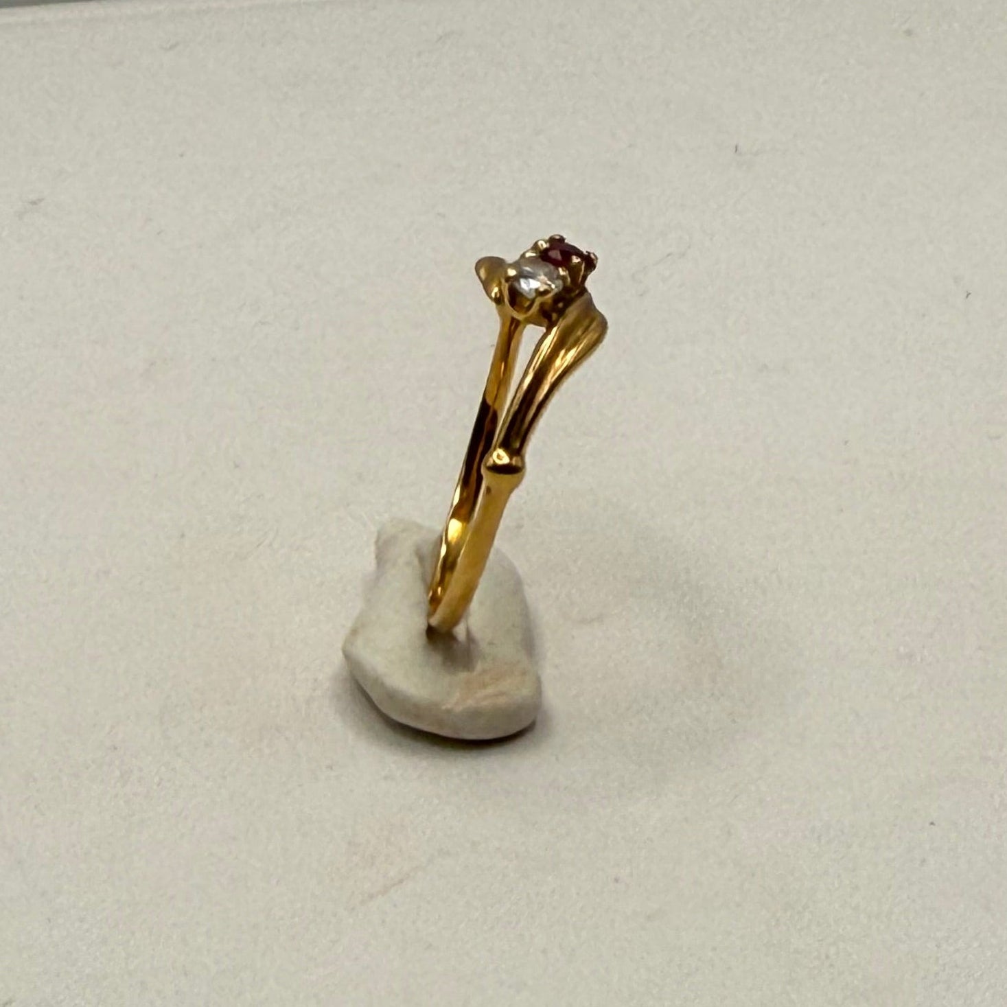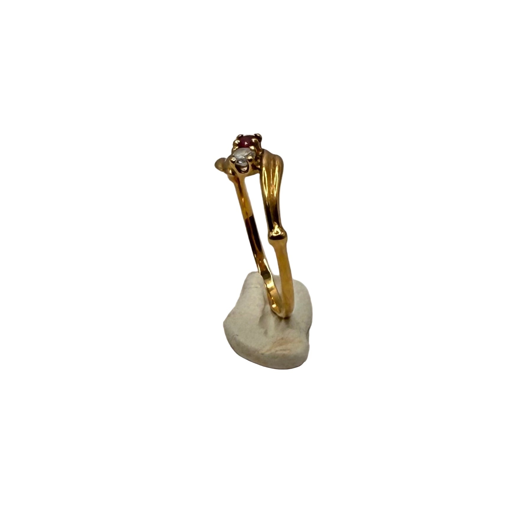Bague Empierrée en Or Jaune 18 Carats avec Diamant et Rubis – Élégante bague taille 53 en or jaune 750/1000, ornée d’un diamant 0,04 ct et d’un rubis fin 0,04 ct, pour un éclat subtil et raffiné. Poids 1,12 g, très bon état, poinçonnée Tête d’Aigle, parfaite pour offrir ou sublimer votre style au quotidien.