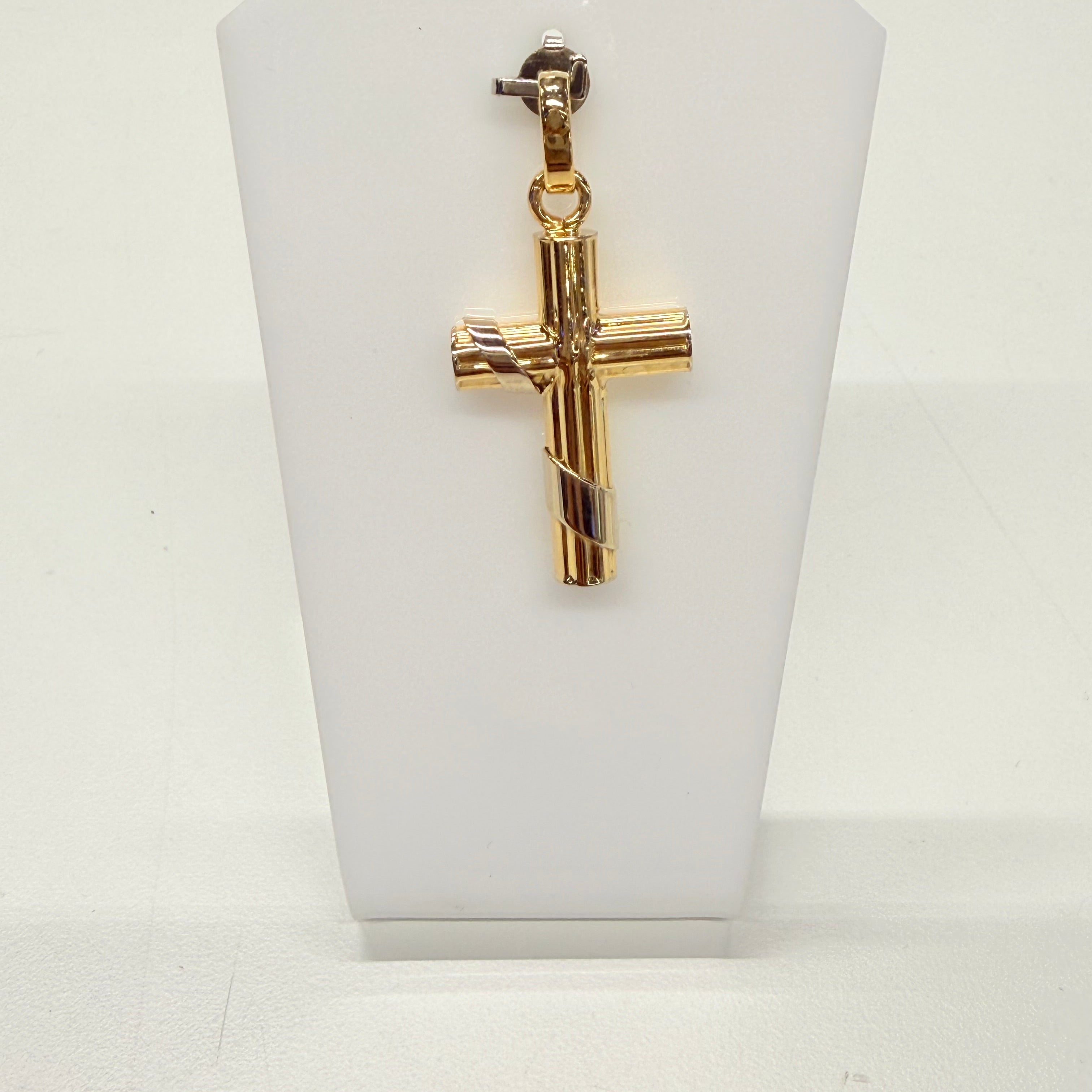 Pendentif Croix en Or Jaune et Blanc 18k Poids - 3.68 Grs