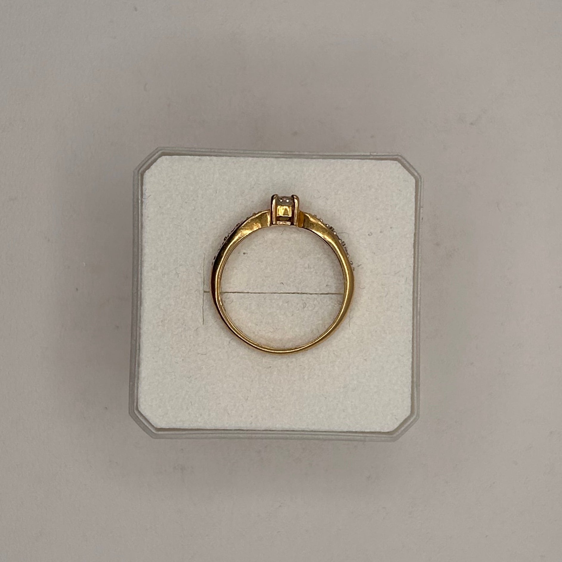 Ce solitaire en or jaune 18 carats (750/1000) est une véritable œuvre d'art, avec un diamant central de 0,15 carats et un pavage de brillants délicatement posé sur les côtés. Un bijou idéal pour marquer un moment spécial ou sublimer votre main avec une touche d’élégance et de brillance.