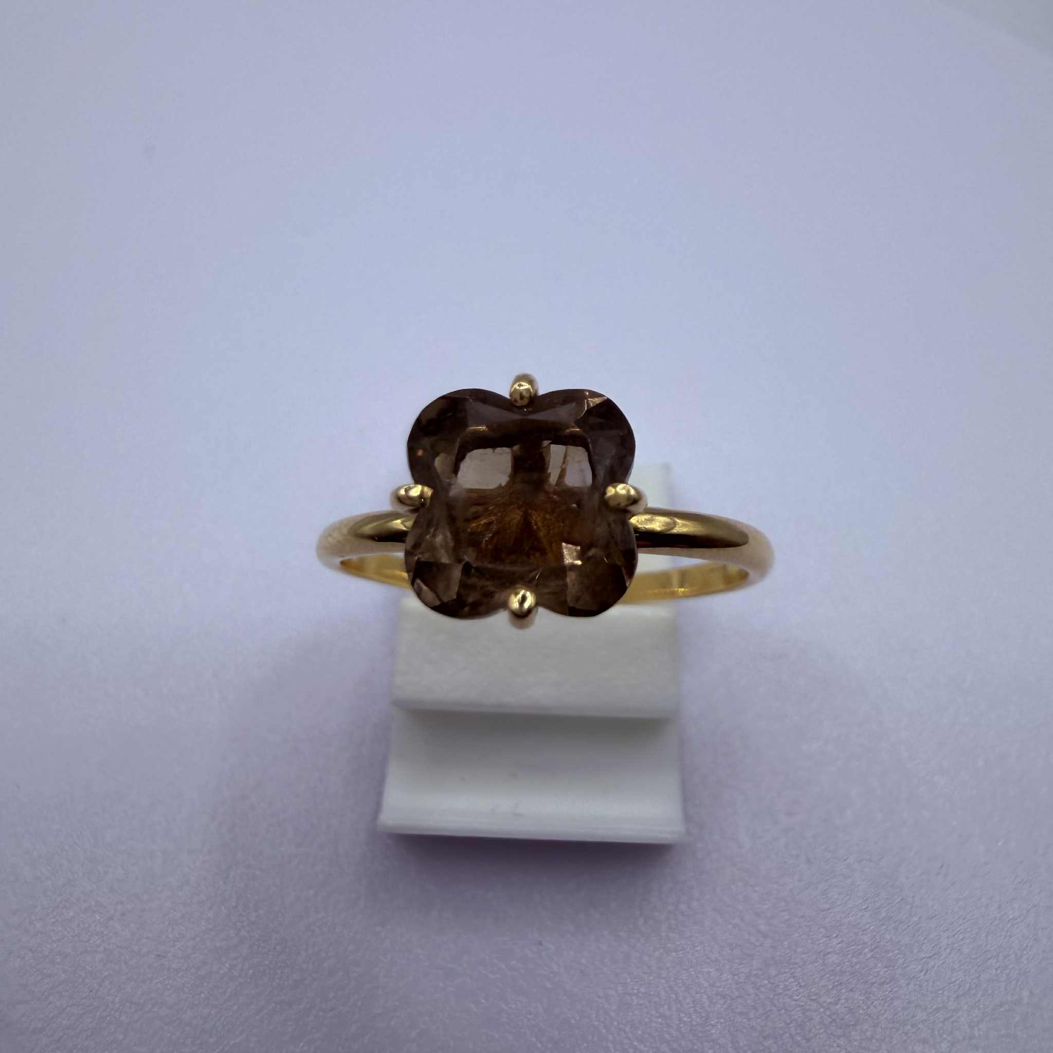 Bague solitaire en or jaune 18 carats (750), poids 2,48 g, taille 60. Sertie d’un oxyde de zirconium brun-miel, elle offre une touche chaleureuse et lumineuse. Pièce élégante au design épuré, en bon état, parfaite pour un style raffiné et intemporel.