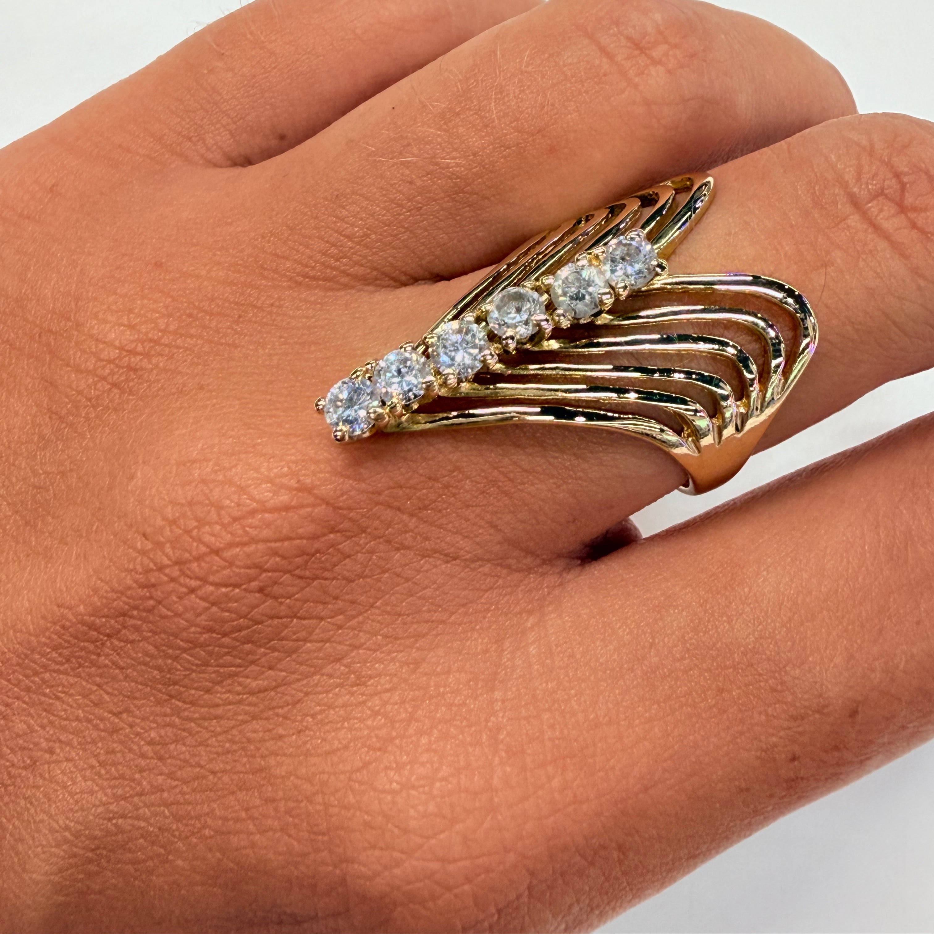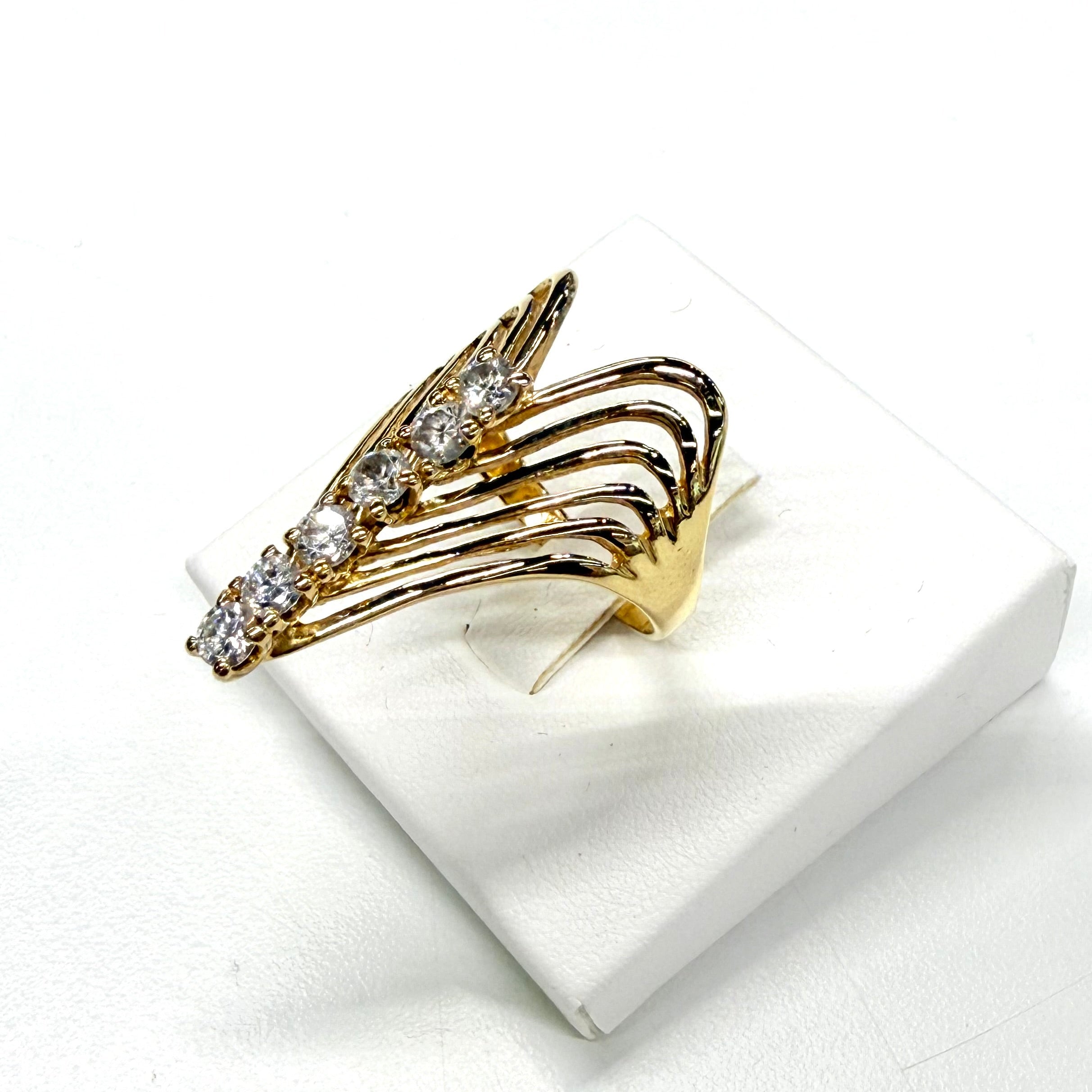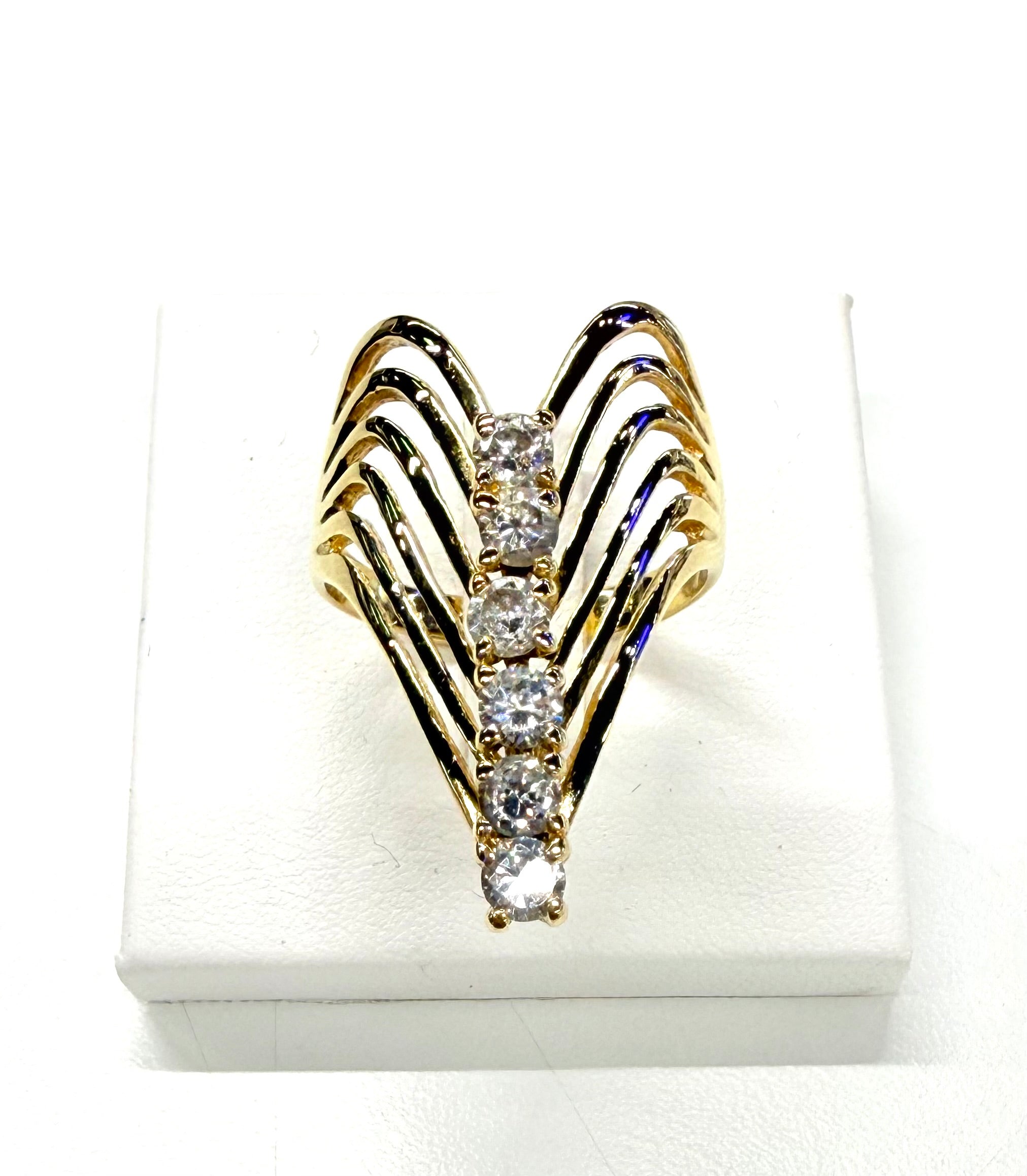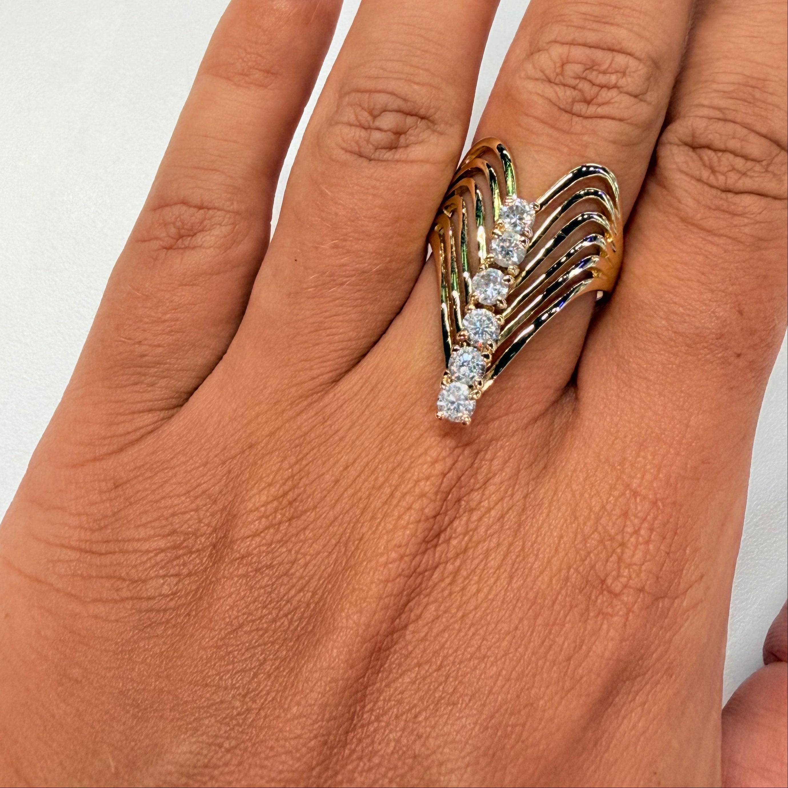 Bague en or jaune 18 carats (750), poids 6,69 g, taille 58. Sertie de 6 oxydes de zirconium de 0,4 cm, elle offre une brillance éclatante et un style raffiné. Pièce élégante et lumineuse, en très bon état, idéale pour sublimer toutes les tenues.