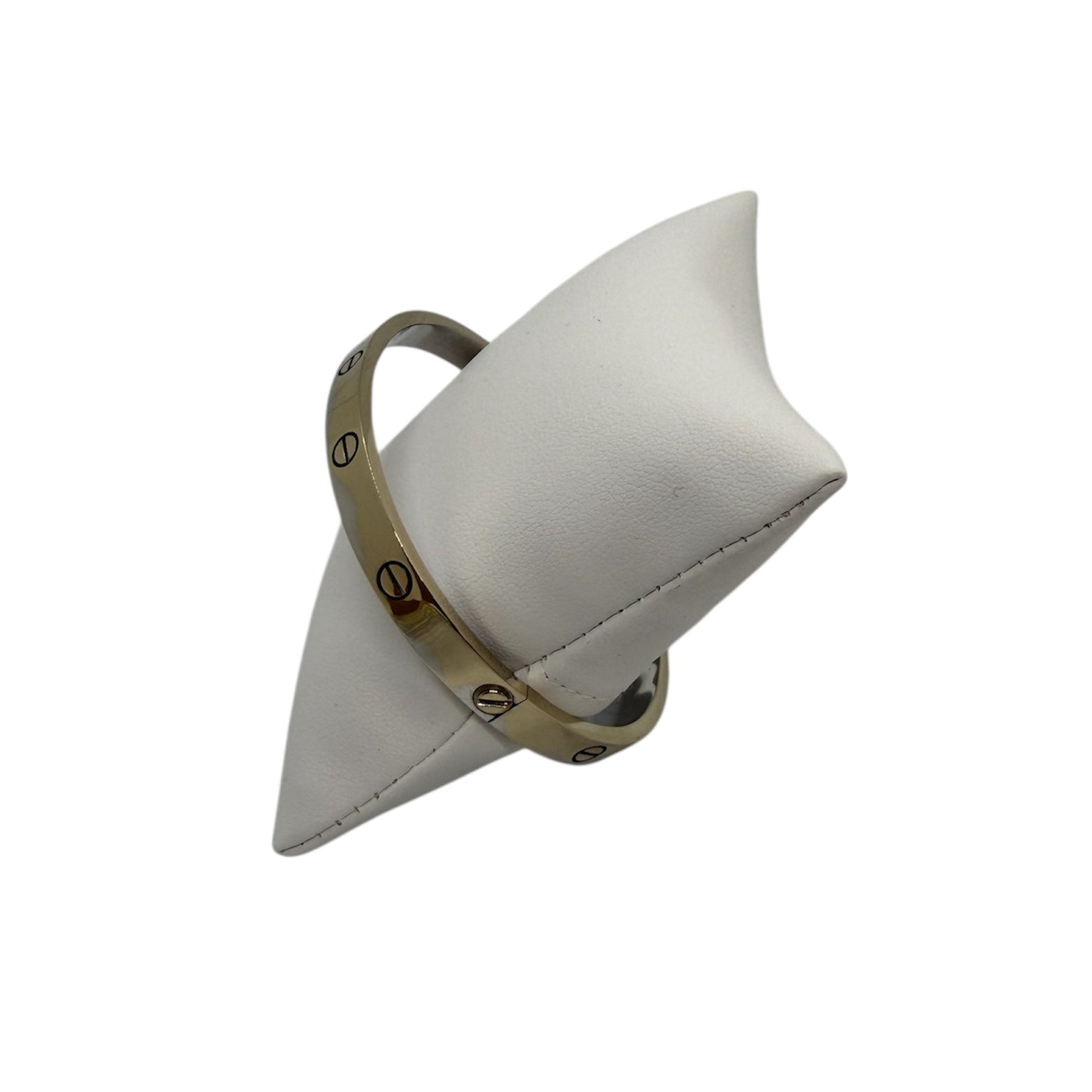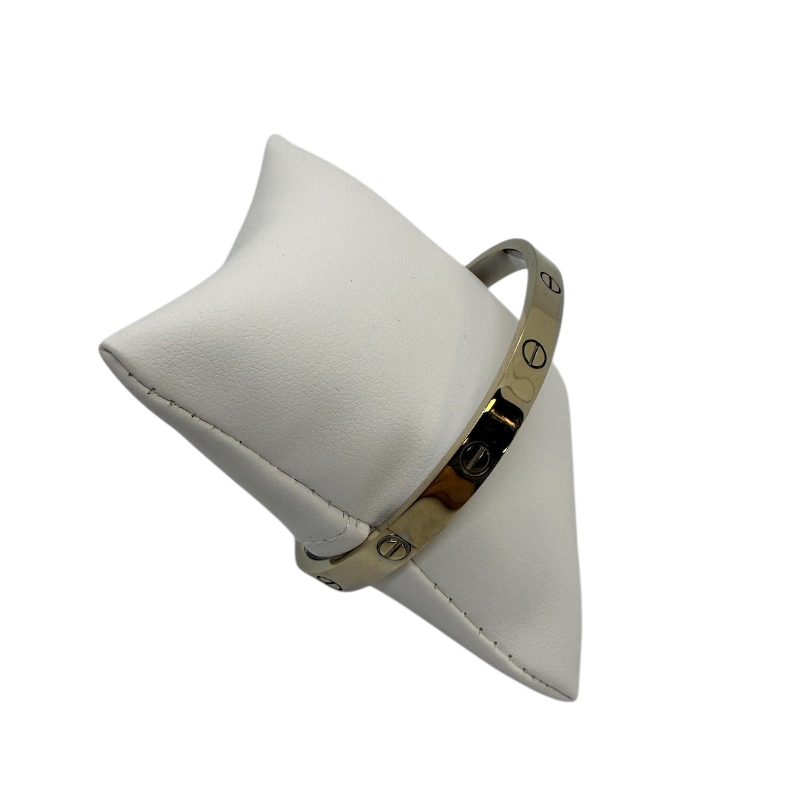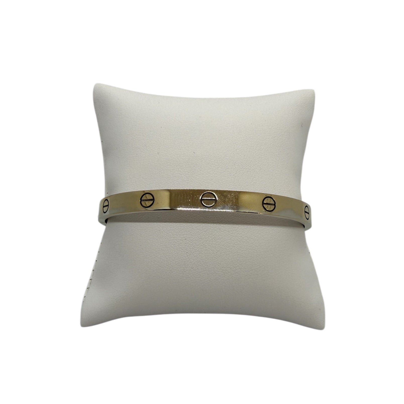 Bracelet jonc fantaisie en or blanc 18 carats (750/1000), longueur 20 cm, largeur 5 mm, épaisseur 1 mm, poids 41,67 g. Fermoir tournevis Cartier, très bon état, élégant et durable.