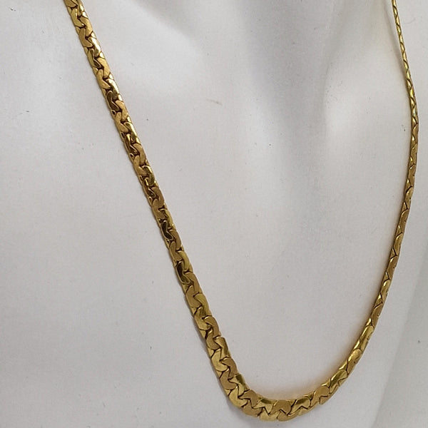 Collier de type princesse en or jaune 18 carats (750/1000), poinçonné 750 et tête d’aigle, en maille haricot. Il mesure 42,2 cm de long, avec une largeur de 4 mm et une épaisseur de 1 mm. Fermoir mousqueton. Modèle sans pierres, présenté en très bon état général.