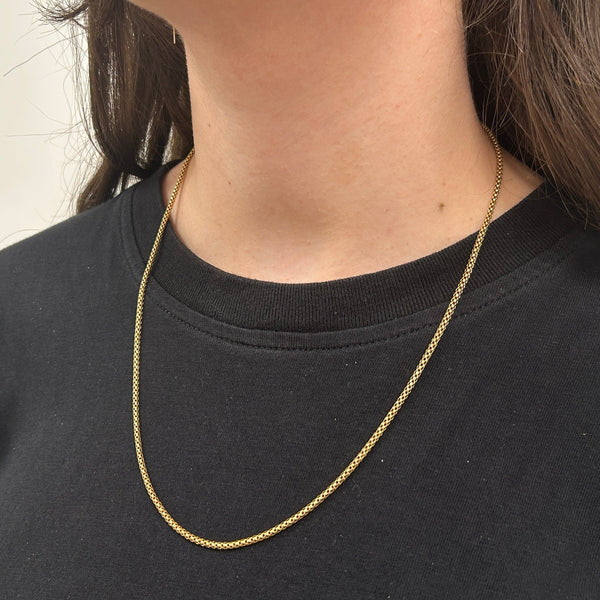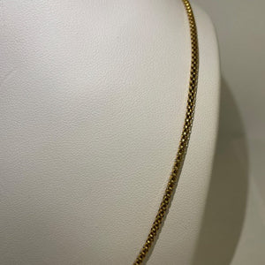 Sautoir en or jaune 18 carats (750/1000) avec poinçon tête d’aigle, doté d’une maille vénitienne élégante. Ce collier d’une longueur de 55 cm, d’une épaisseur de 0,3 cm et d’un poids de 8,20 g est équipé d’un fermoir à anneau ressort sécurisé. Sans pierre, il séduit par sa pureté et son éclat. En bon état.