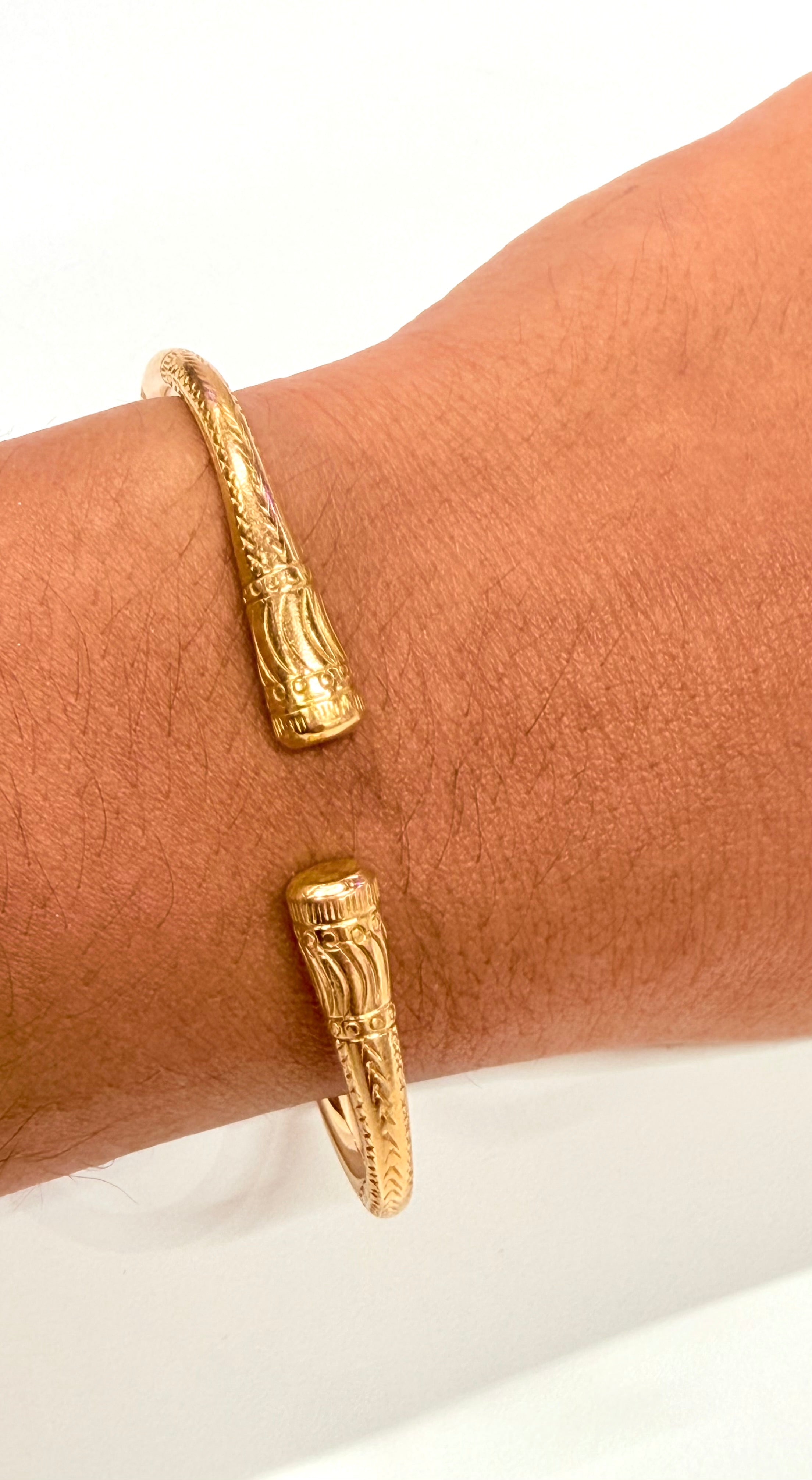 Bracelet jonc plein en or jaune 18 carats (750/1000), poinçonné 18K, gage d’authenticité et de qualité. Sa structure massive et son épaisseur de 5 mm lui confèrent une présence élégante et une excellente tenue au poignet.