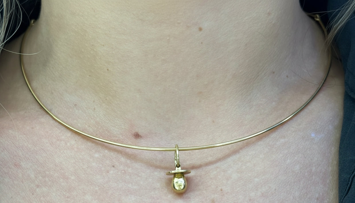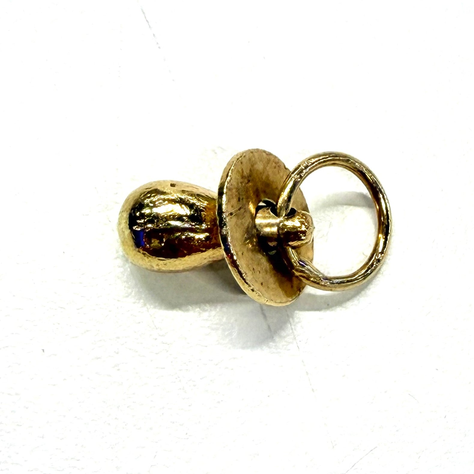 Pendentif tétine en or jaune 750/1000, poinçons 750 et Tête d’Aigle, 1,38 g et 1,5 cm de hauteur. En très bon état, il offre un style délicat et symbolique.