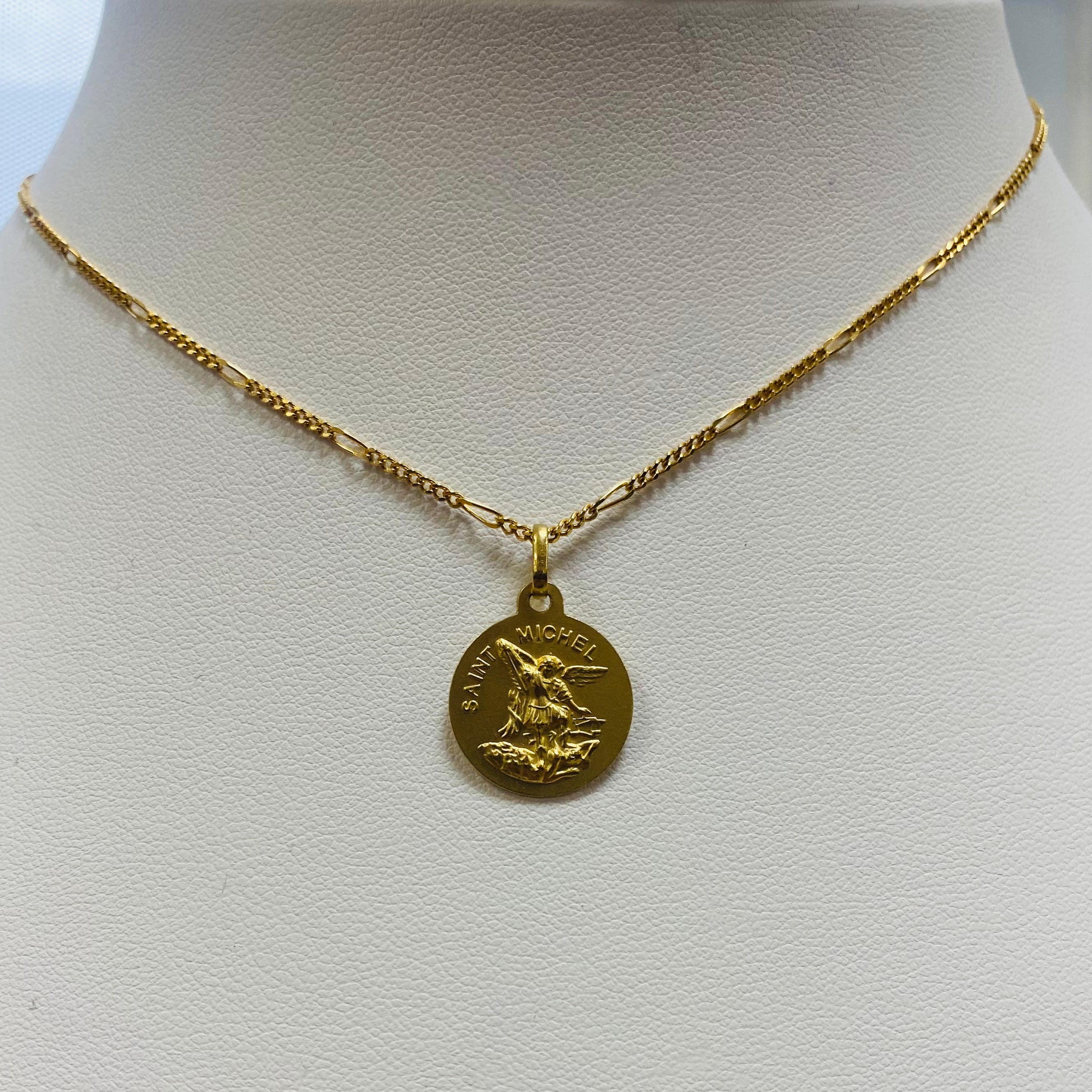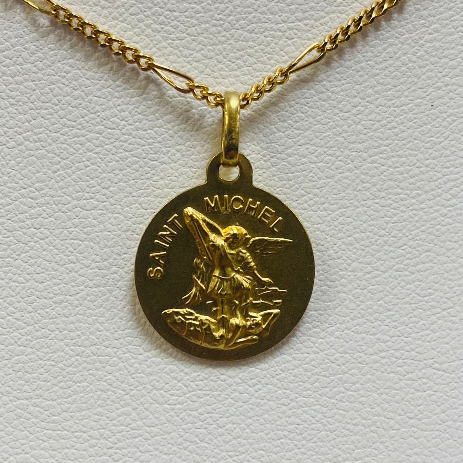 Représentant Saint Michel, ce bijou porte une signification forte, associée à la protection et au courage. Son métal précieux met en valeur chaque détail du motif, offrant une belle présence tout en restant discret.