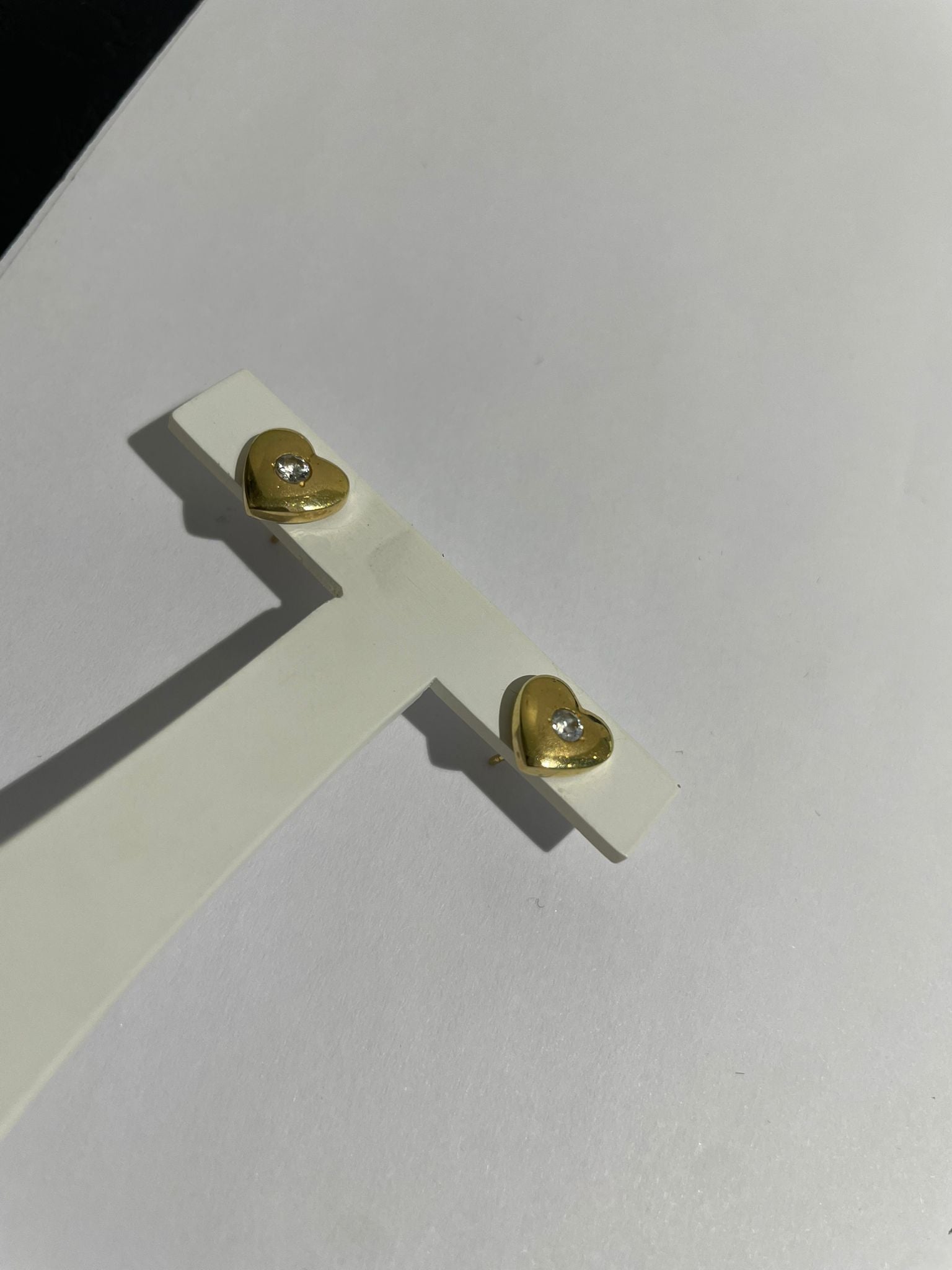 Boucles d'oreille en forme de cœur, avec au centre de chaque cœur une pierre d'oxyde de zirconium de 0.2cm.