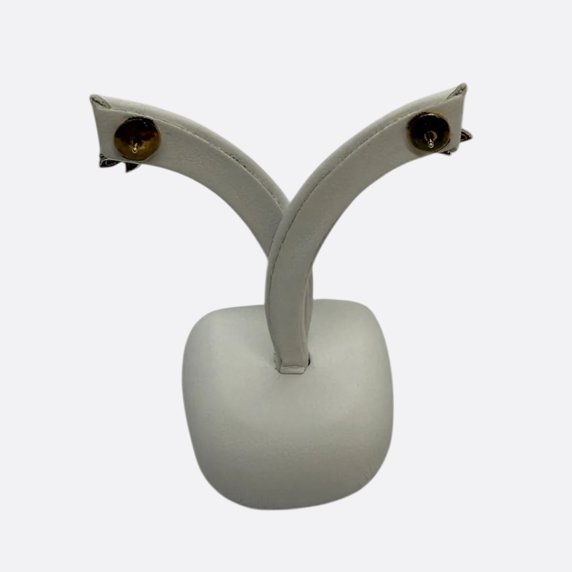 Boucles d’oreilles clou en or jaune 18 carats, 2,54 g, avec fermoirs Alpa. Serties de saphirs et oxydes, elles offrent un éclat élégant, en très bon état, parfaites au quotidien.
